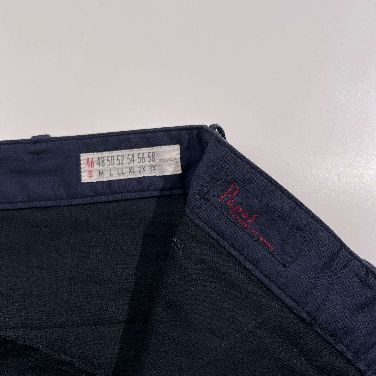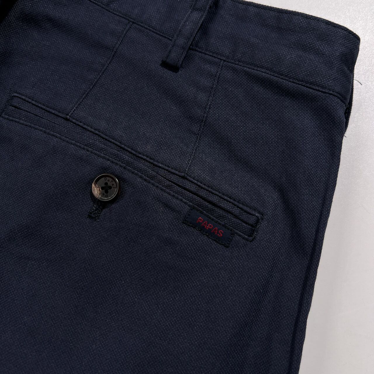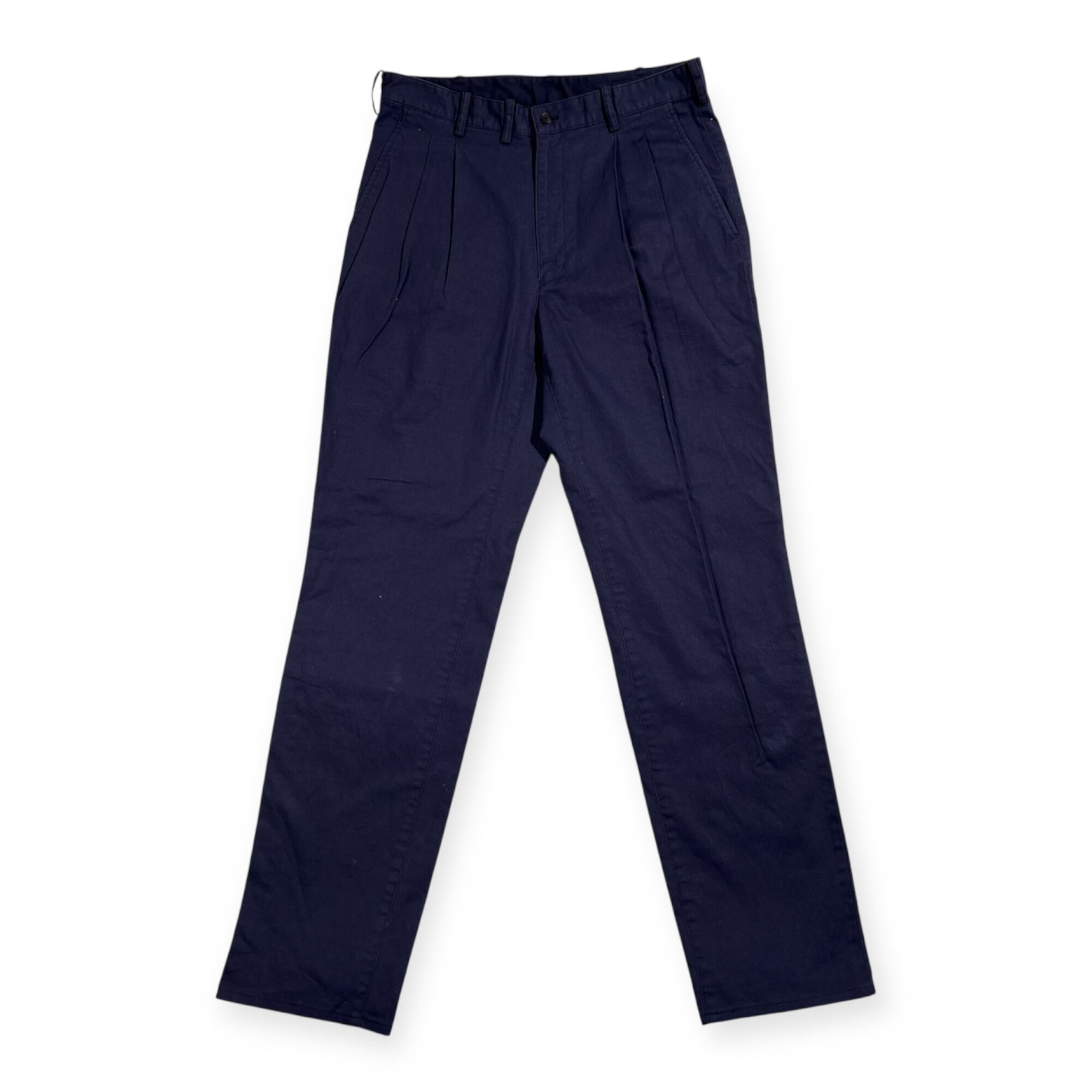 Papas パパス リネン混 ストレッチ コットンパンツ ツータック スラックス サイズ S 46 /ネイビー系 日本製 メンズ