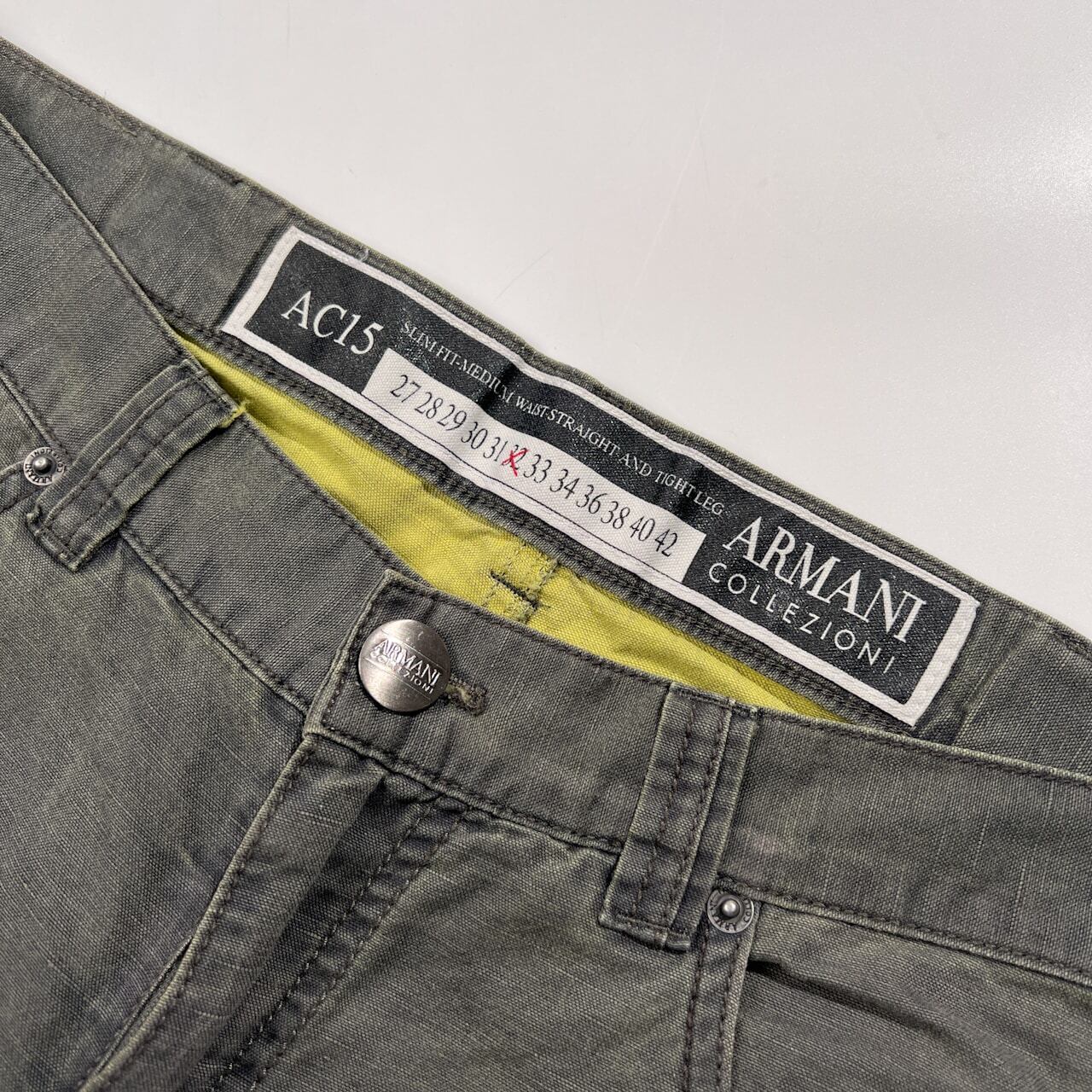 ARMANI COLLEZIONI アルマーニコレツィオーニ AC15 コットン リネン パンツ サイズ 32 /裏蛍光イエロー系/メンズ