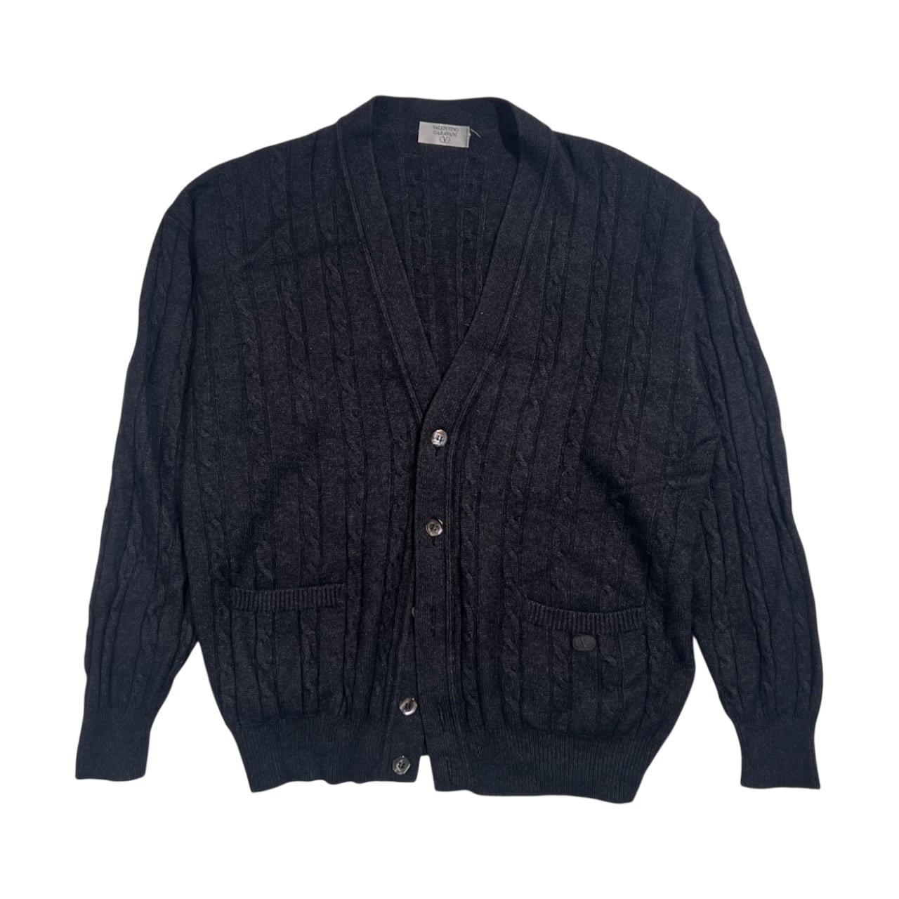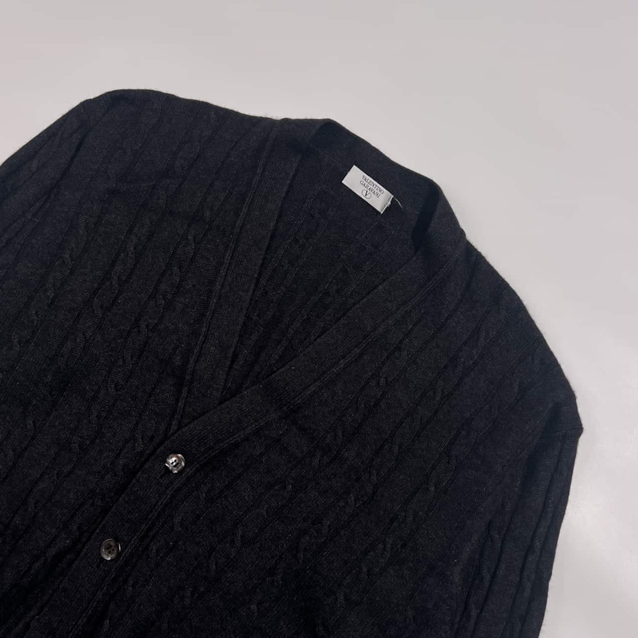 カシミヤ シルク混 イタリア製 VALENTINO GARAVANI ヴァレンティノ ガラヴァーニ ケーブル ニット カーディガン /ダークグレー メンズ