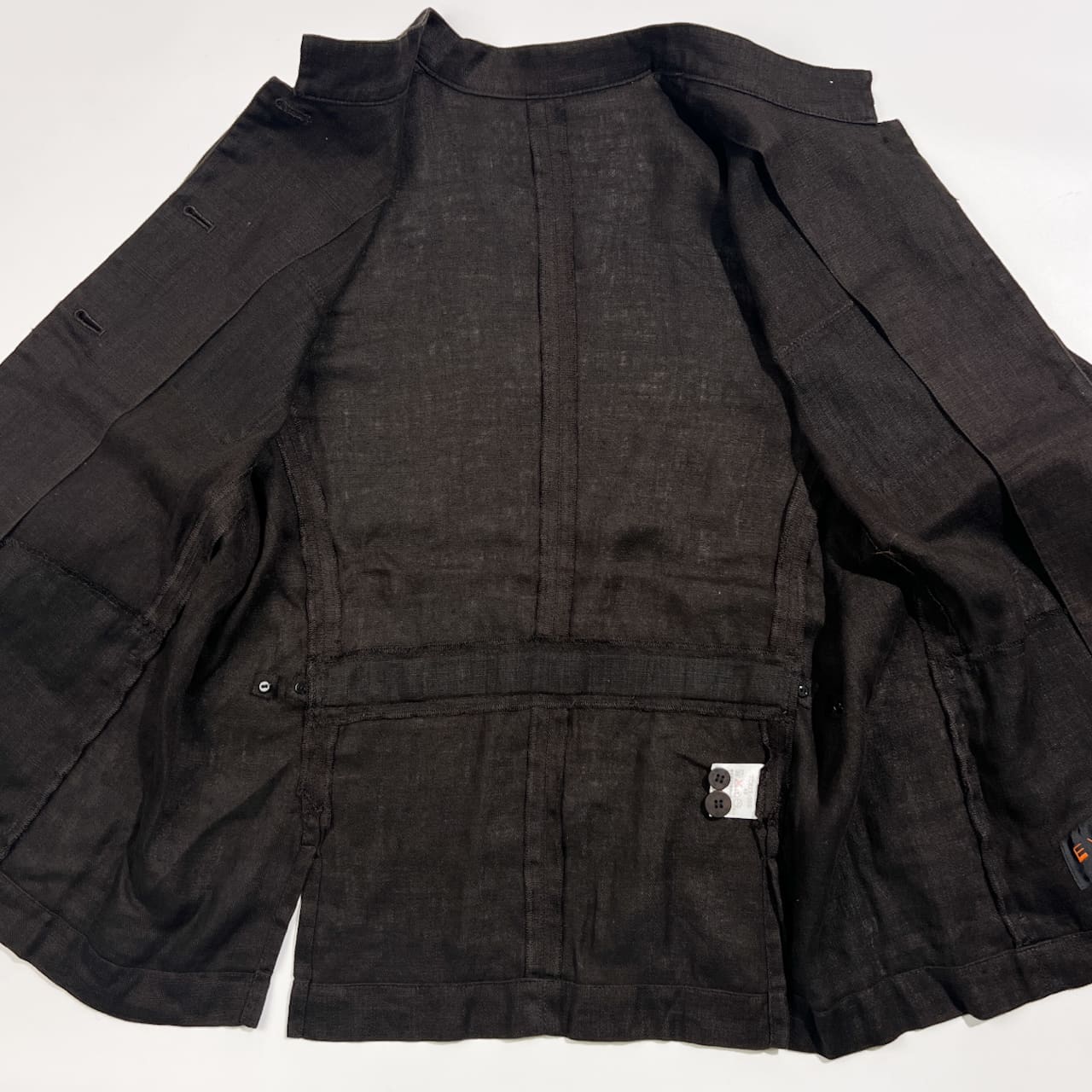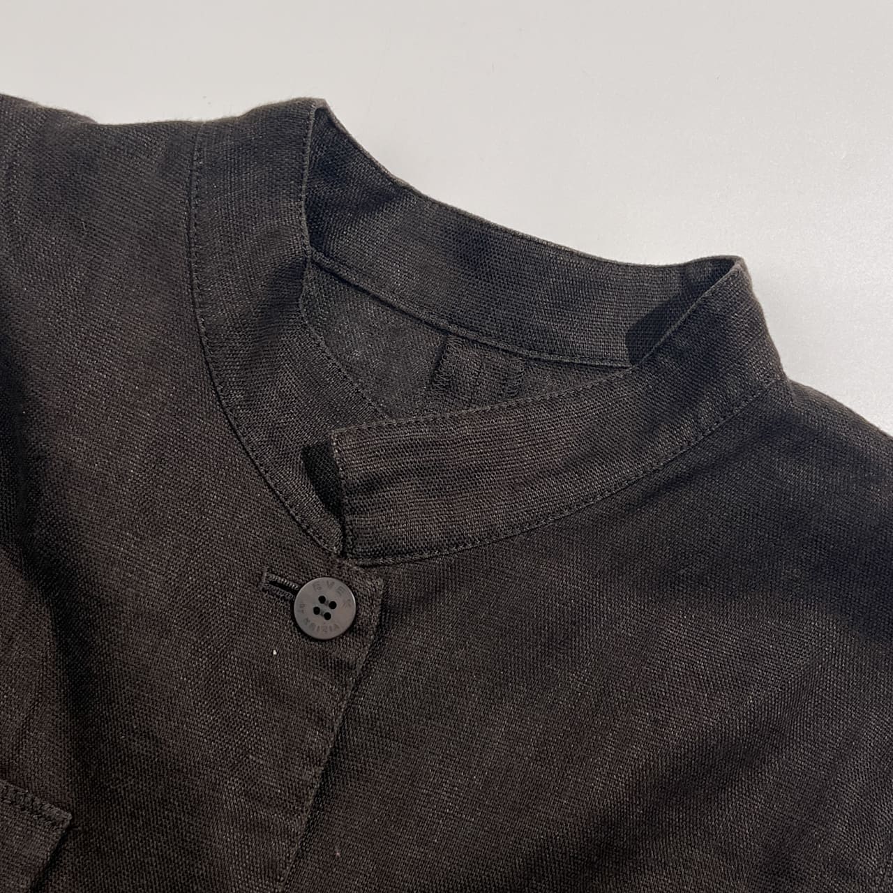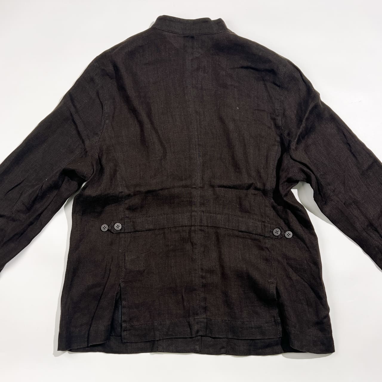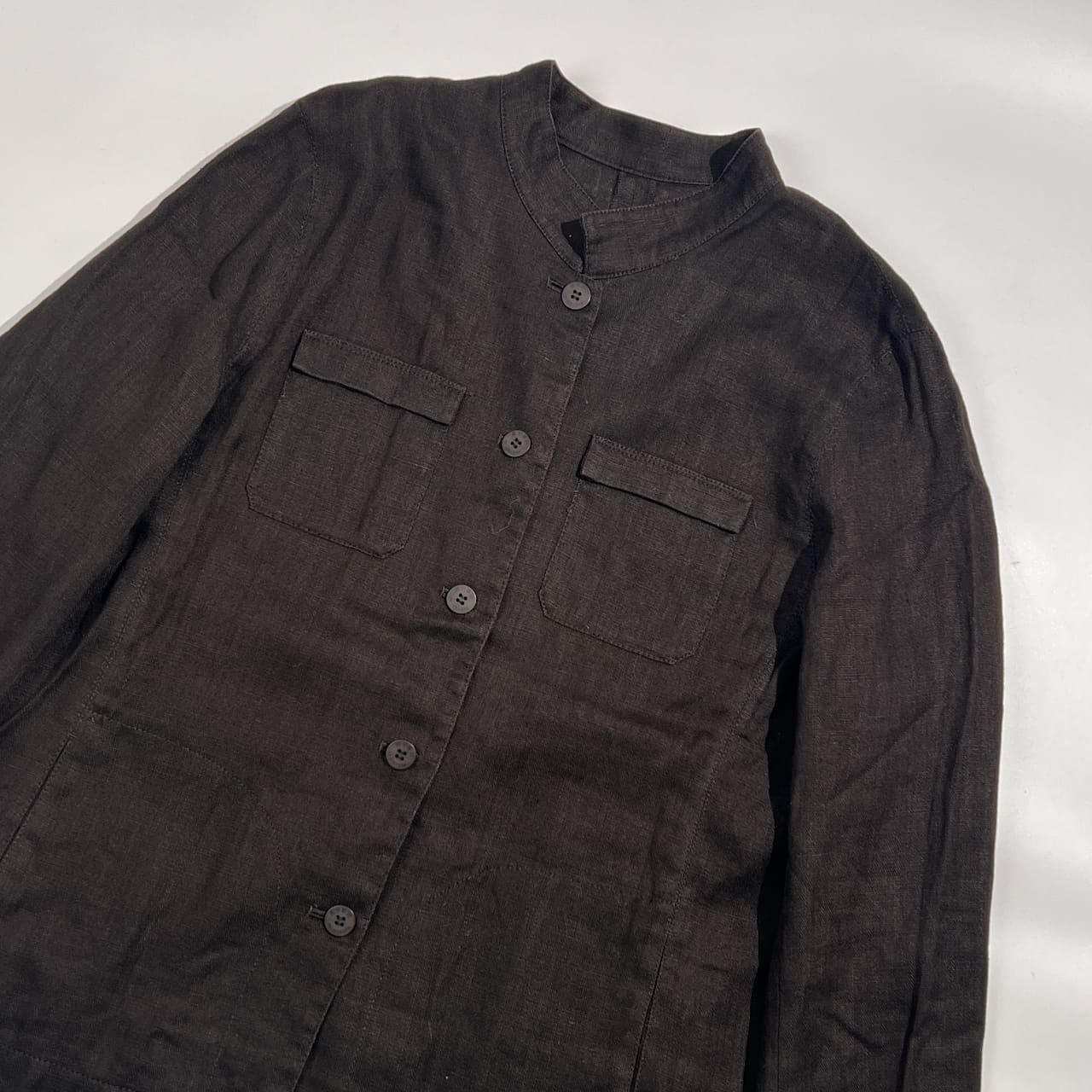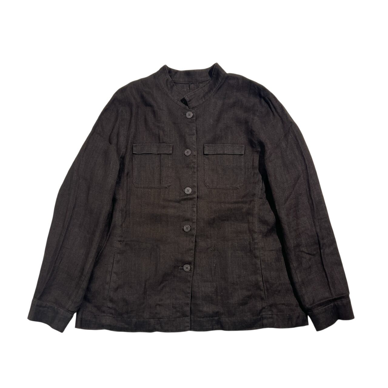 リネン100% EVEX by KRIZIA エヴェックスバイクリッツィア 立ち襟 ダブルポケット ジャケット 46/ダークブラウン系 レディース 三陽商会