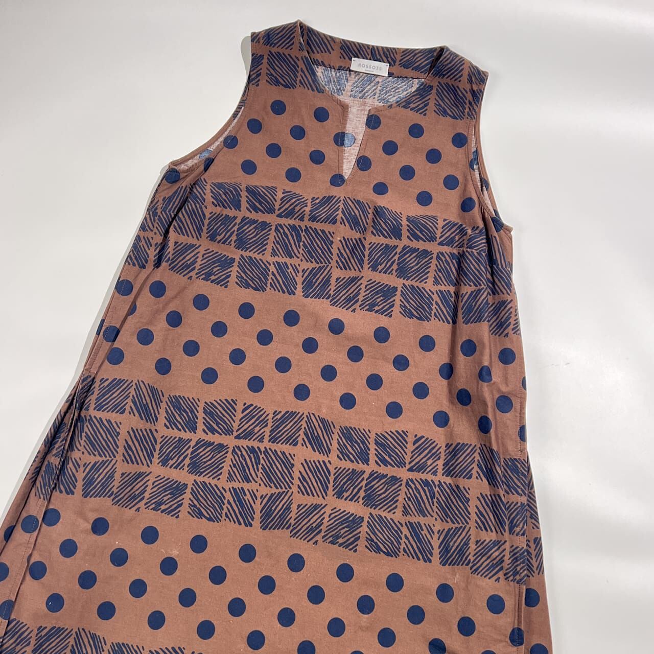 イタリア製 ROSSO35 ロッソ35 ドット ノースリーブ ワンピース 42/ブラウン系 レディース
