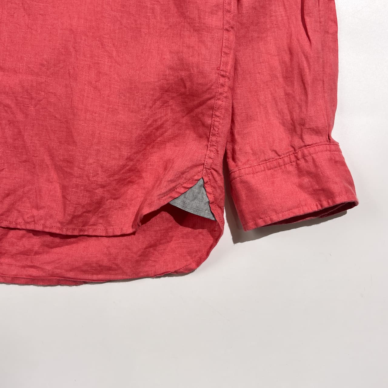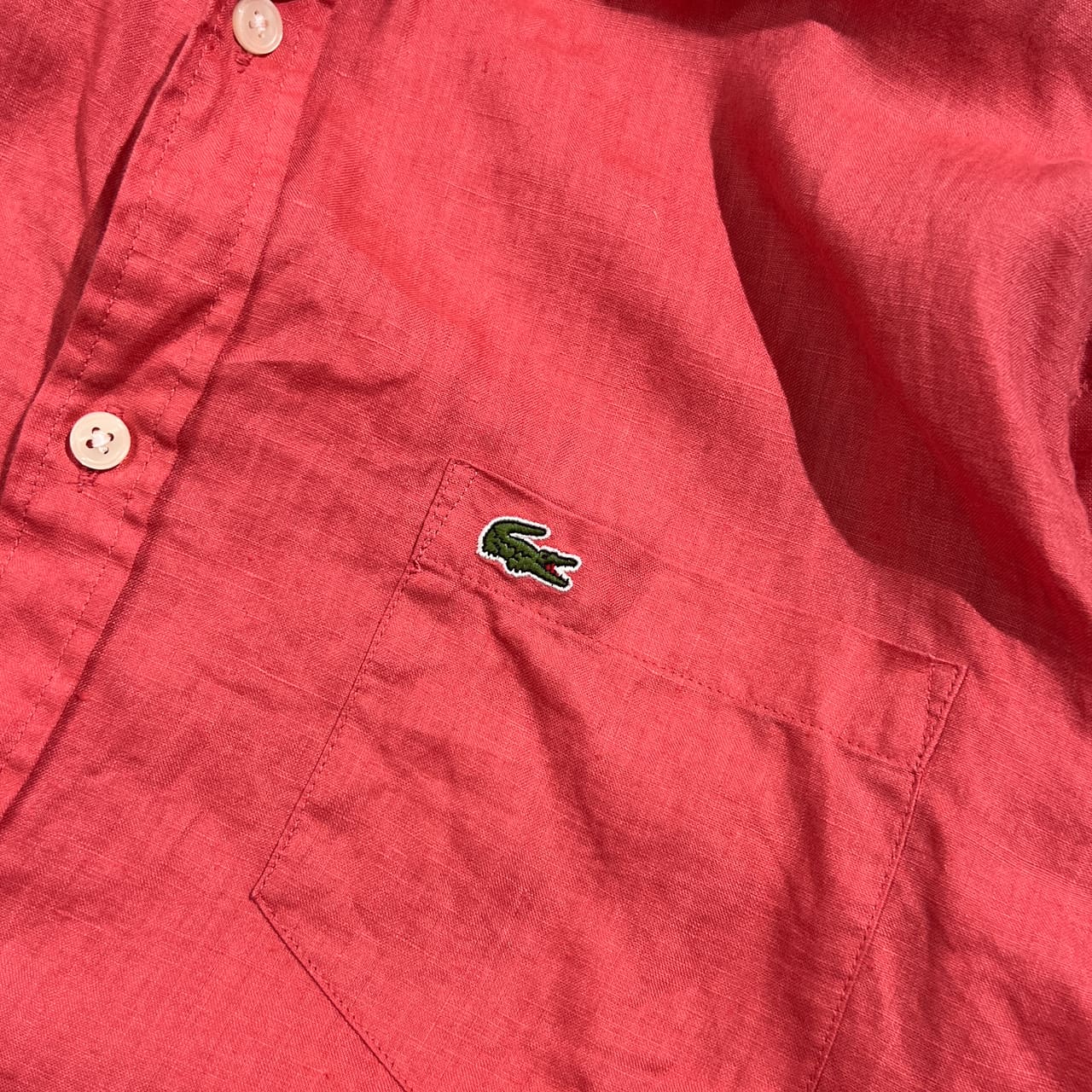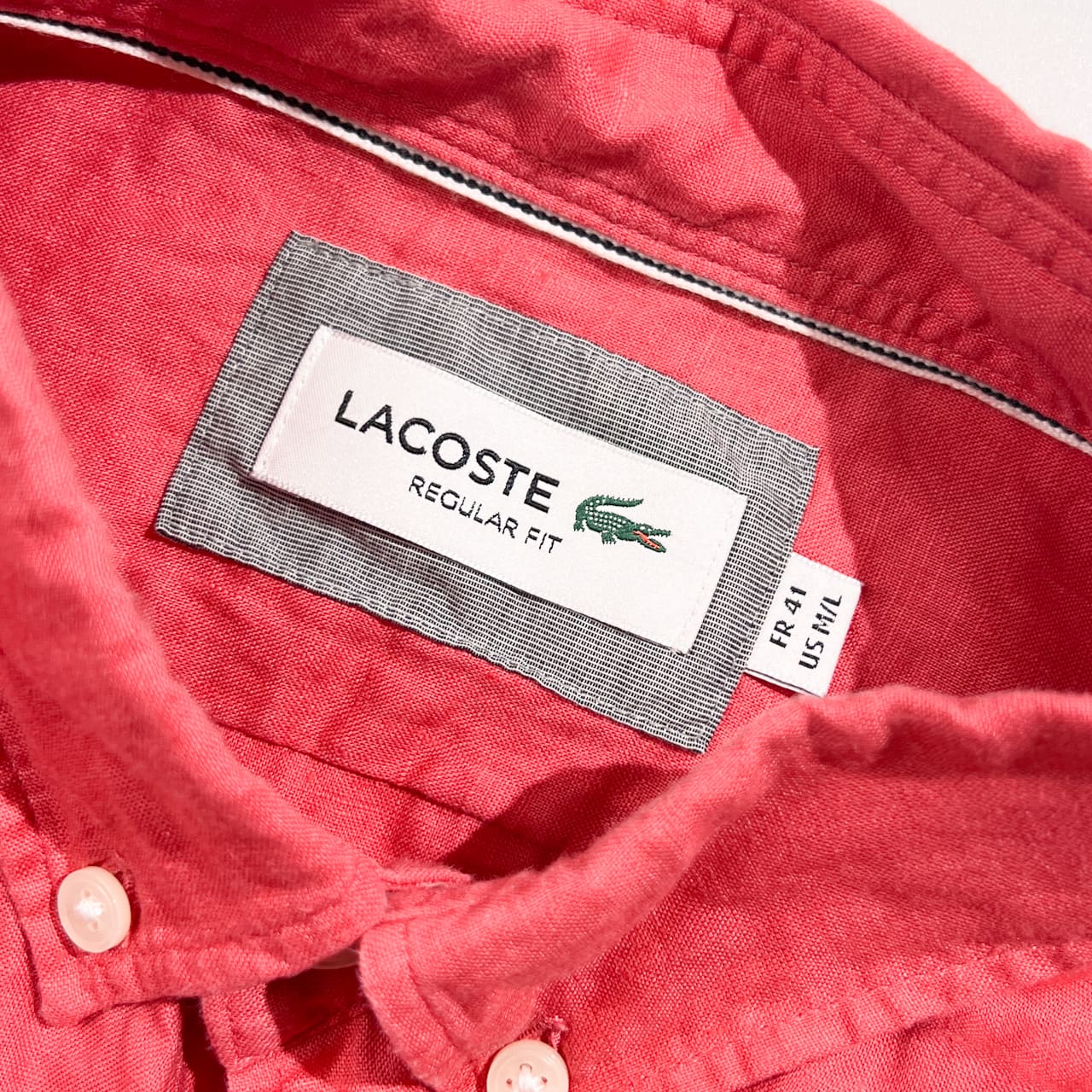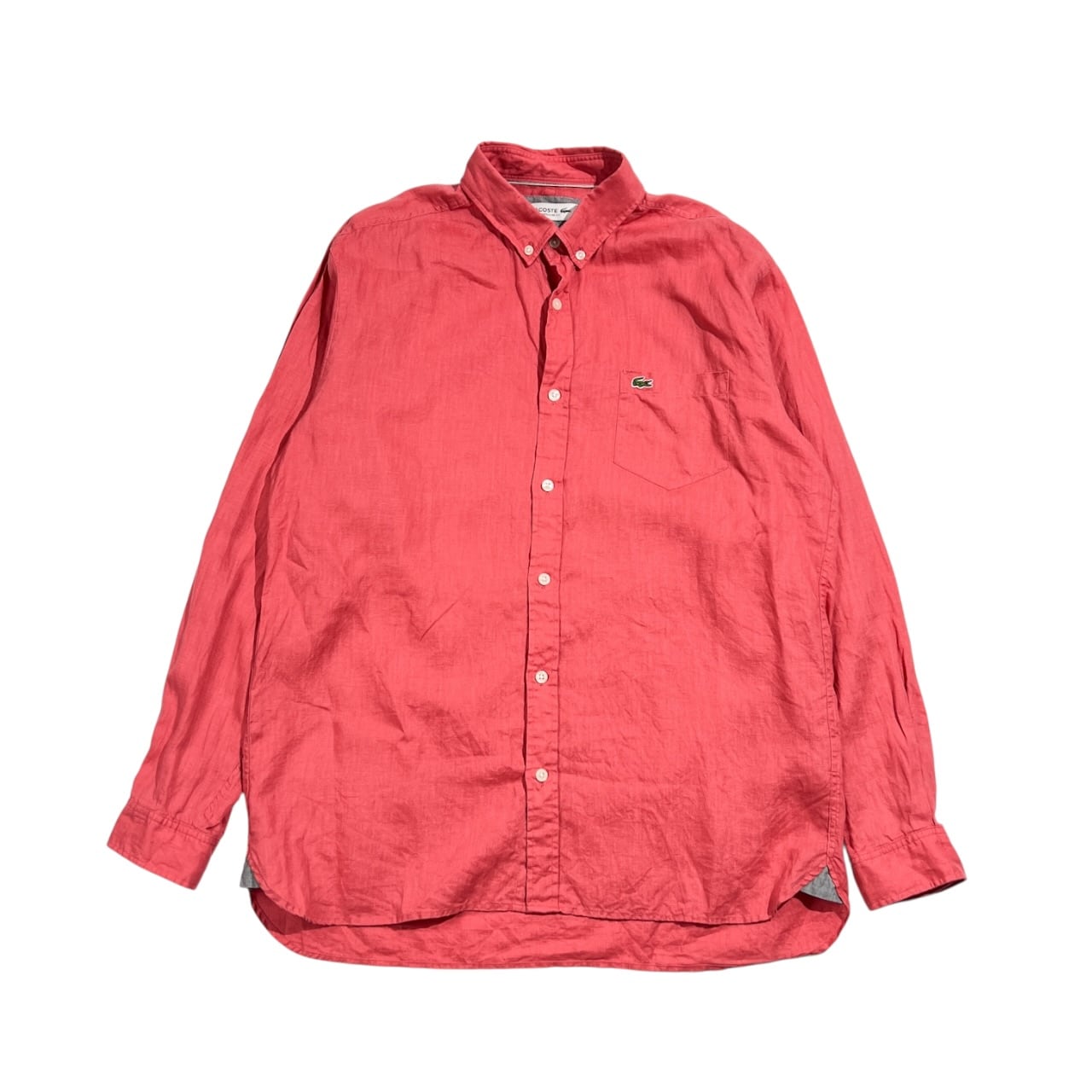 リネン100% LACOSTE ラコステ REGULAR FIT BD ボタンダウン 長袖シャツ FR41 US M/L /ピンクレッド系 メンズ