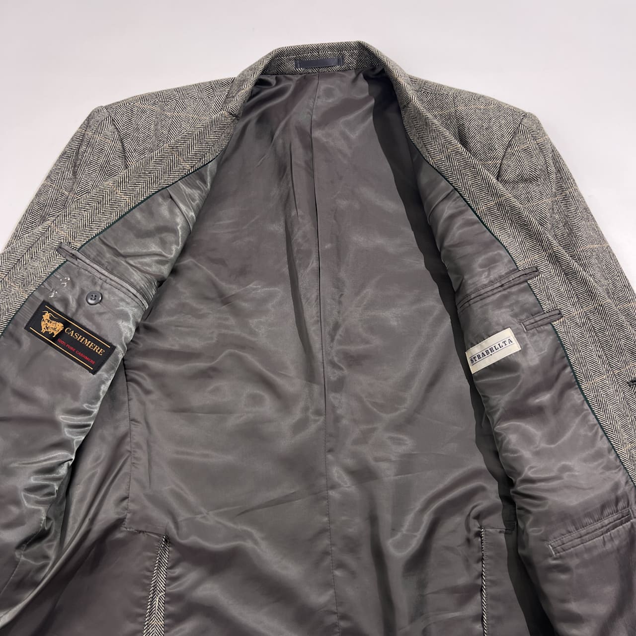 カシミヤ100% STRABELLTA ストラベルタ ヘリンボーン チェック ウール テーラード ジャケット 98 AB6 /グレー系 メンズ