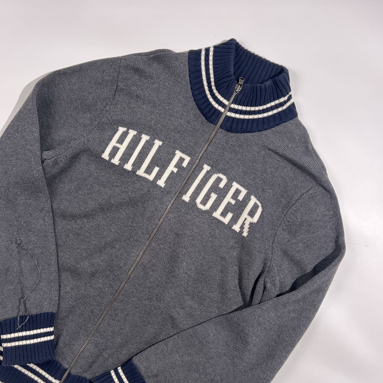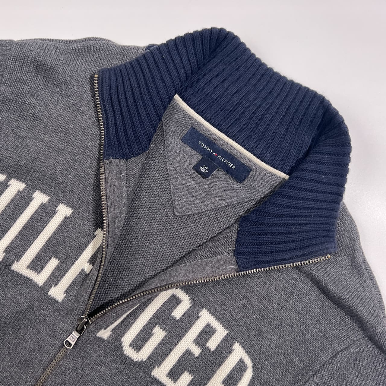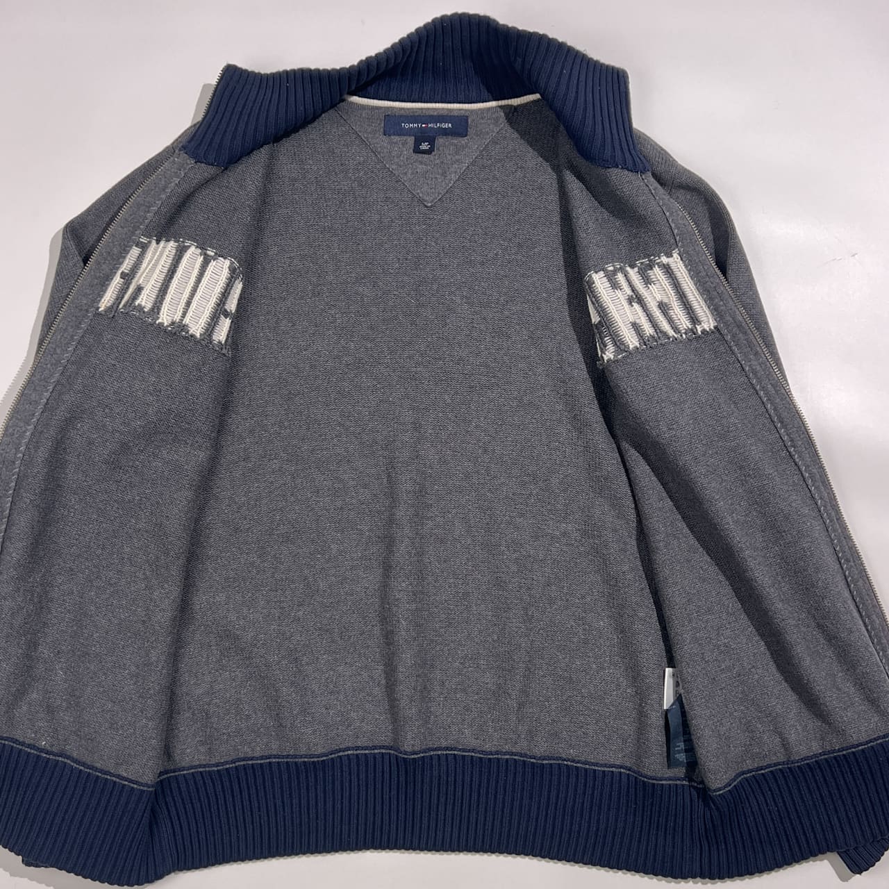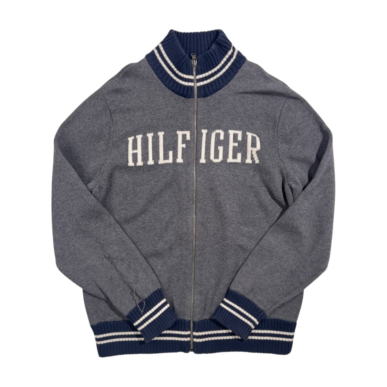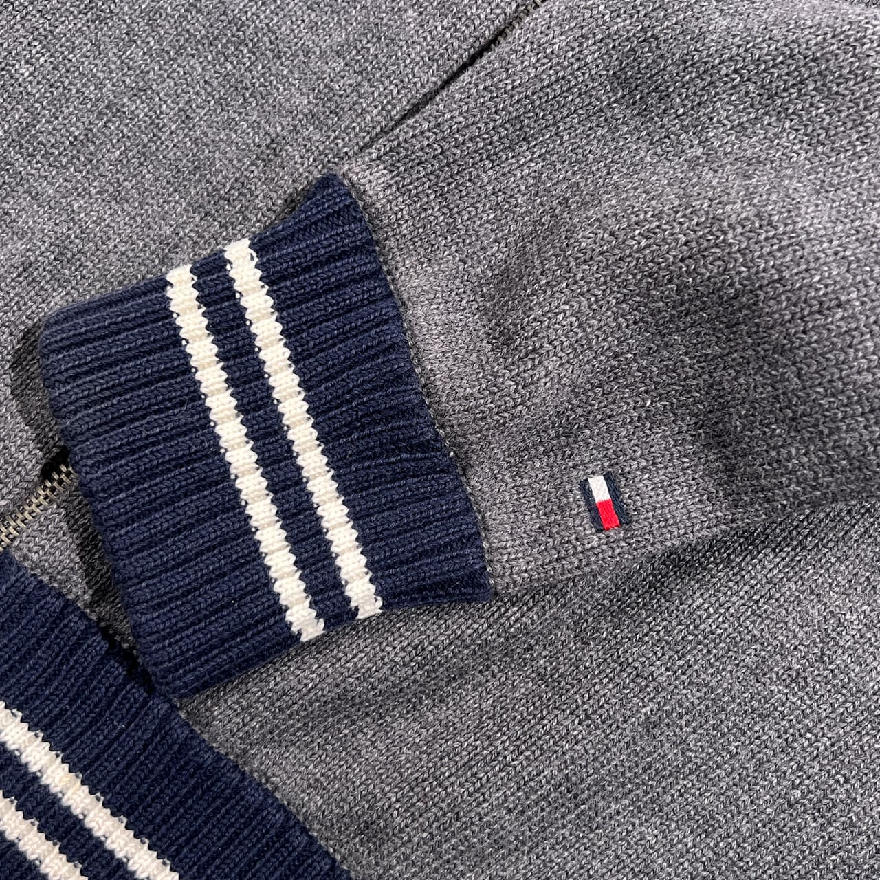 TOMMY HILFIGER トミーヒルフィガー ロゴ フルジップ コットン ニット セーター ジャケット S/P /グレー系 メンズ