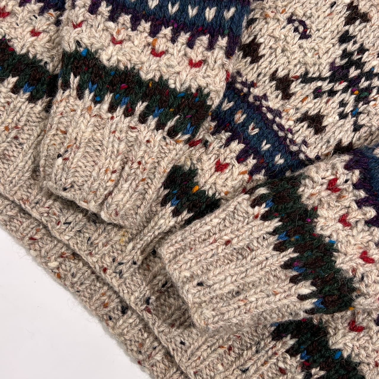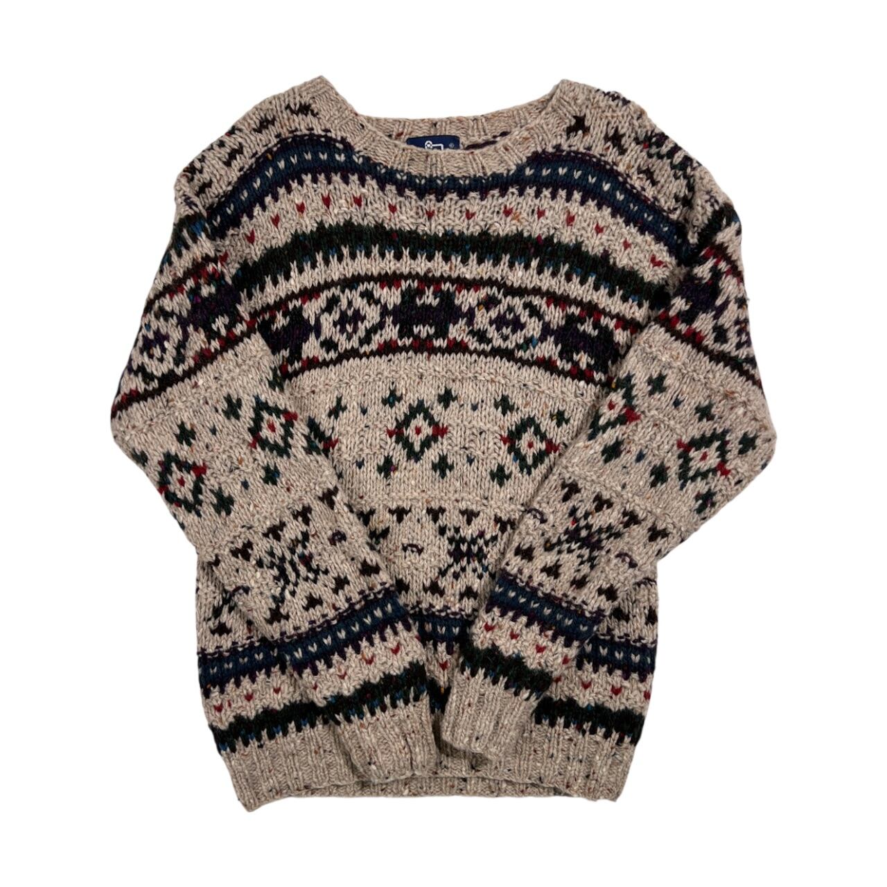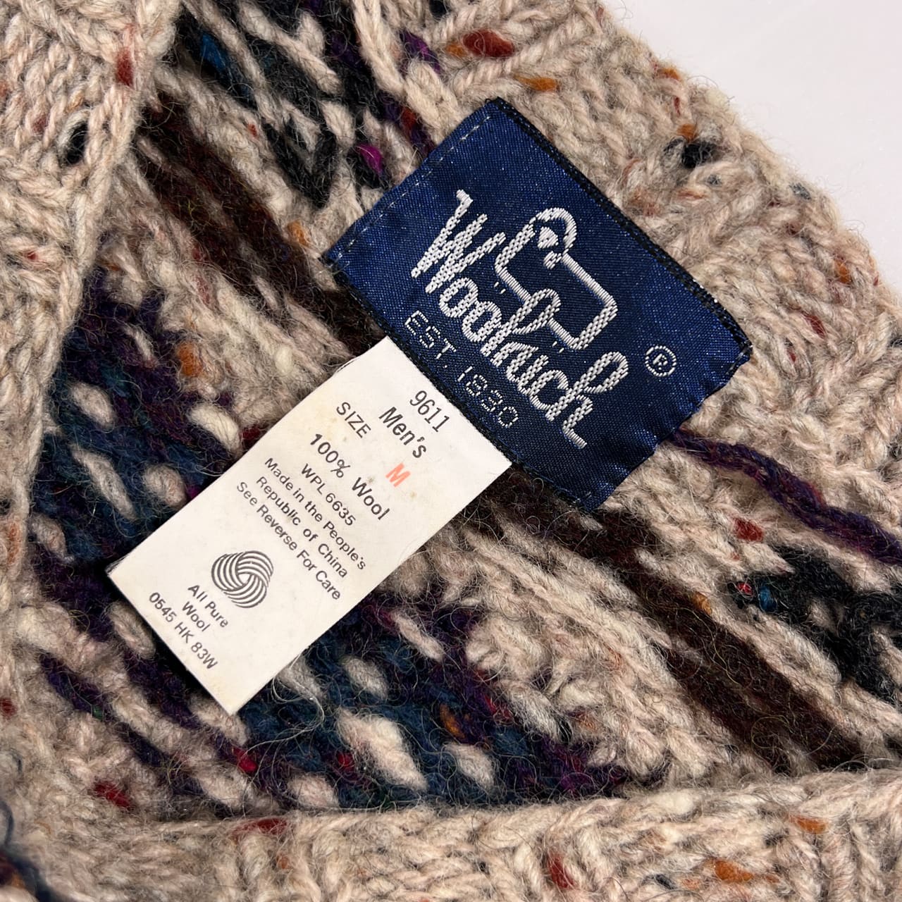 Woolrich ウールリッチ 総柄 ノルディック ボーダー系 ウール ニット セーター M /ベージュ系 メンズ アウトドア レトロ