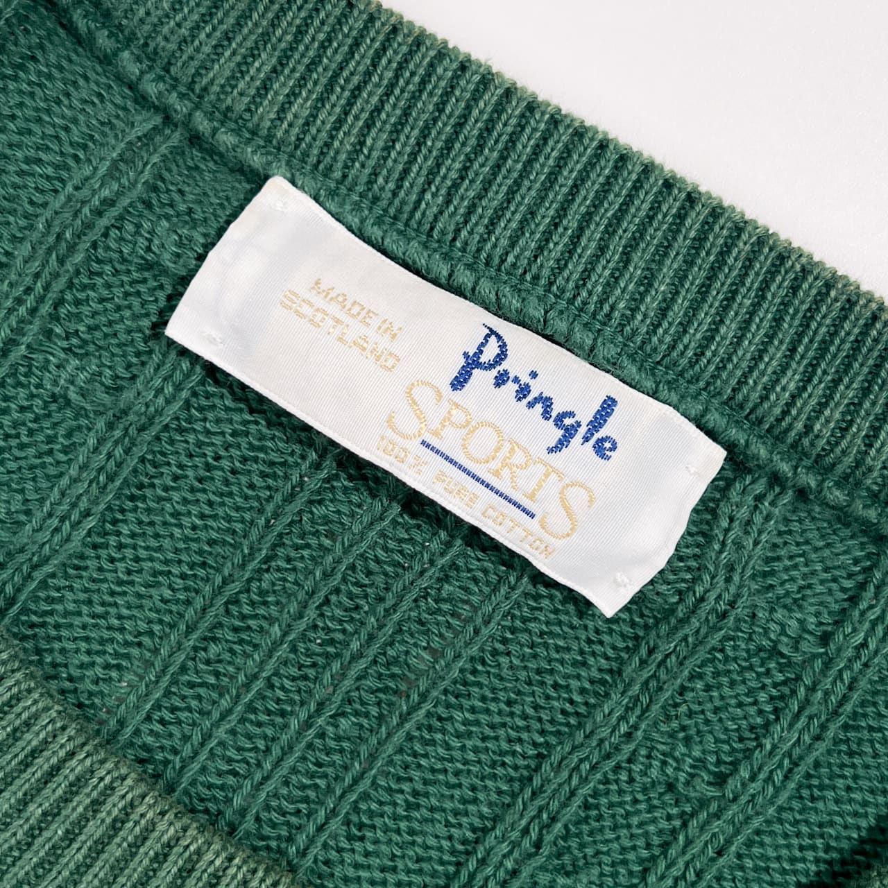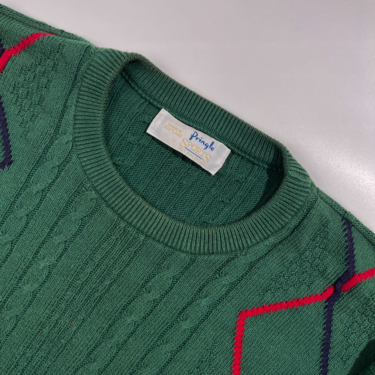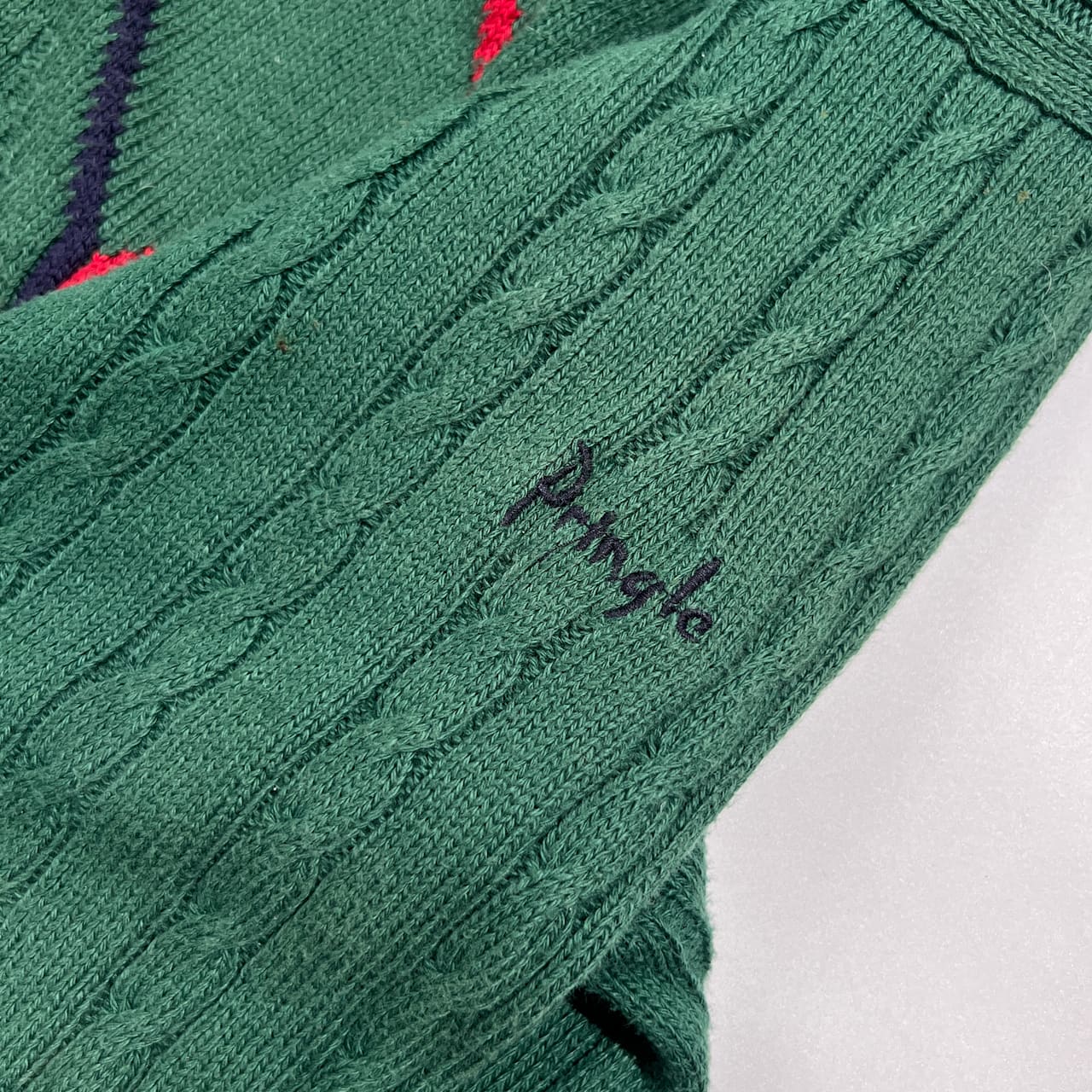 スコットランド製 Pringle SPORTS プリングル アーガイル ケーブル コットン ニット セーター L/グリーン系 メンズ