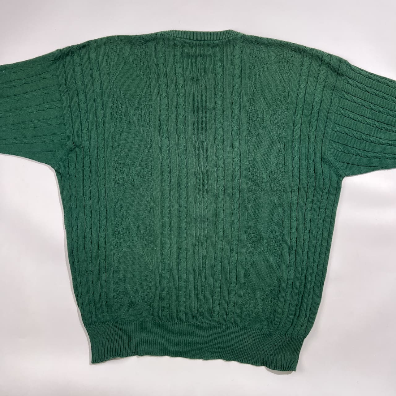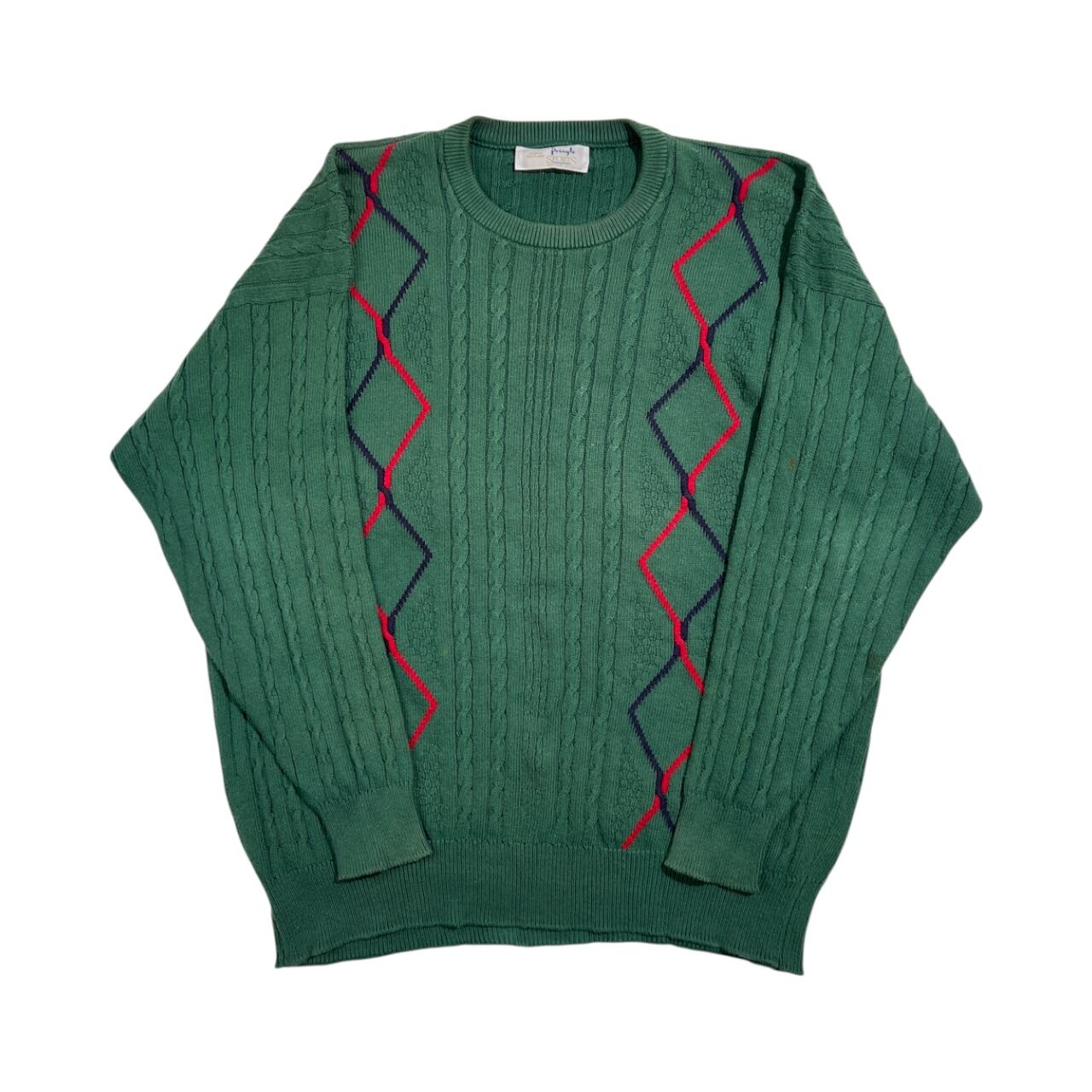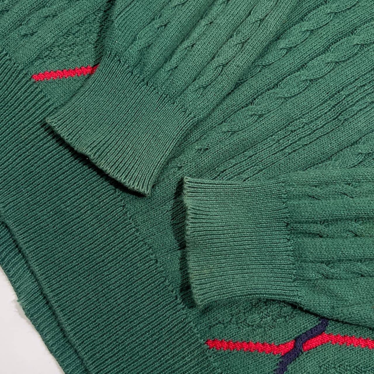 スコットランド製 Pringle SPORTS プリングル アーガイル ケーブル コットン ニット セーター L/グリーン系 メンズ
