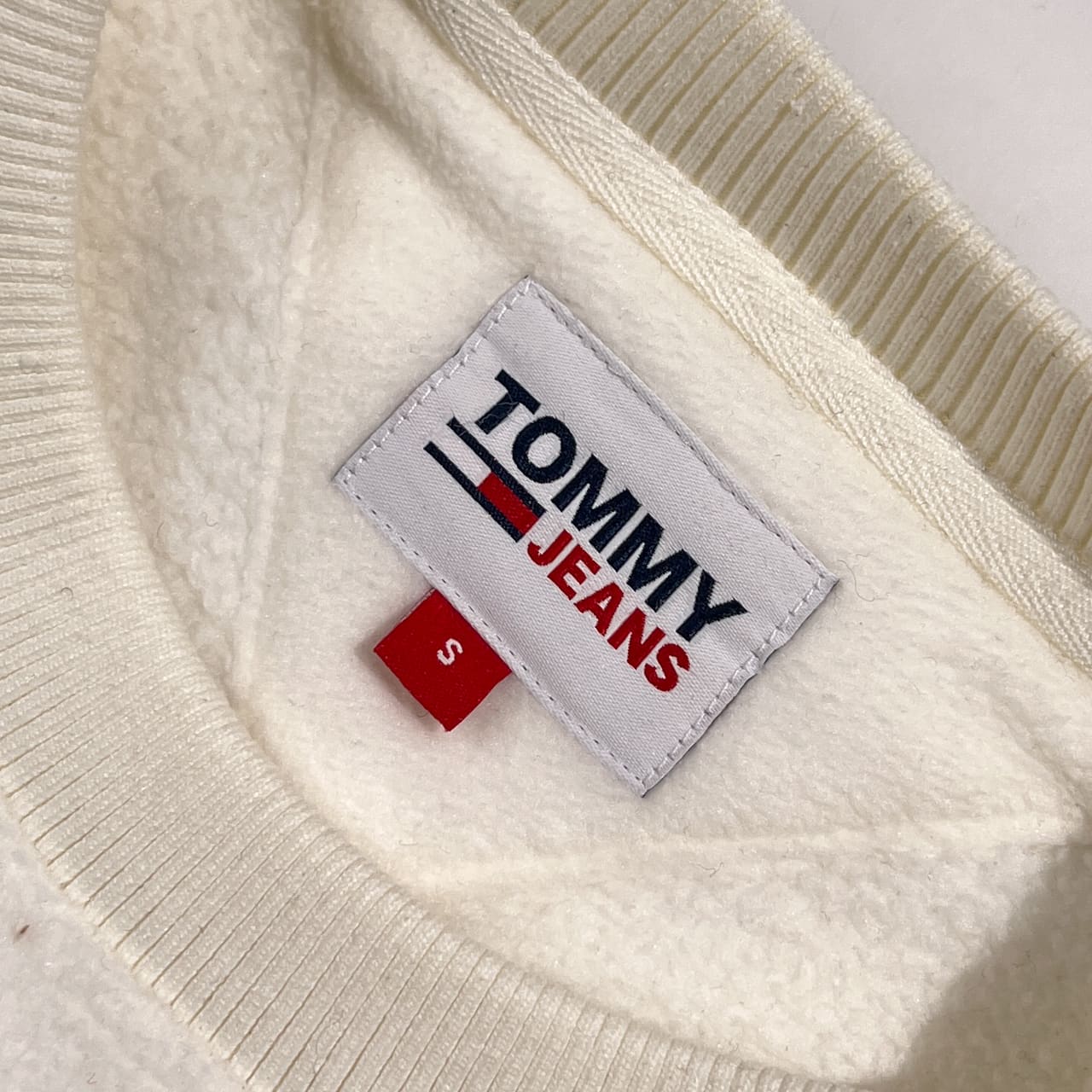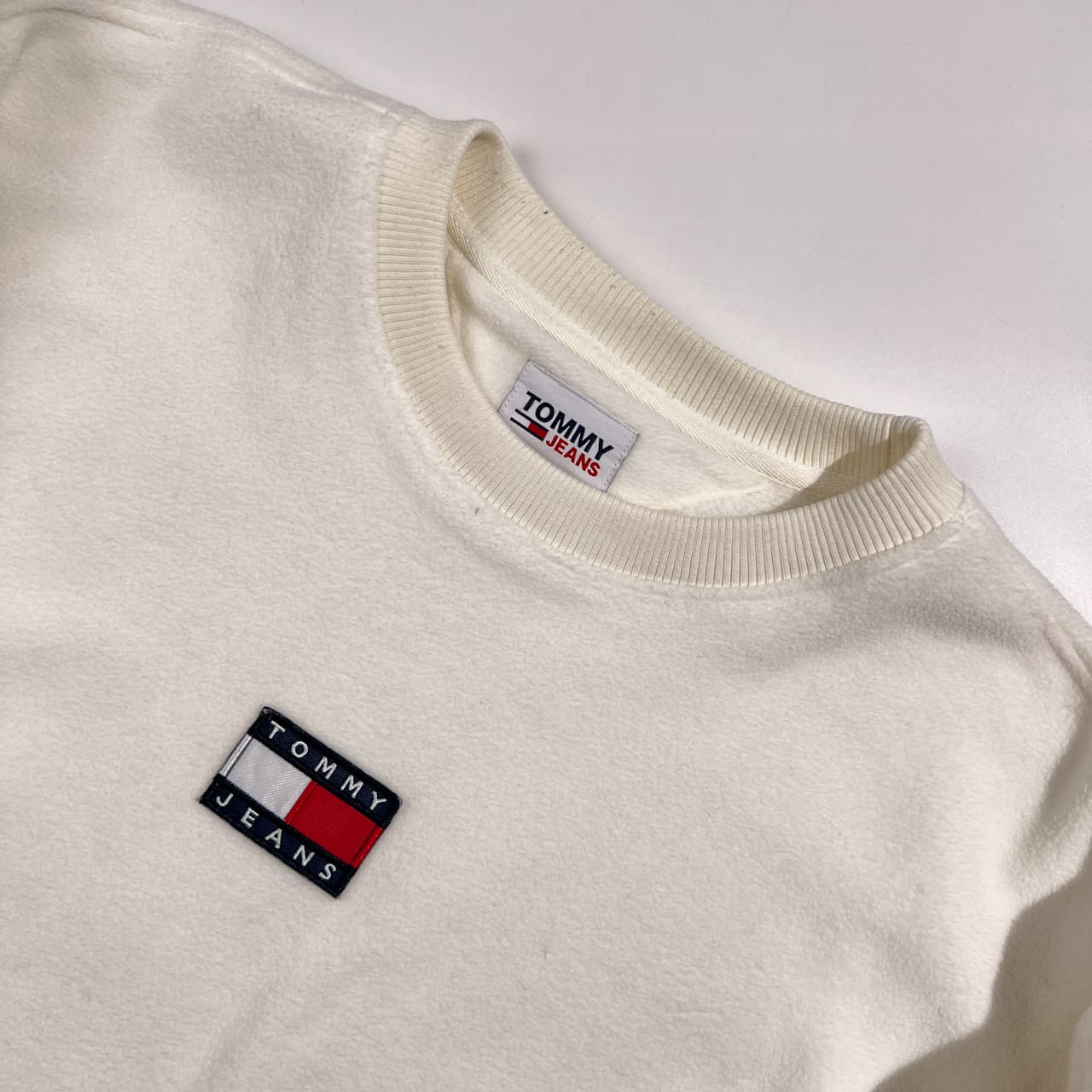 TOMMY JEANS トミージーンズ フラッグロゴ ワンポイント ボア トレーナー S/ホワイト系 メンズ