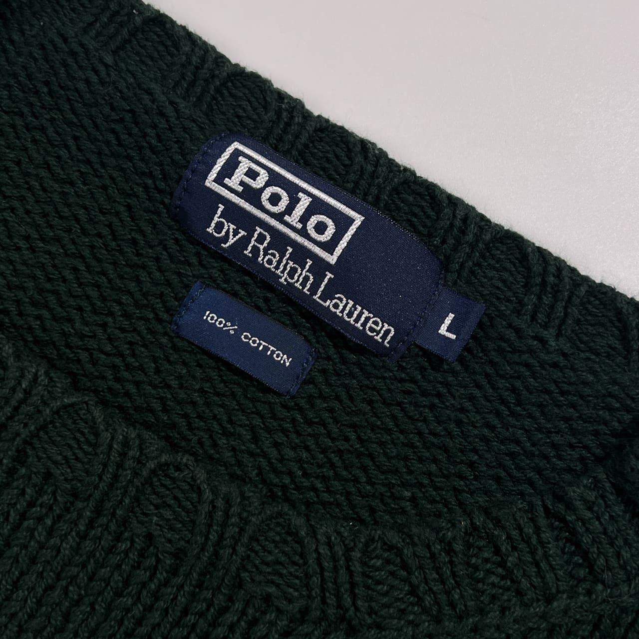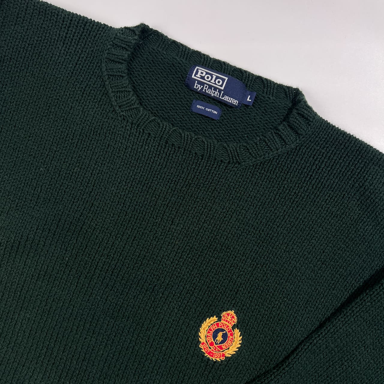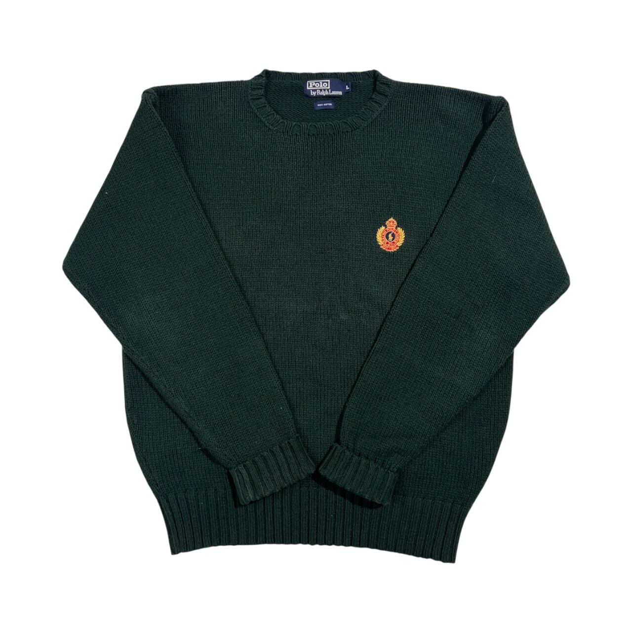 90s Polo by Ralph Lauren ポロ ラルフローレン 紋章ワッペン コットン ニット セーター L/ダークグリーン系 ビンテージ