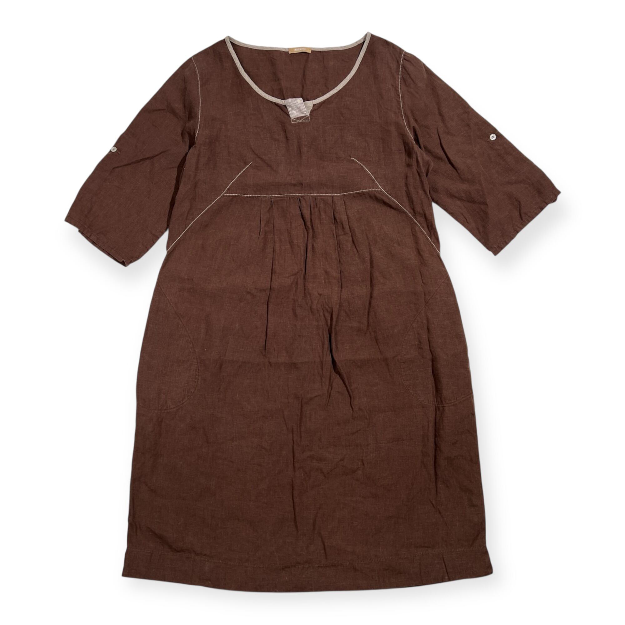 麻100% ROSSO35 ロッソ リネン ワンピース サイズ 44 /ブラウン/イタリア製/レディース