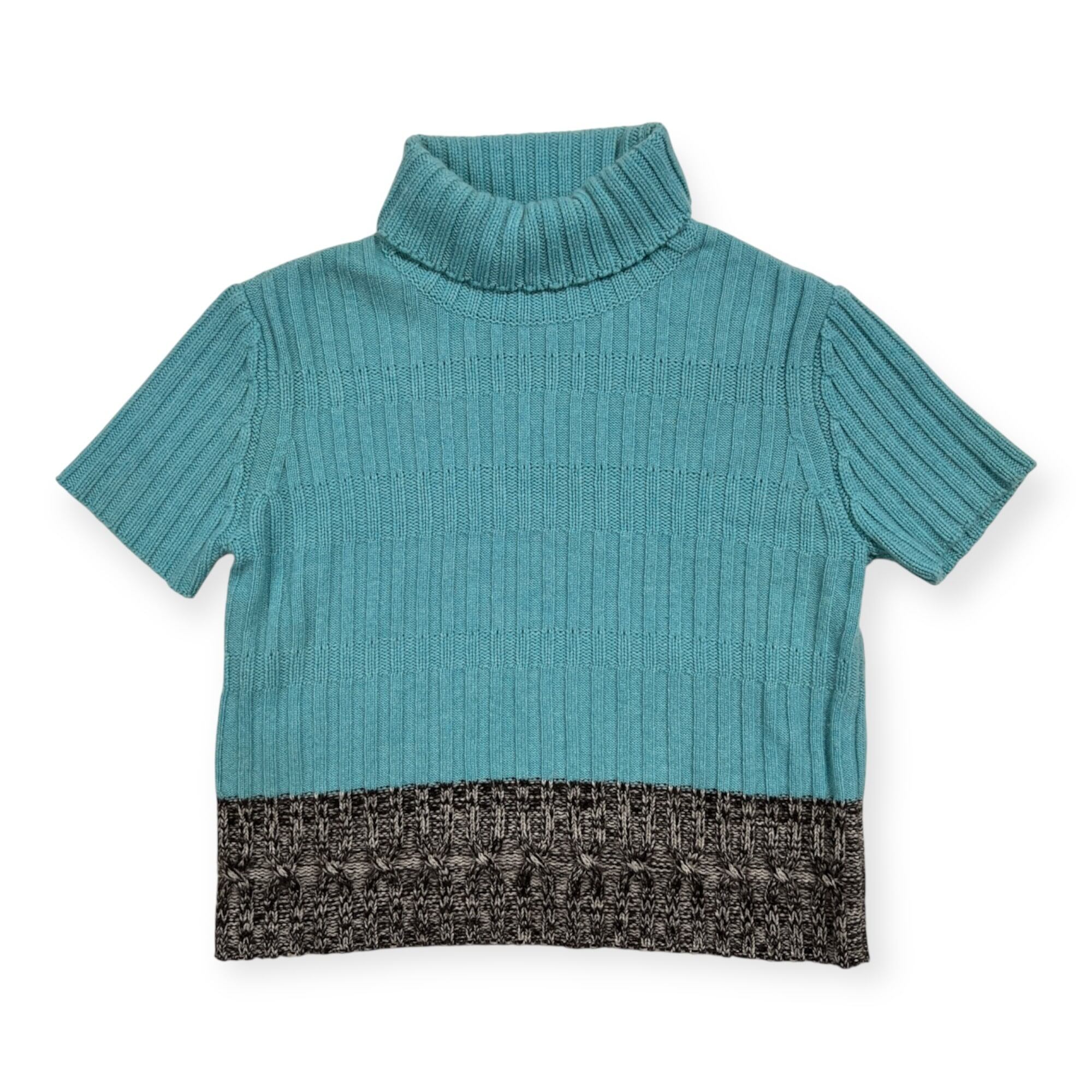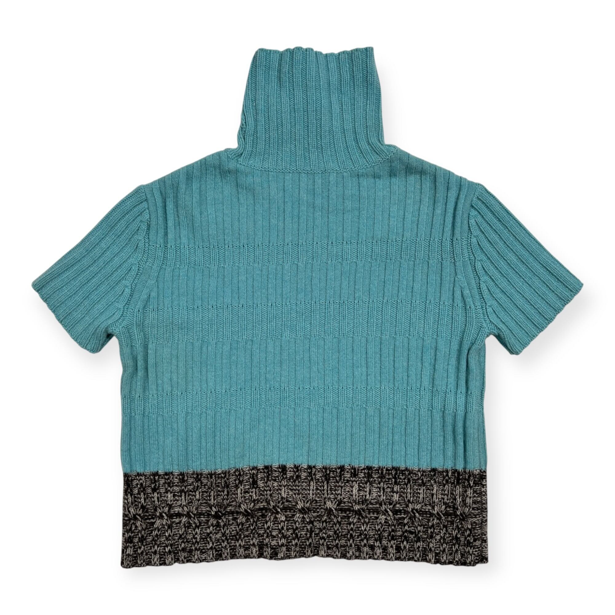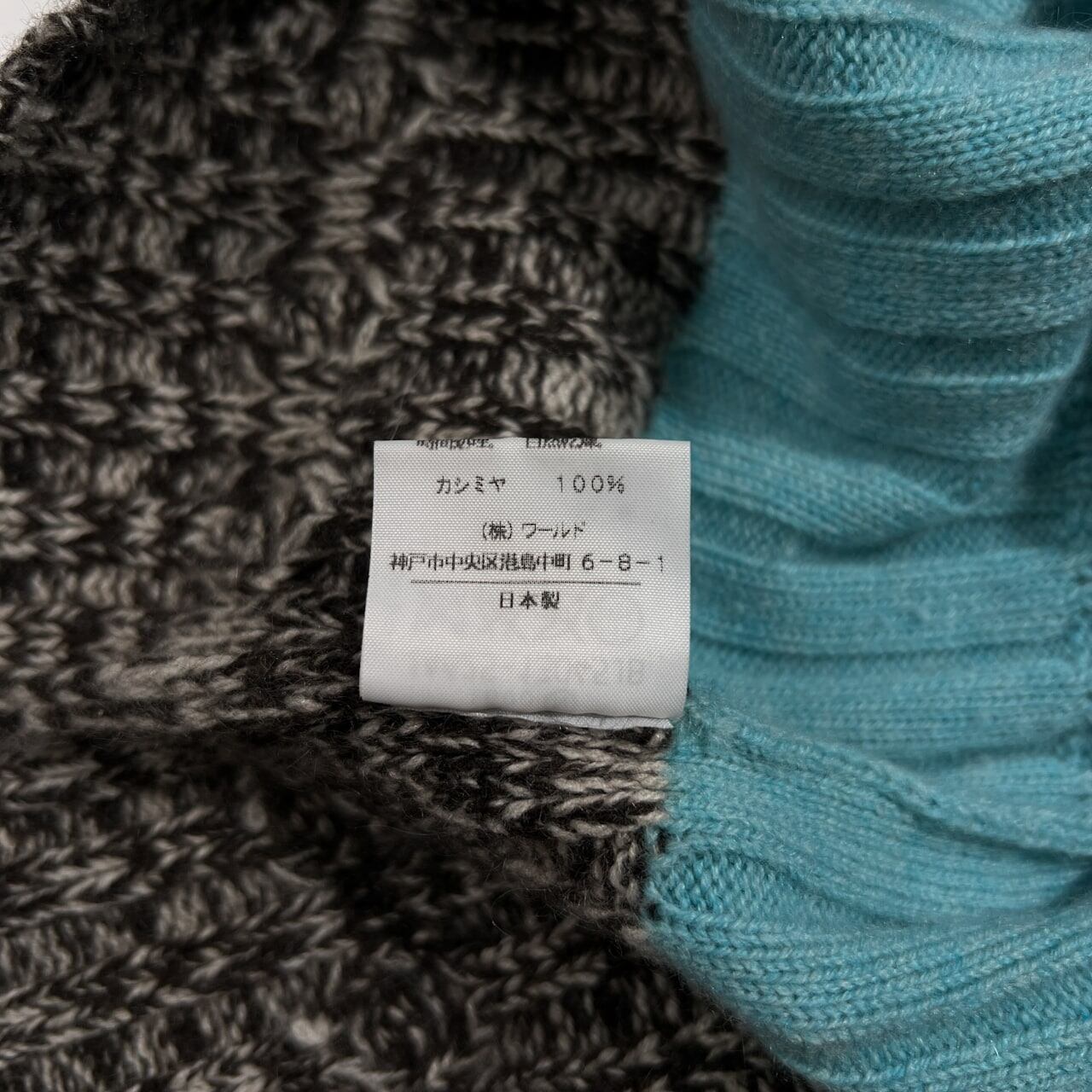 カシミヤ100% Ville d'azur ビルダジュール タートルネック 半袖 ニット セーター サイズ 42 /ワールド/水色×ダークブラウン系