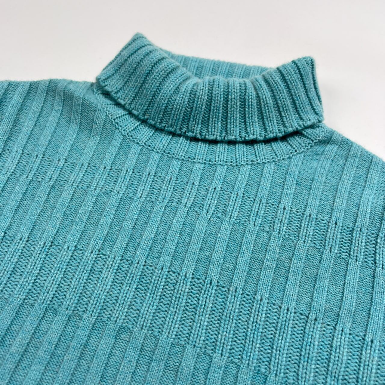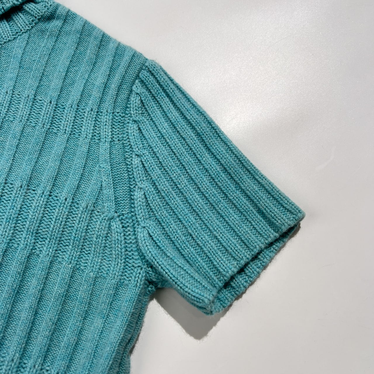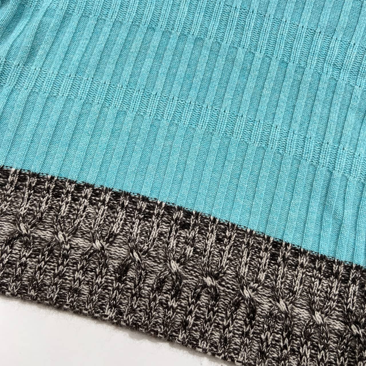カシミヤ100% Ville d'azur ビルダジュール タートルネック 半袖 ニット セーター サイズ 42 /ワールド/水色×ダークブラウン系