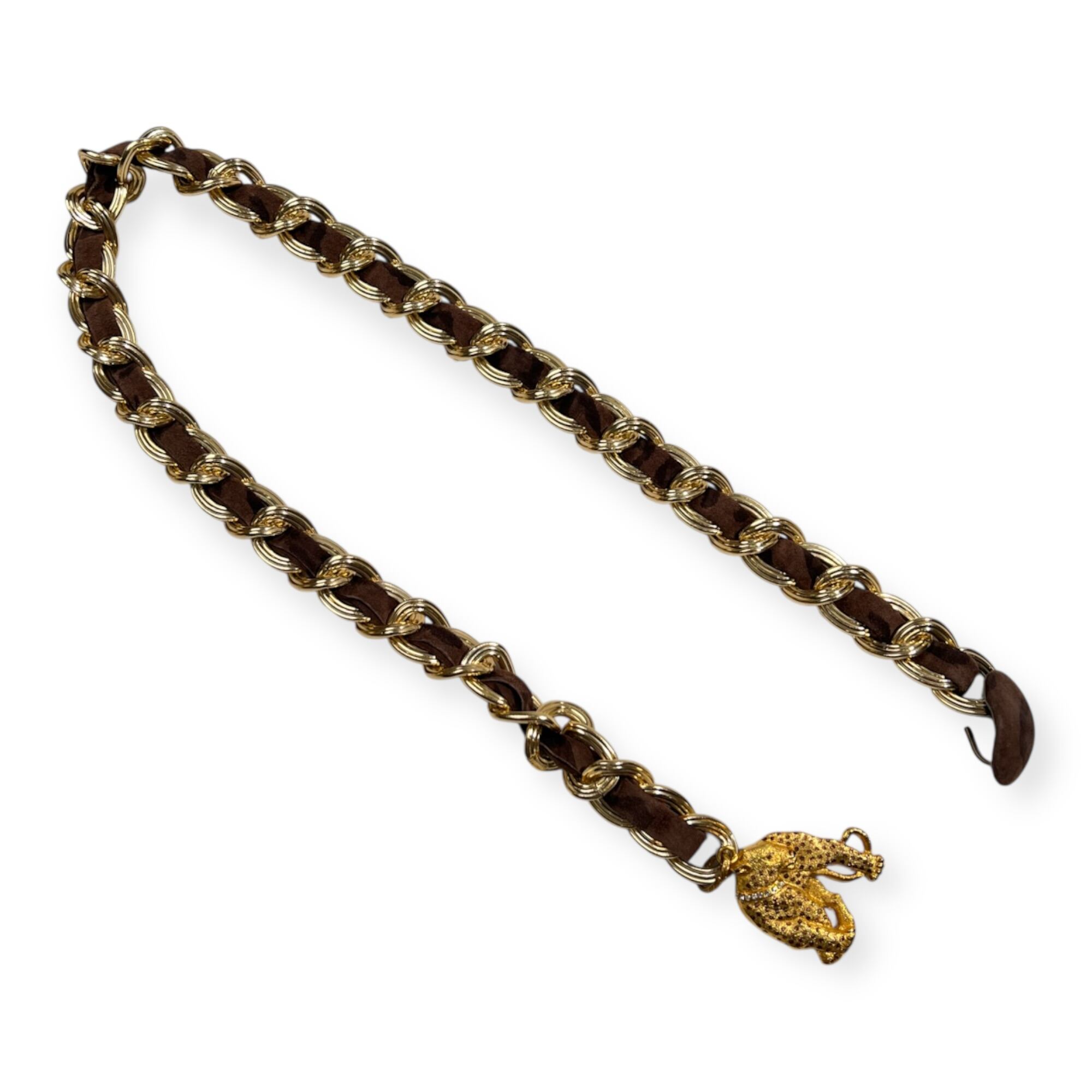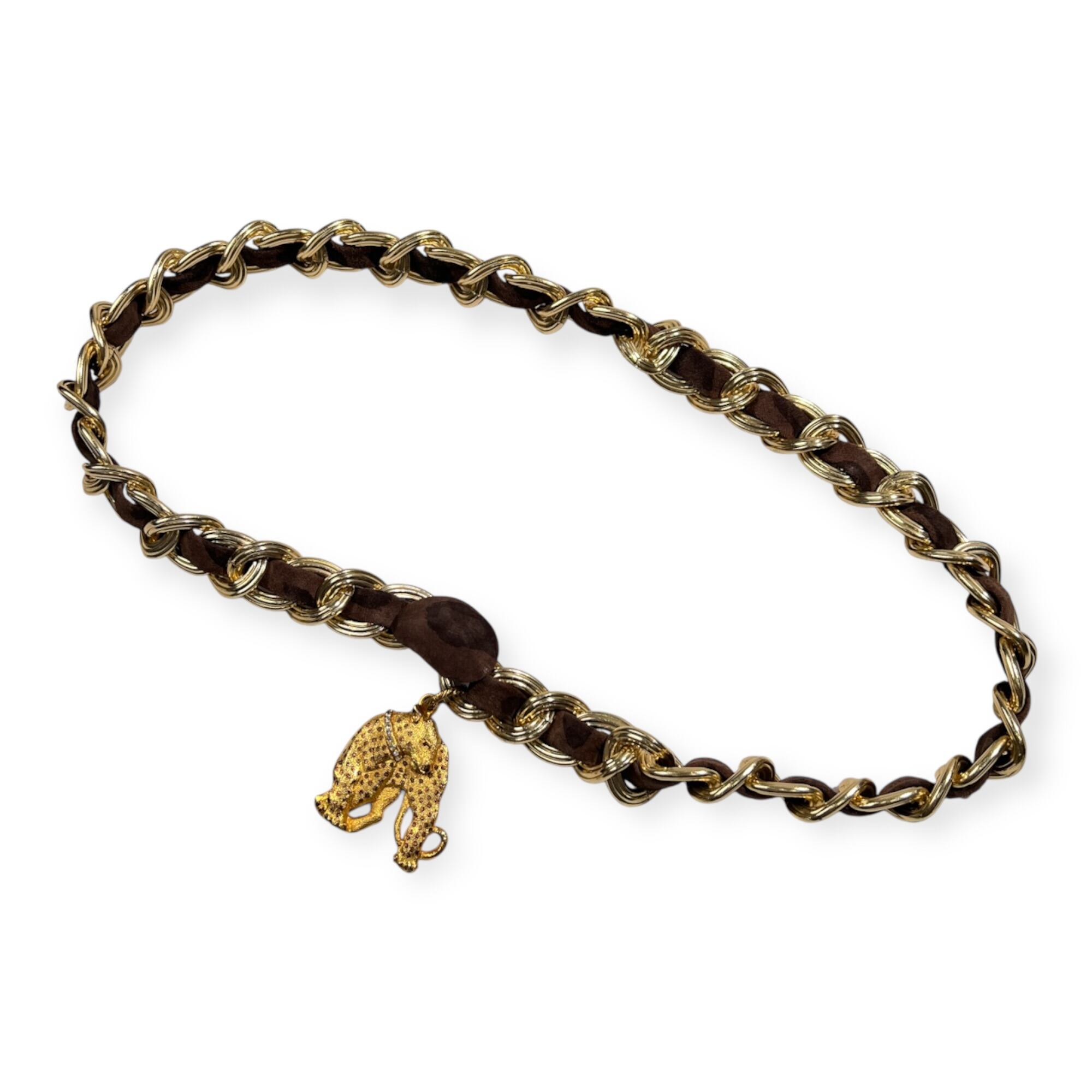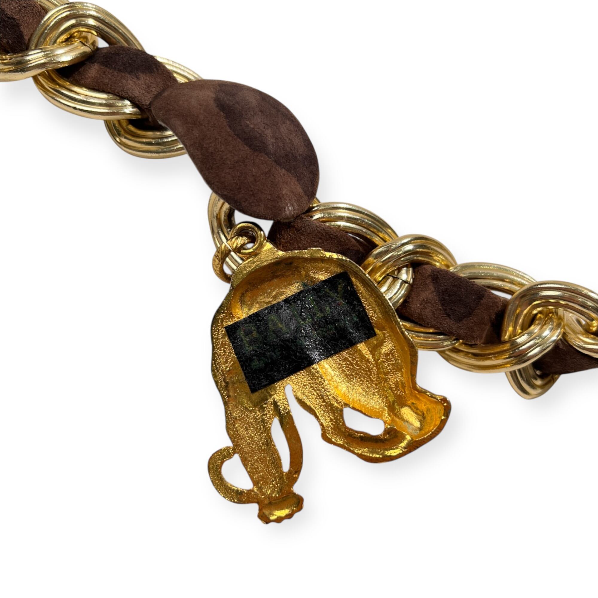 BALLY バリー レオパード レザー ベルト チェーン 70 /フランス製/ビンテージ/ゴールド×ブラウン系