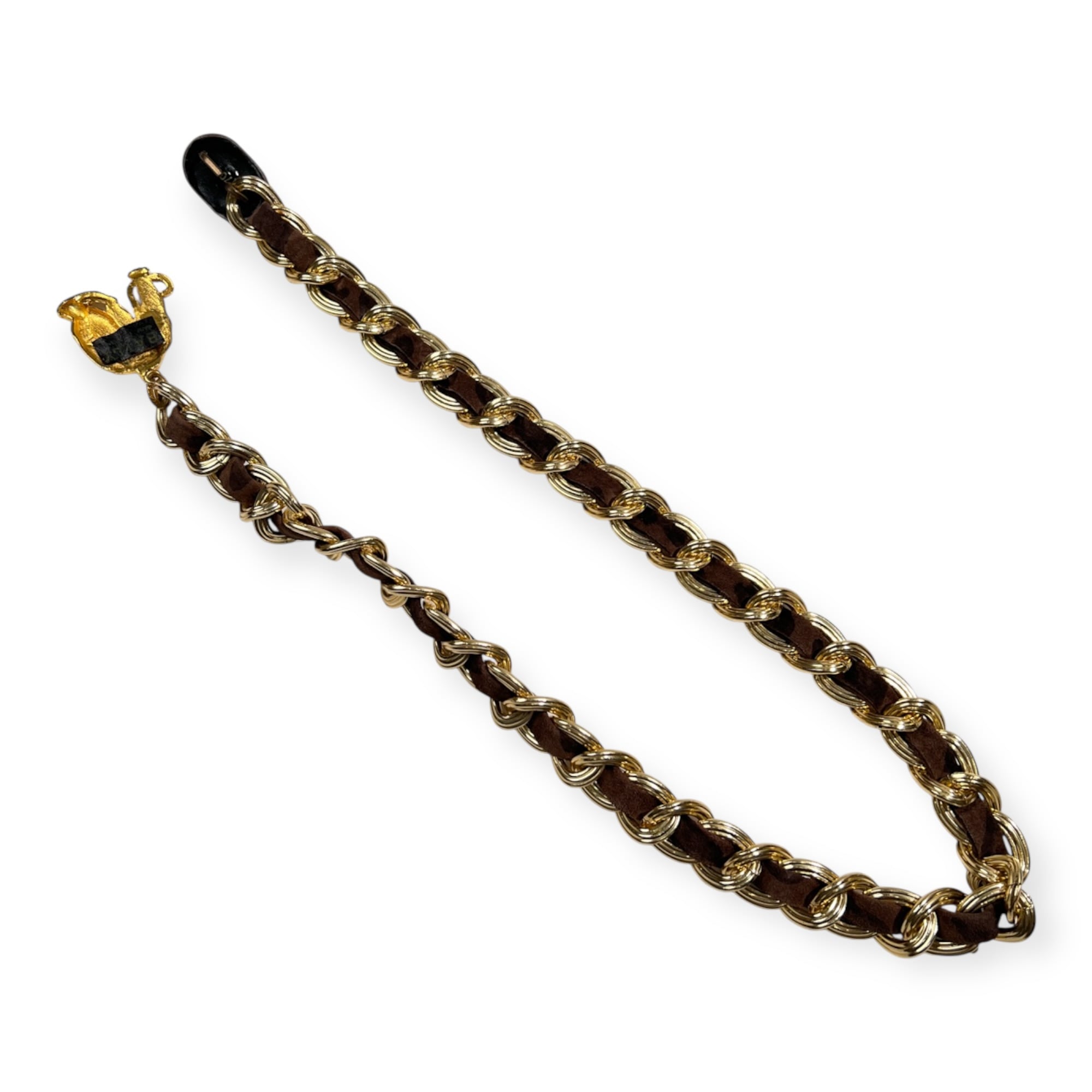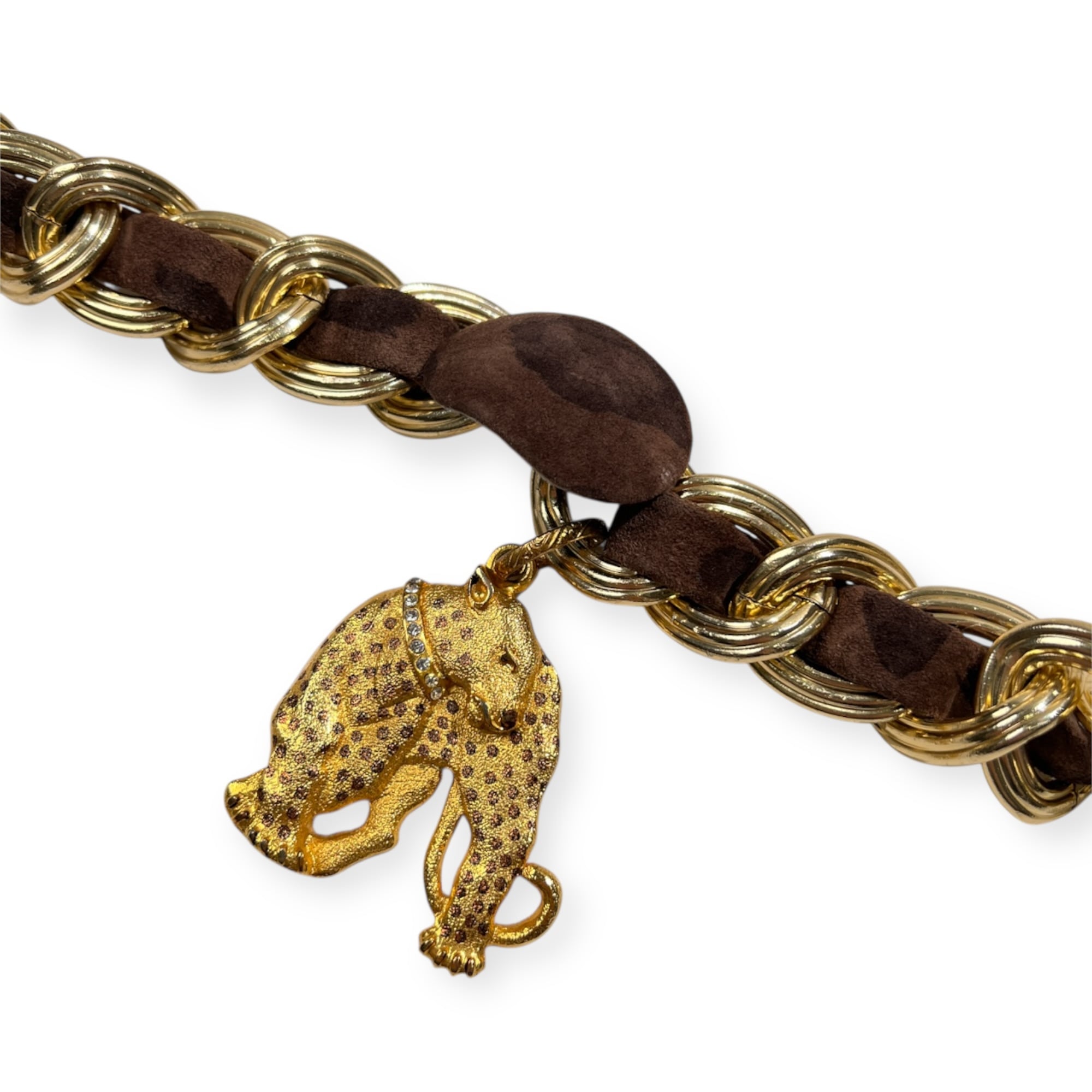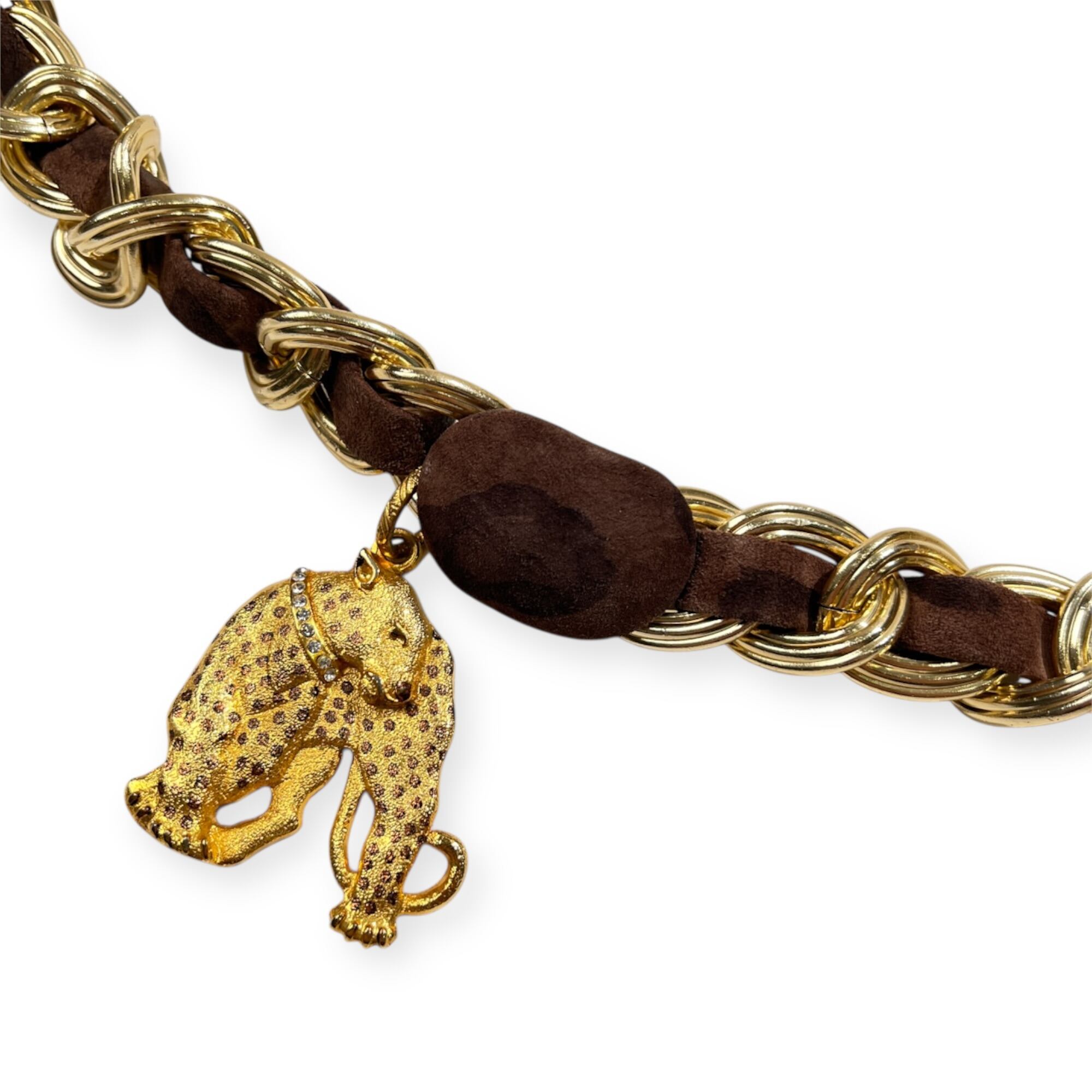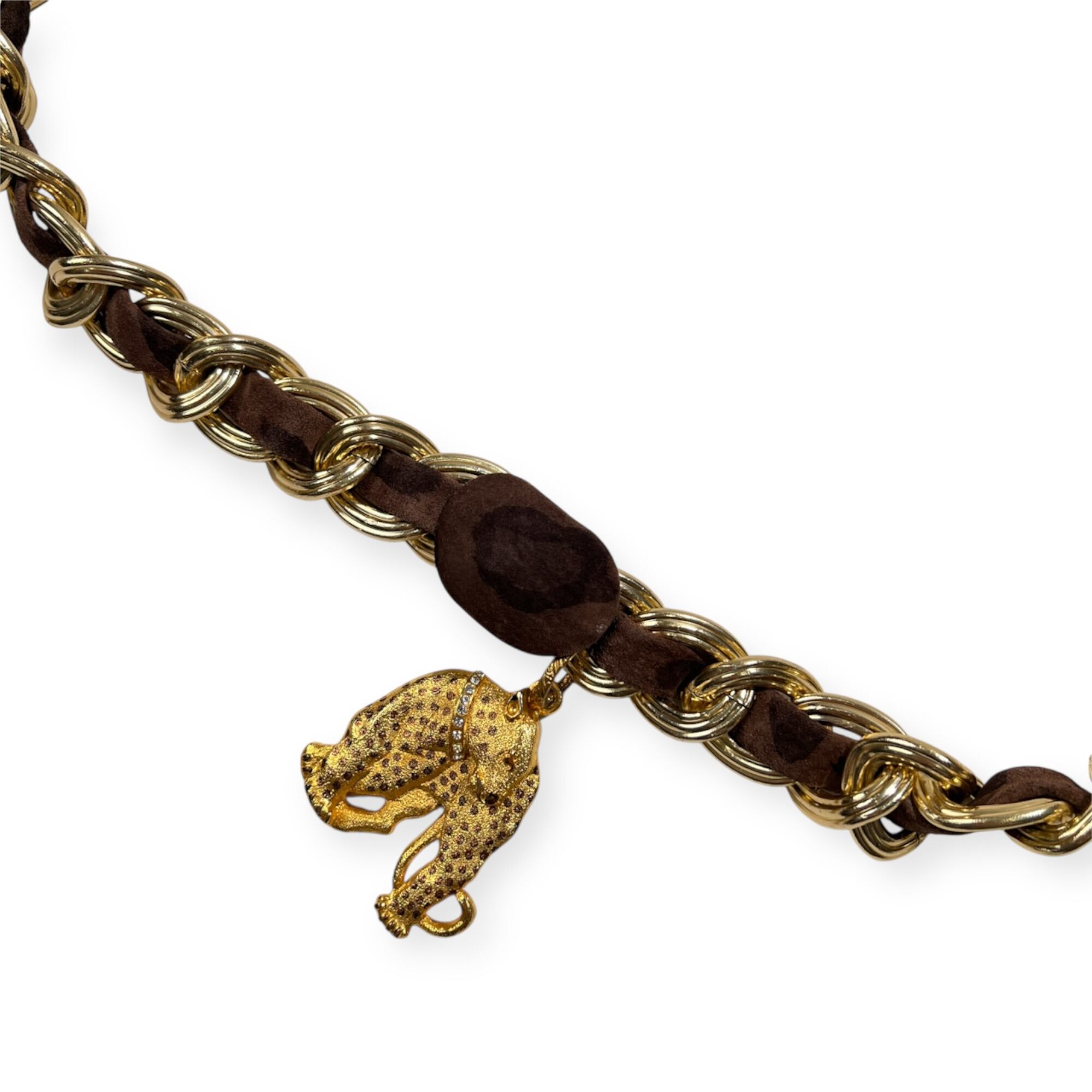 BALLY バリー レオパード レザー ベルト チェーン 70 /フランス製/ビンテージ/ゴールド×ブラウン系