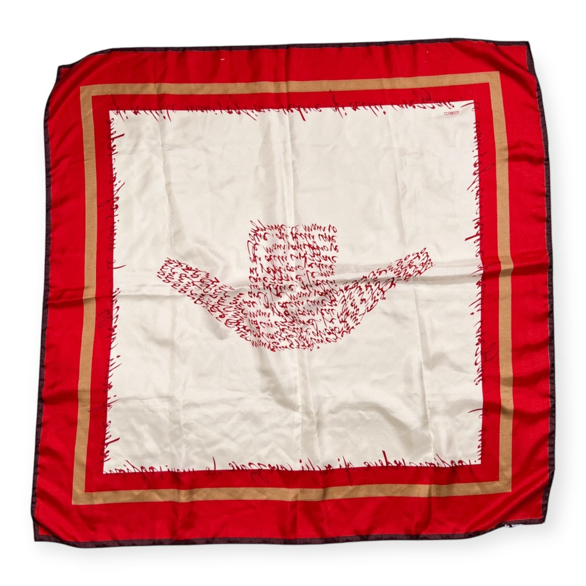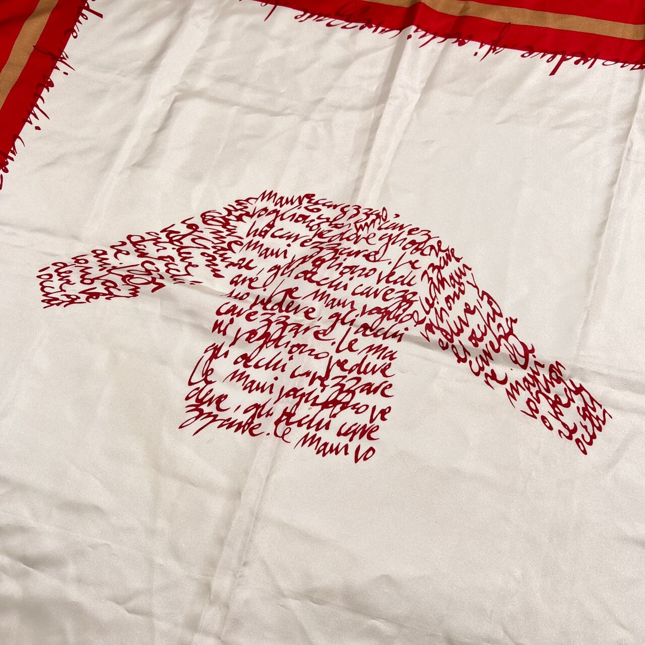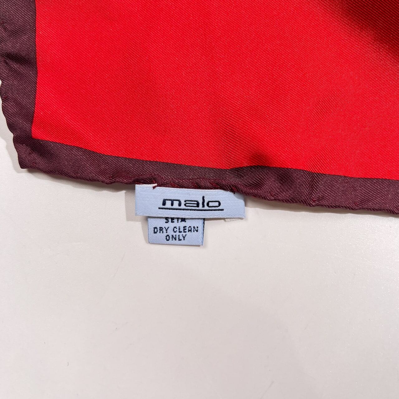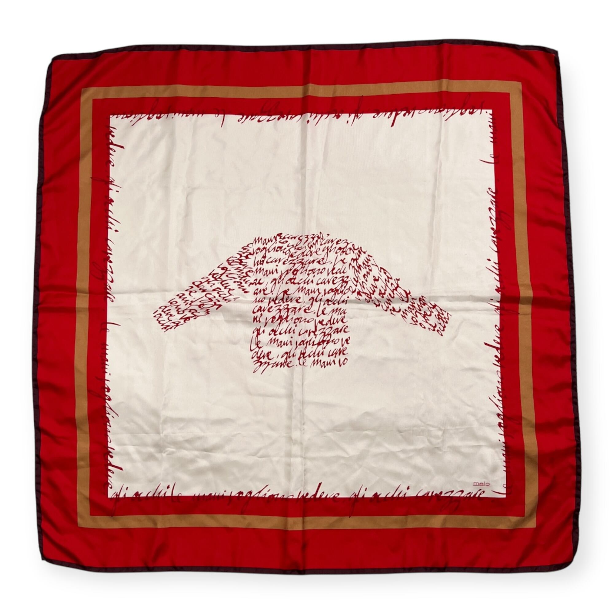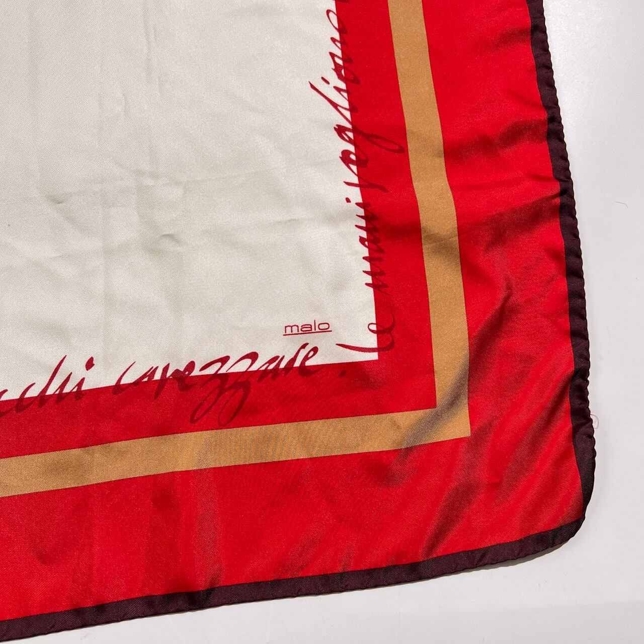malo マーロ イタリア製 シルク100% 大判 スカーフ /ホワイト×ベージュ×レッド