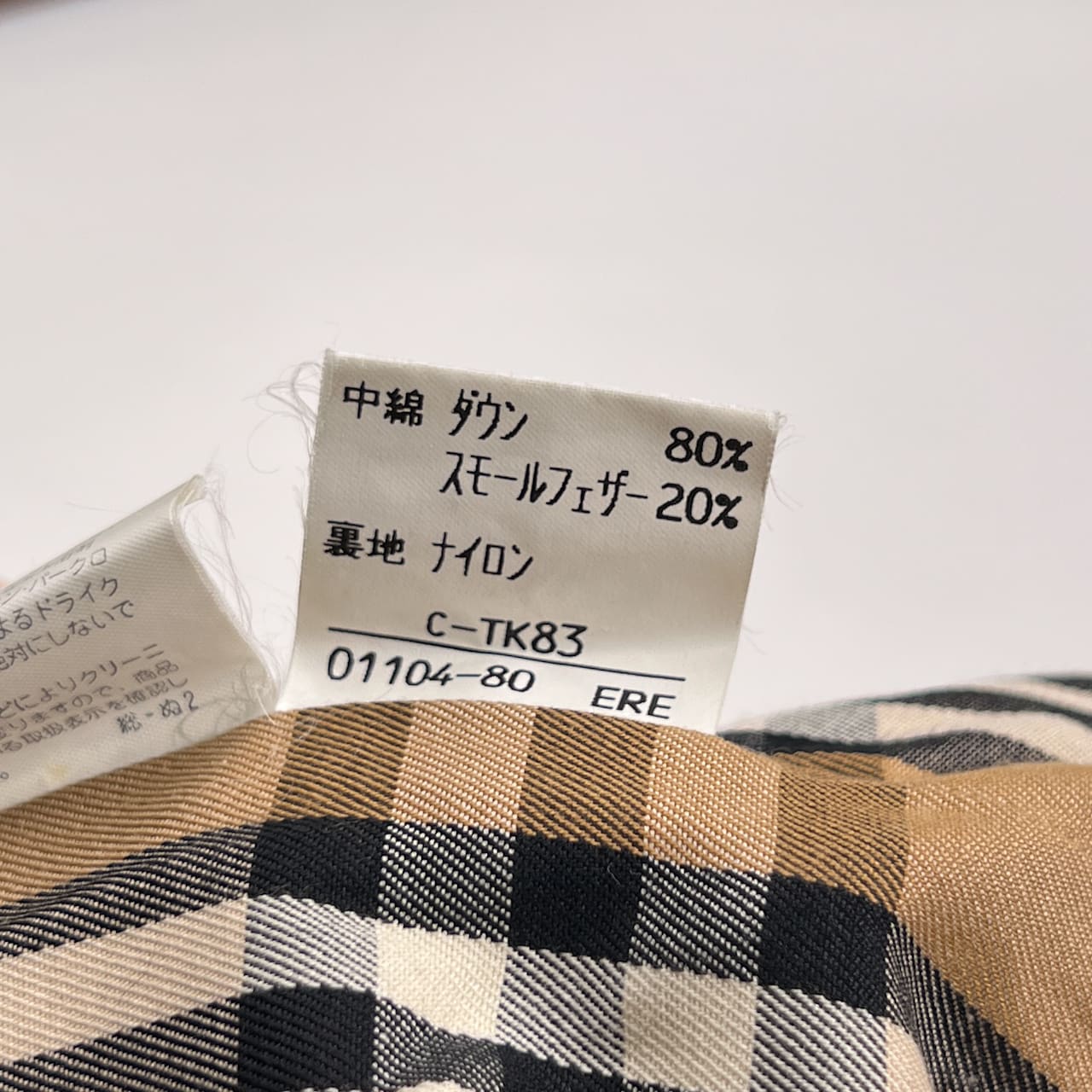 ・表地:表地:綿65% ポリエステル35% 中綿 ダウン80% スモールレザー 20%
