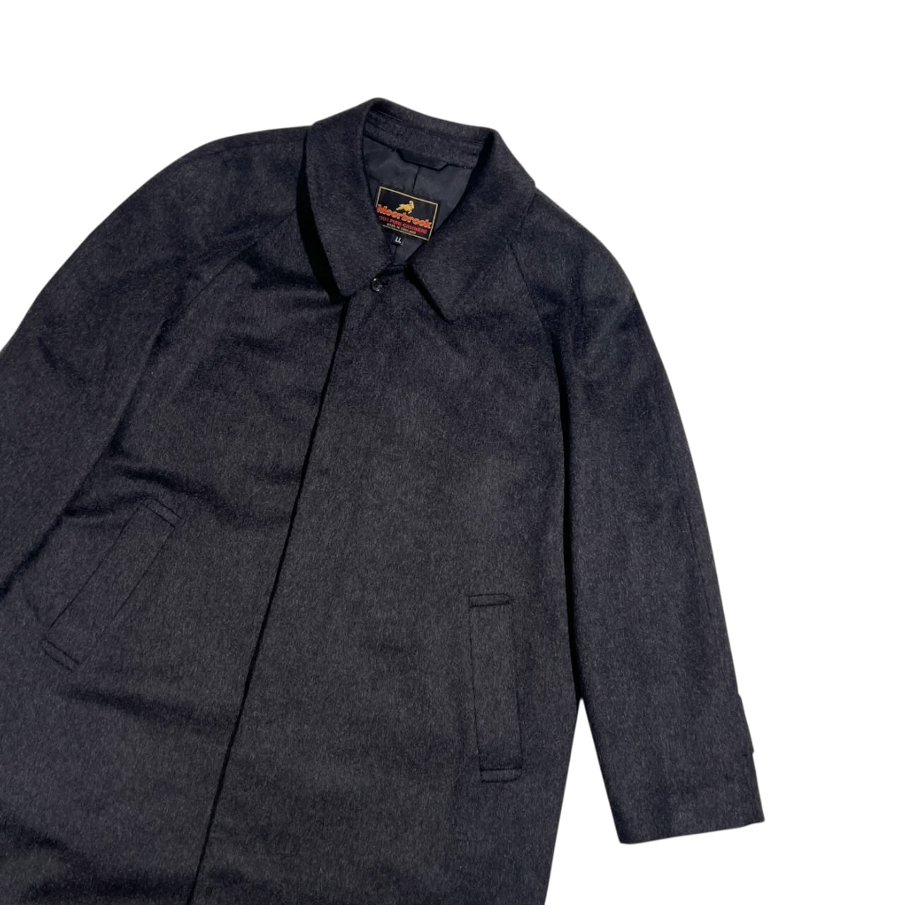 カシミヤ100% Moorbrook ムーアブルック 英国製生地 ステンカラーコート LL /チャコール系 メンズ