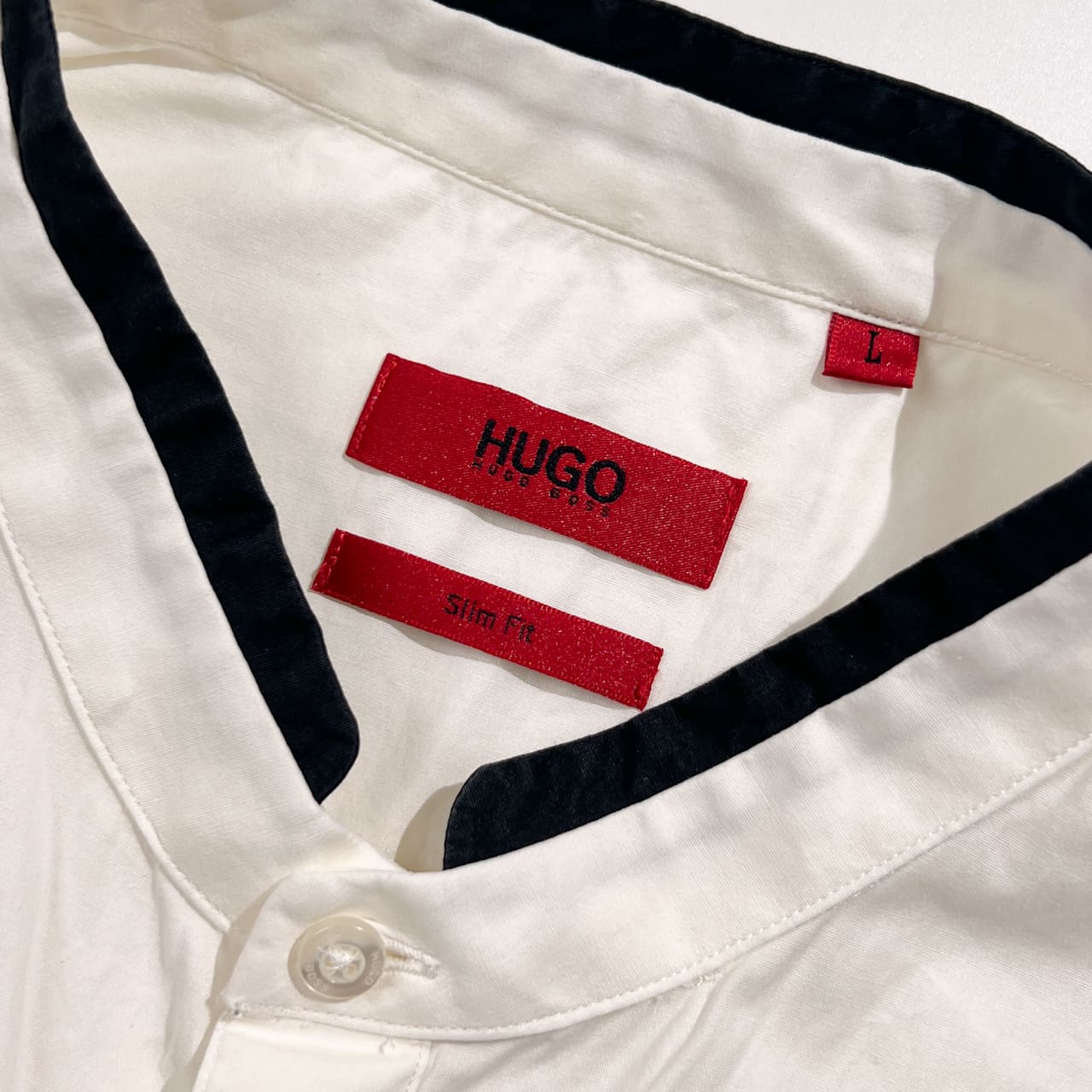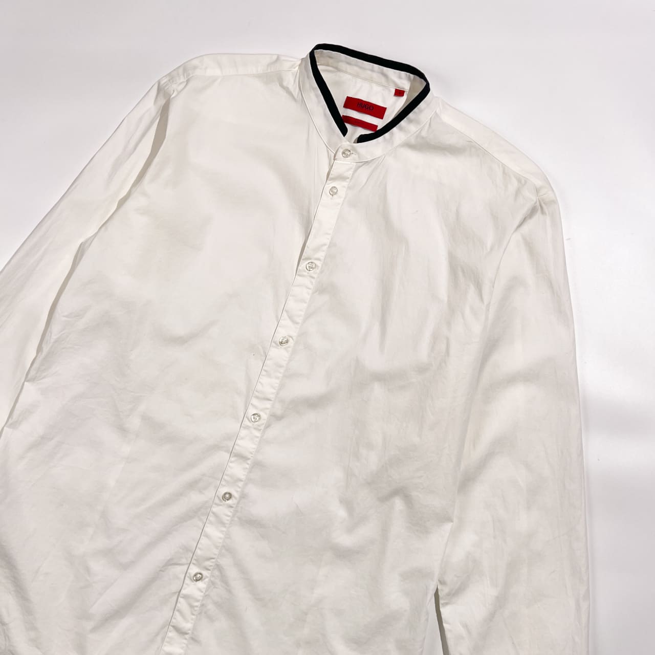 HUGO BOSS ヒューゴボス Slim Fit バンドカラー 長袖シャツ L/ホワイト系 メンズ