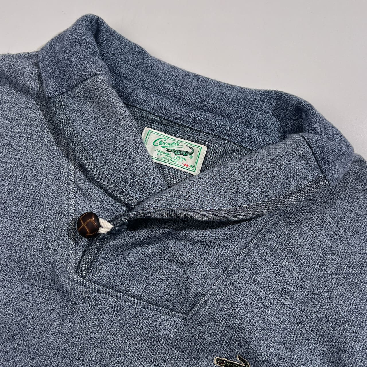 Crocodile クロコダイル ショールカラー トレーナー M/ブルーグレー系 メンズ バスケットボタン