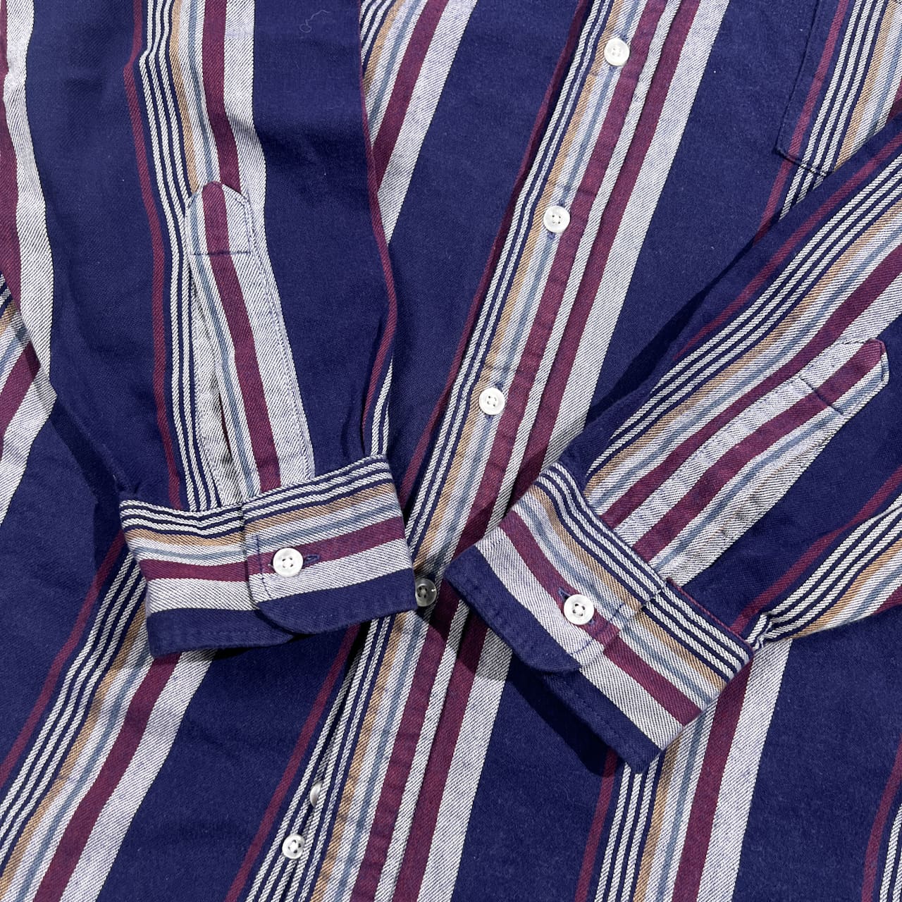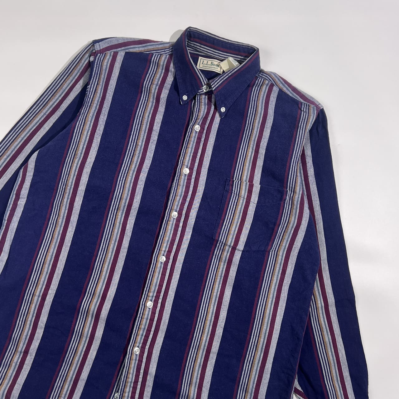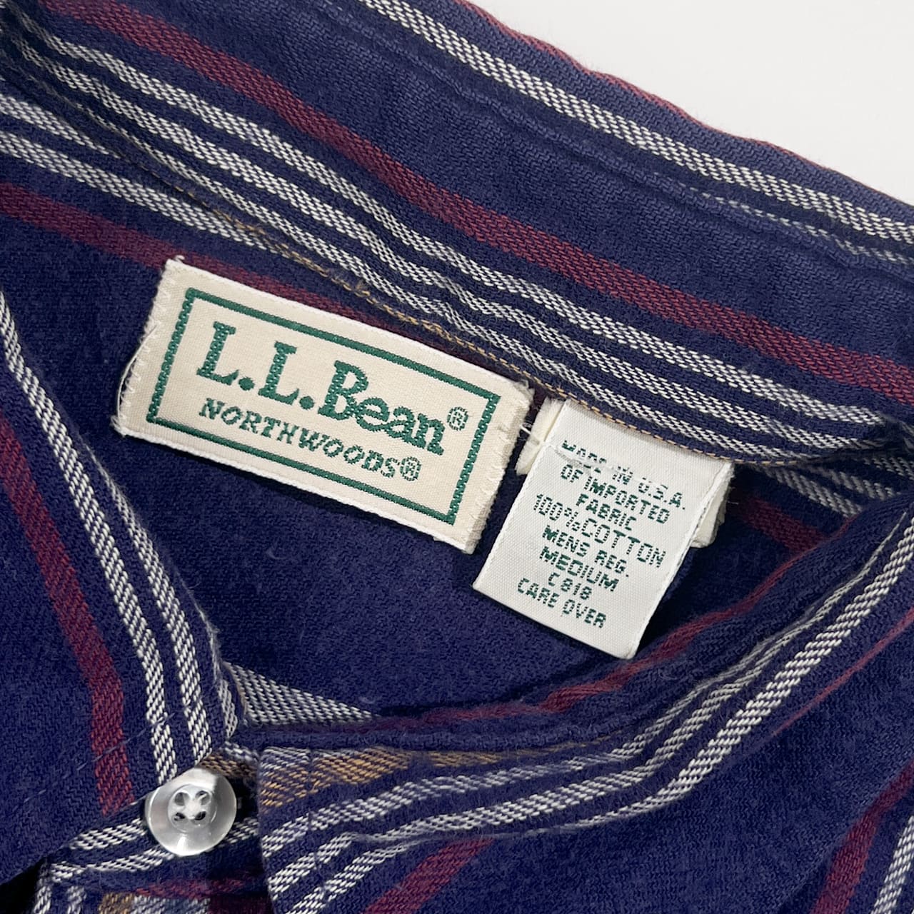 90s USA製 L.L.Bean エルエルビーン NORTHWOODS ストライプ柄 BD ボタンダウン 長袖 ネルシャツ M/ネイビー系 メンズ ヴィンテージ