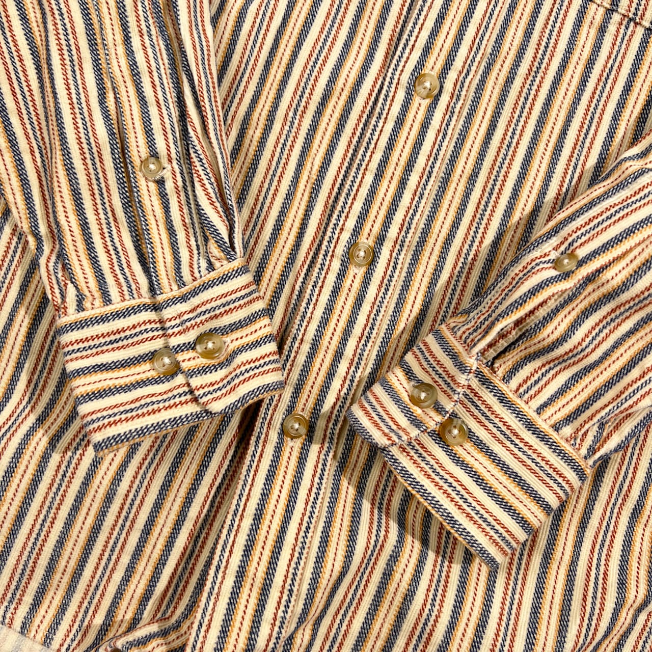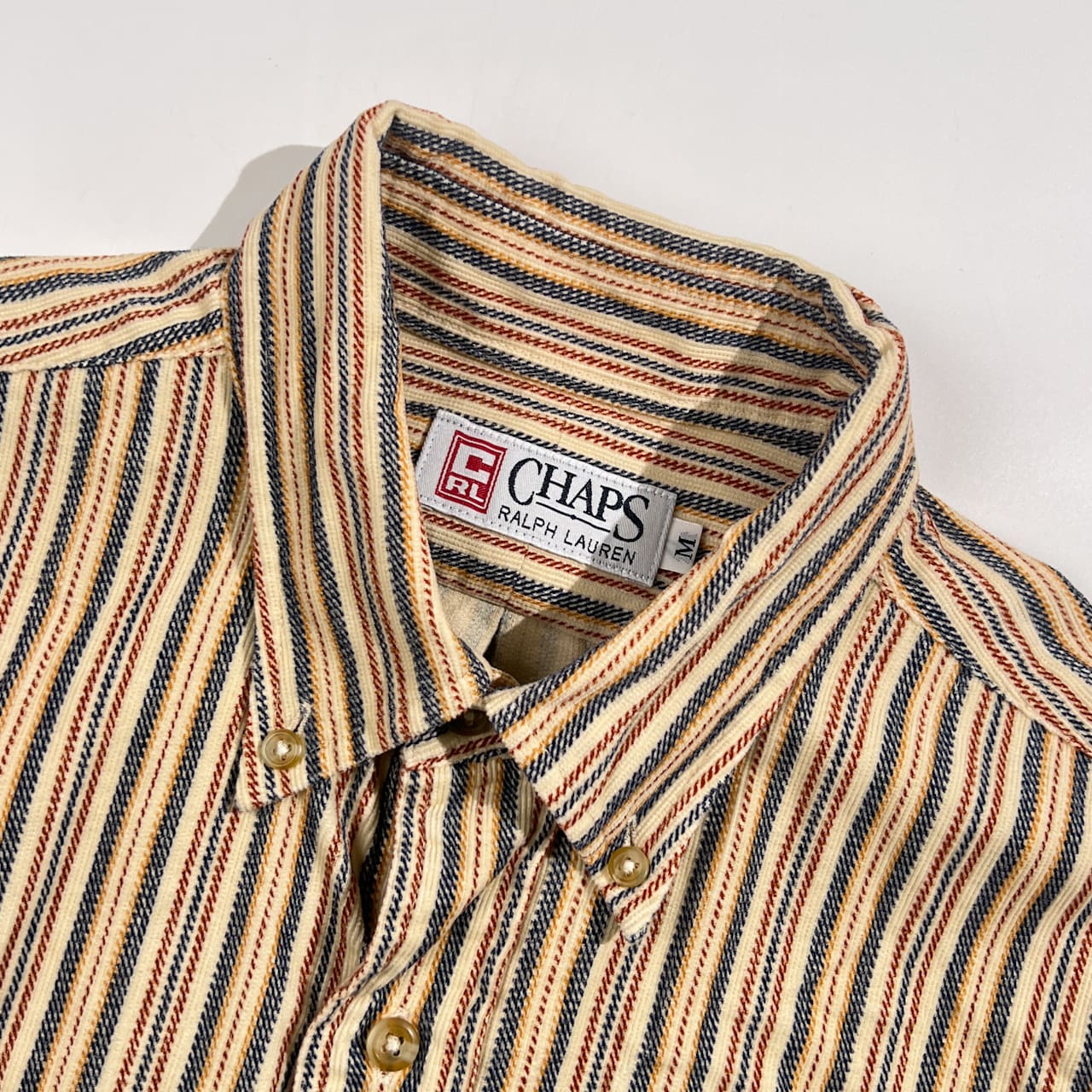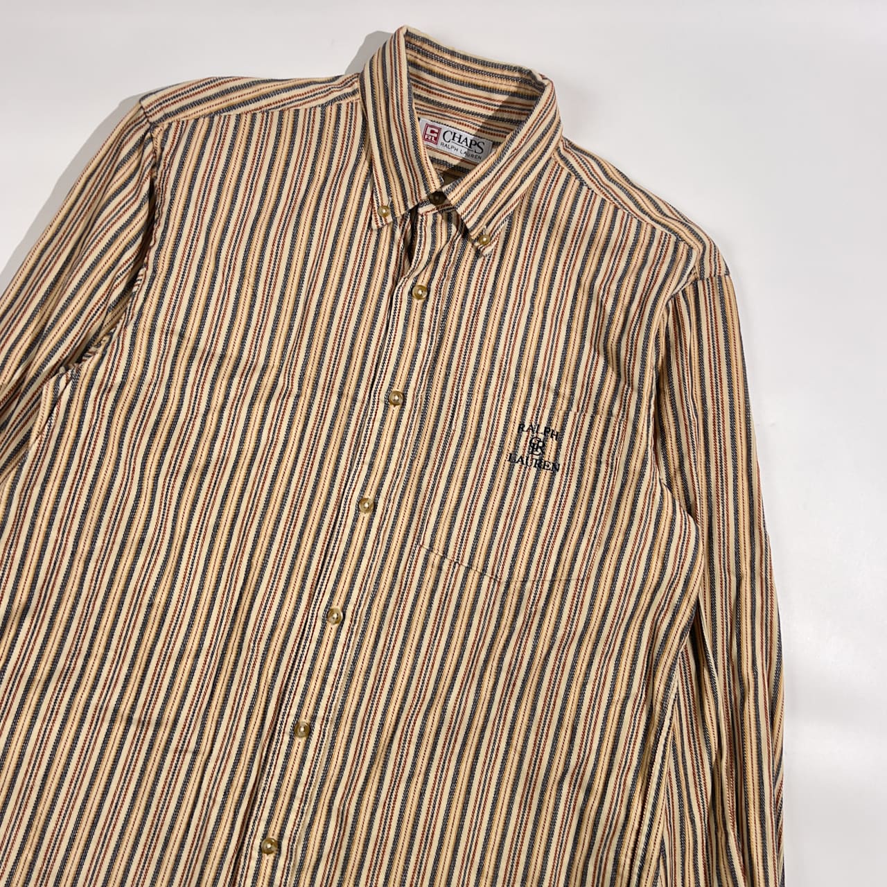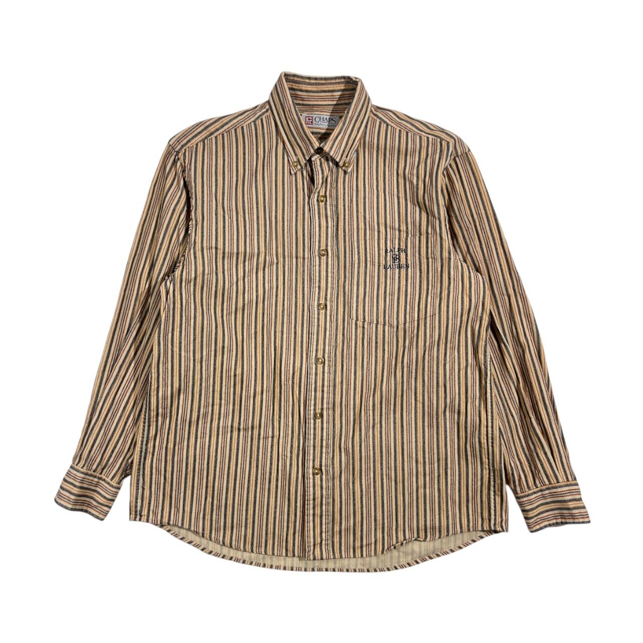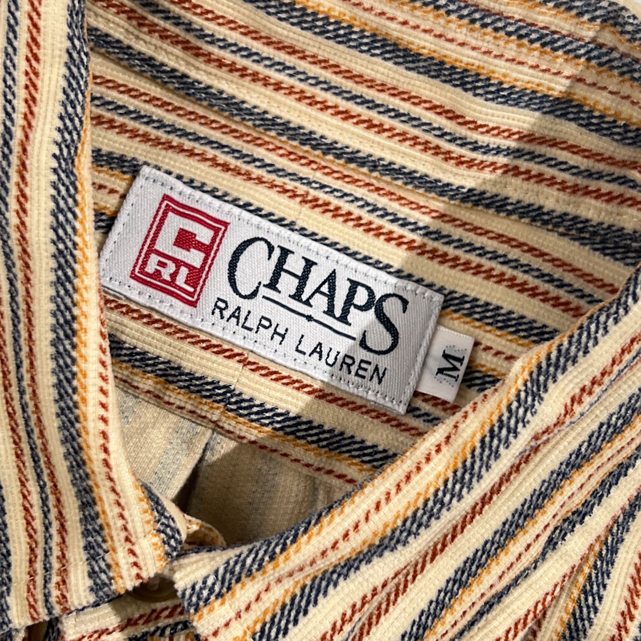 90s CHAPS RALPH LAUREN チャップス ラルフローレン ストライプ BD ボタンダウン 長袖 ネル風シャツ M/ベージュ系 メンズ ビンテージ