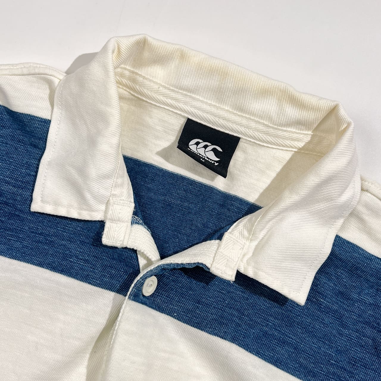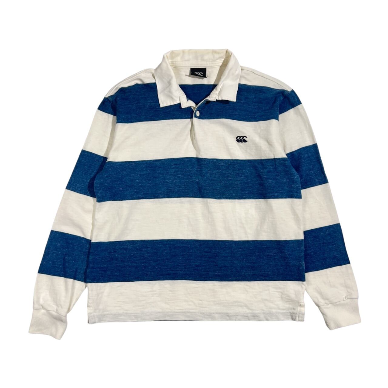 canterbury カンタベリー ボーダー 長袖 ラガーシャツ M/ホワイト×ブルー系 メンズ ラグビー