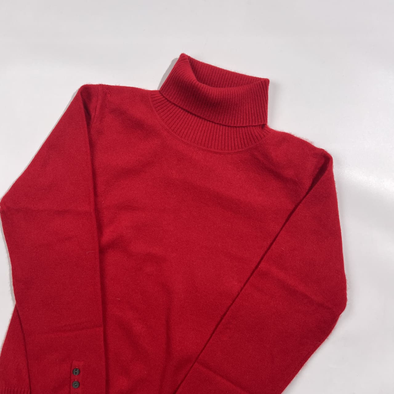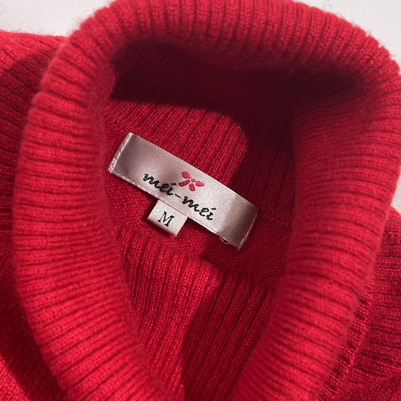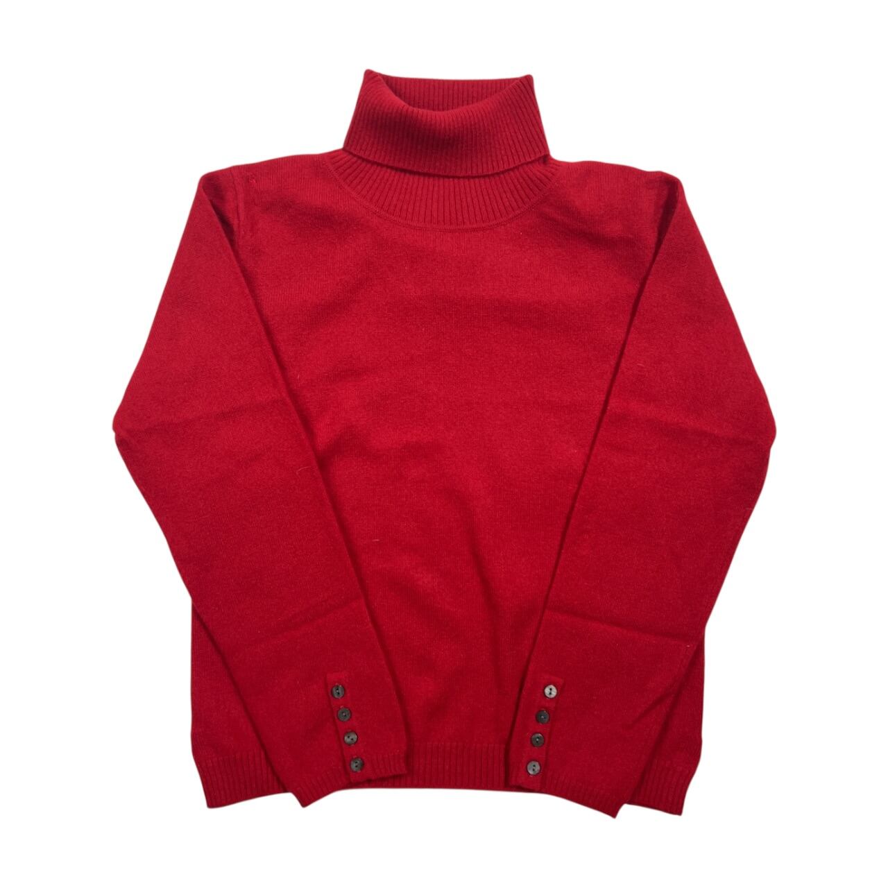 カシミヤ100% mei-mei メイメイ タートルネック ニット セーター M /レッド系 レディース 袖口ボタン