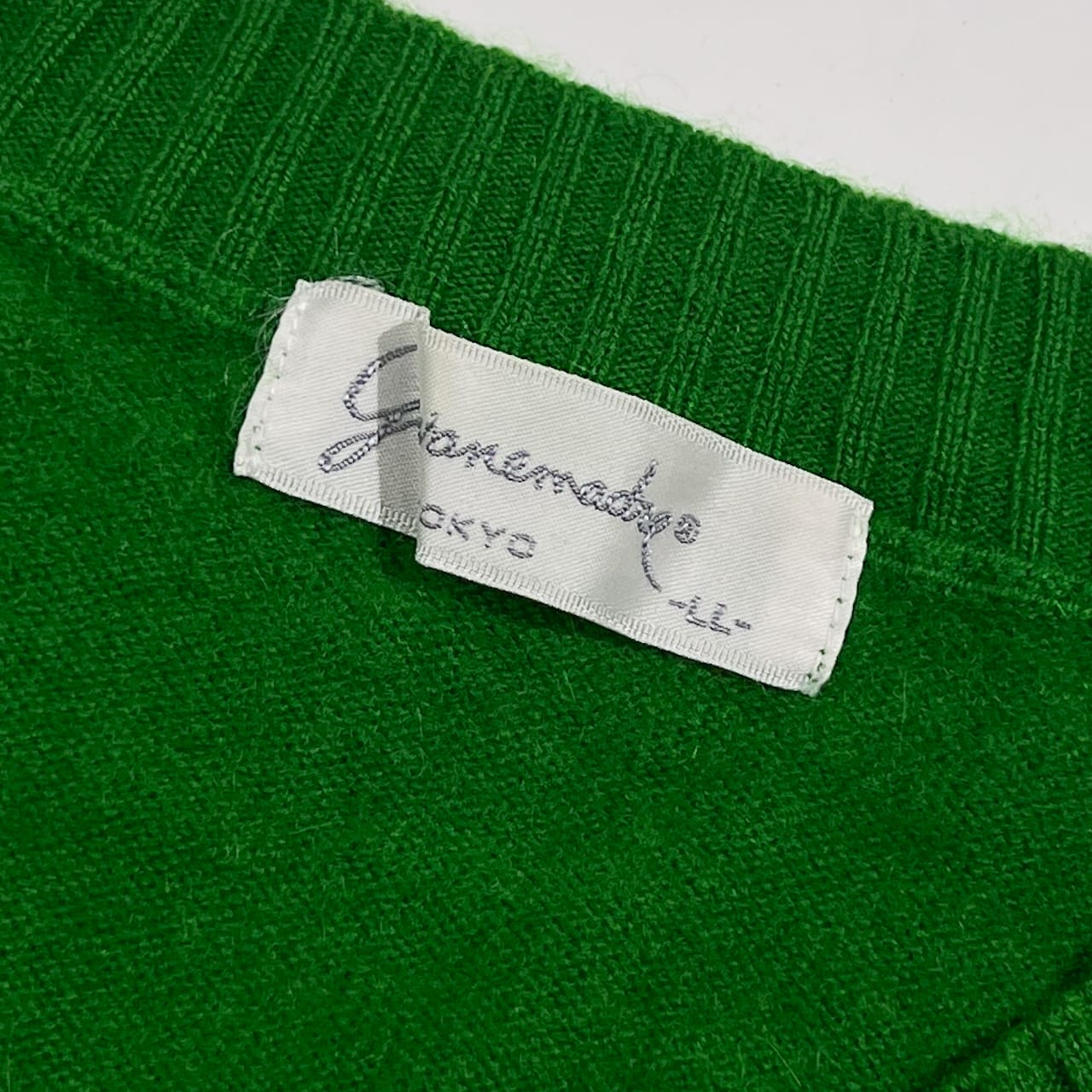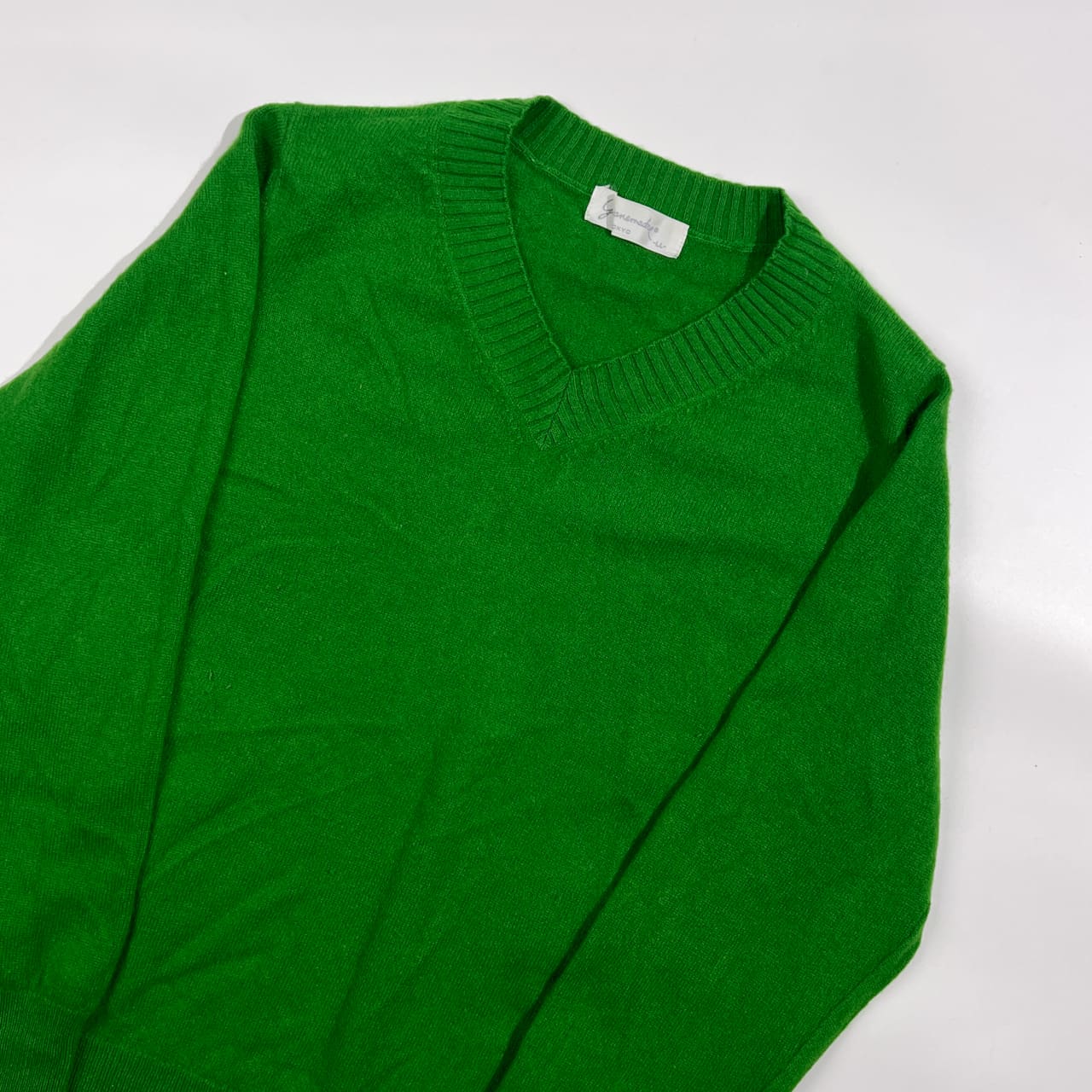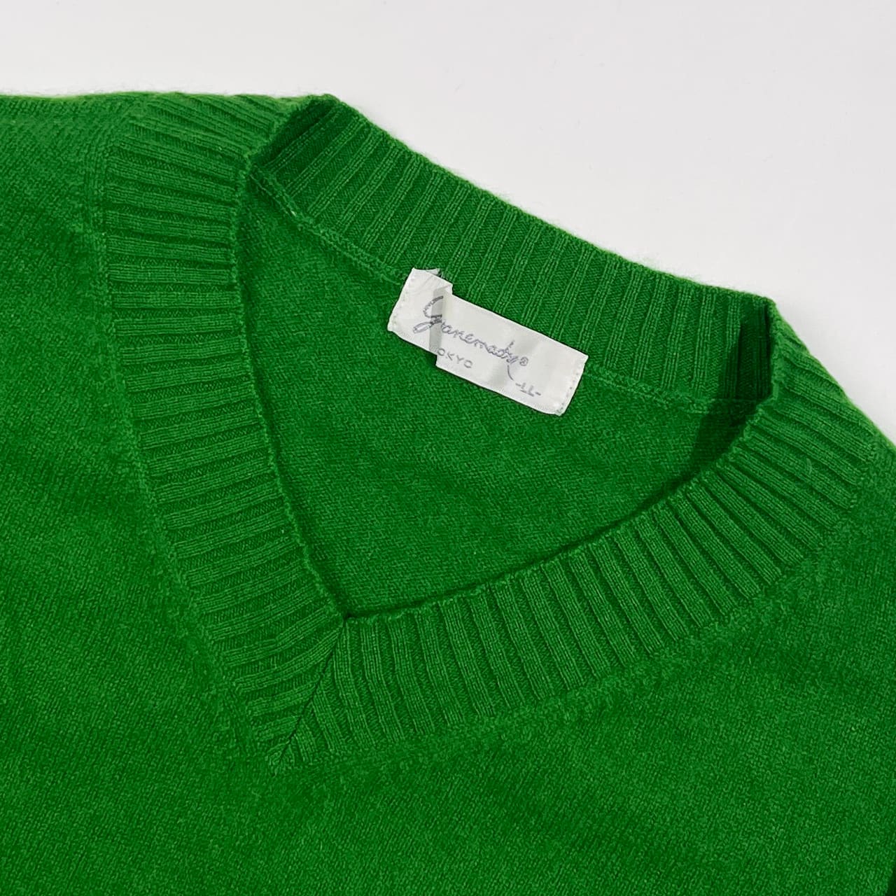 カシミア100% Giovanemadre ジョバンマドレー Vネック ニット セーター LL /グリーン系 レディース