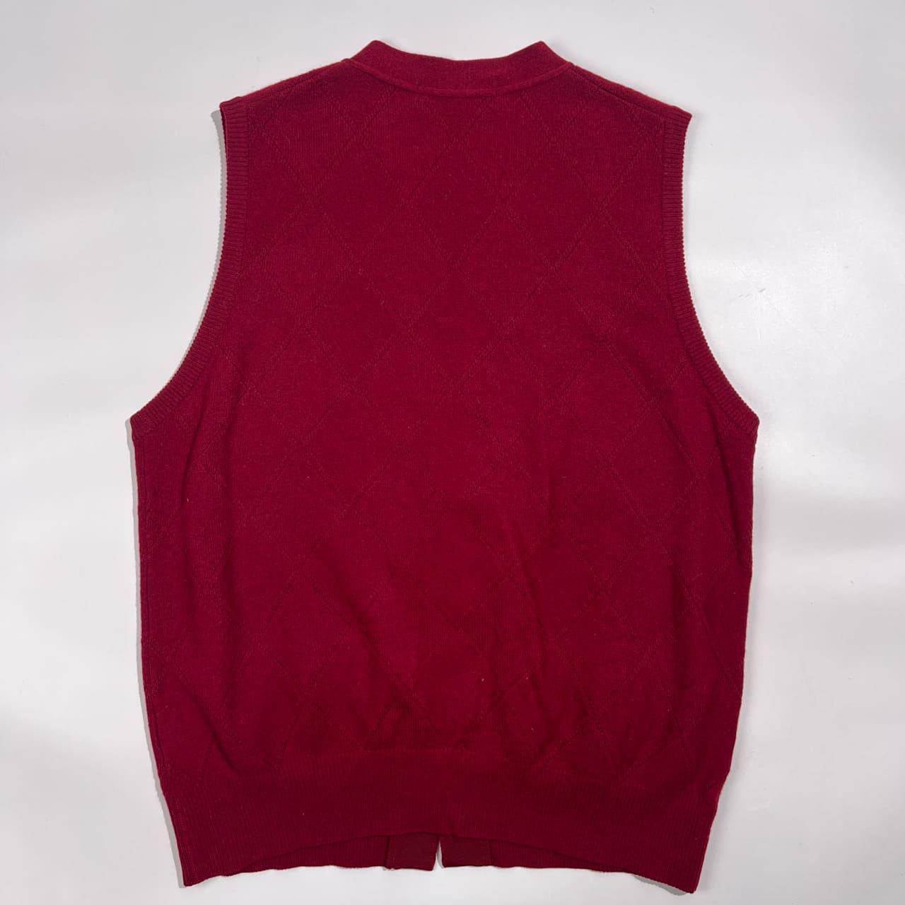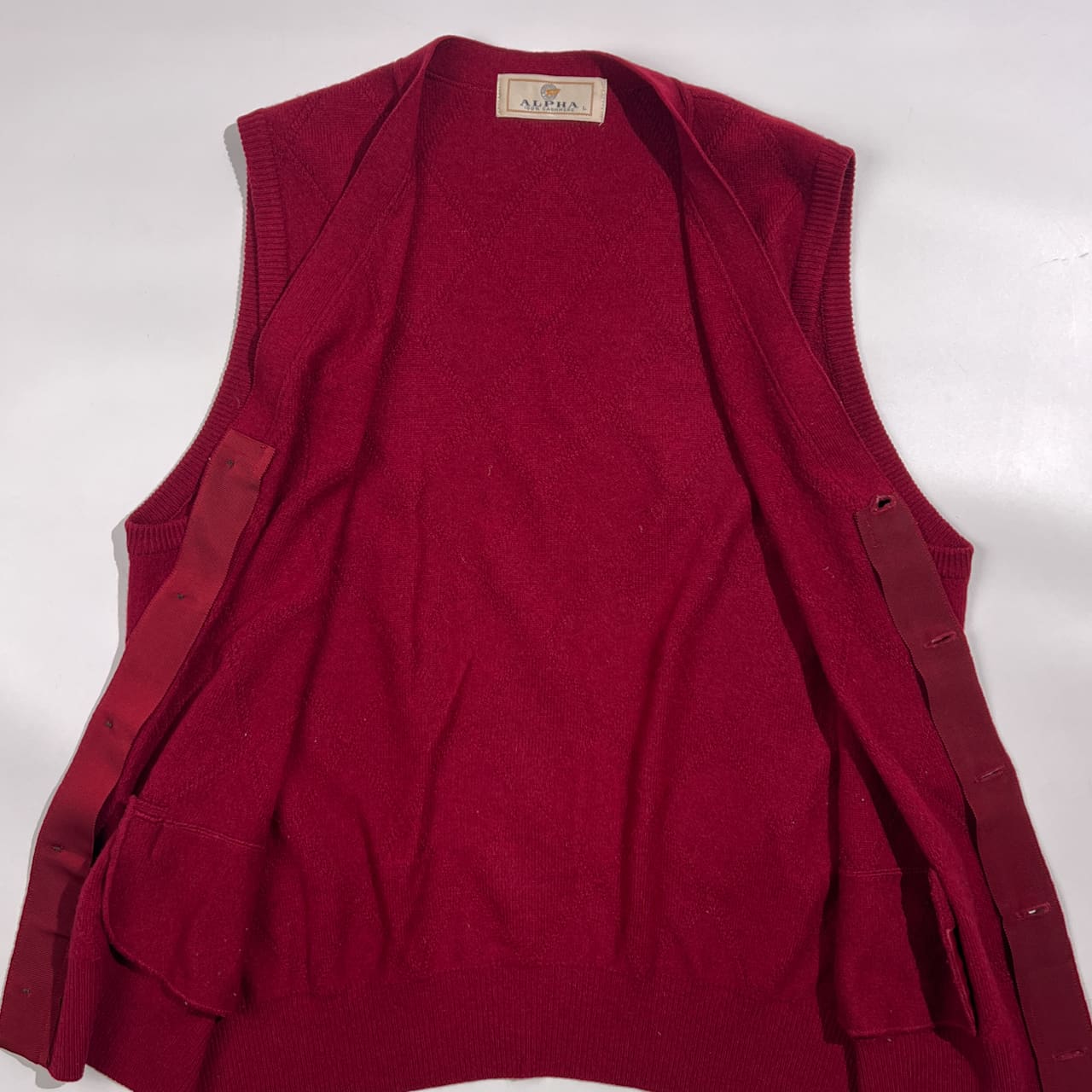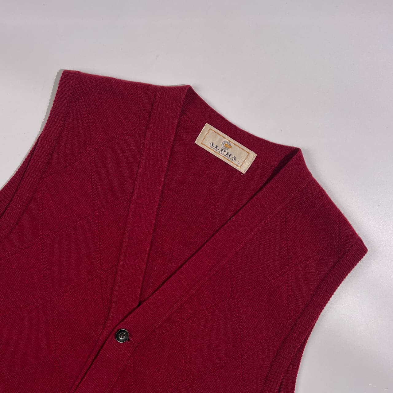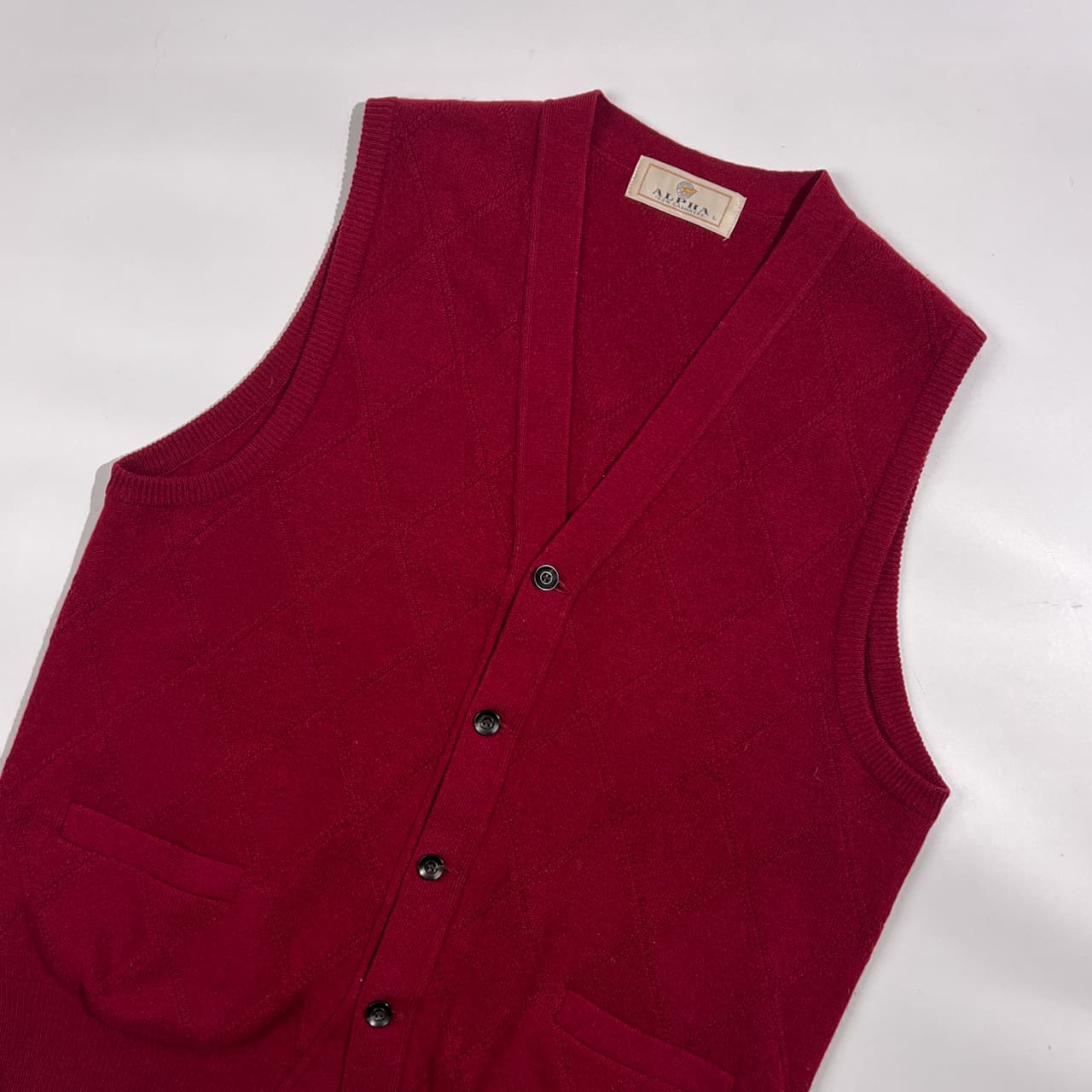 カシミヤ100% ALPHA アルファ ダイヤ柄 前開き ニット ベスト L/ワインレッド系 メンズ
