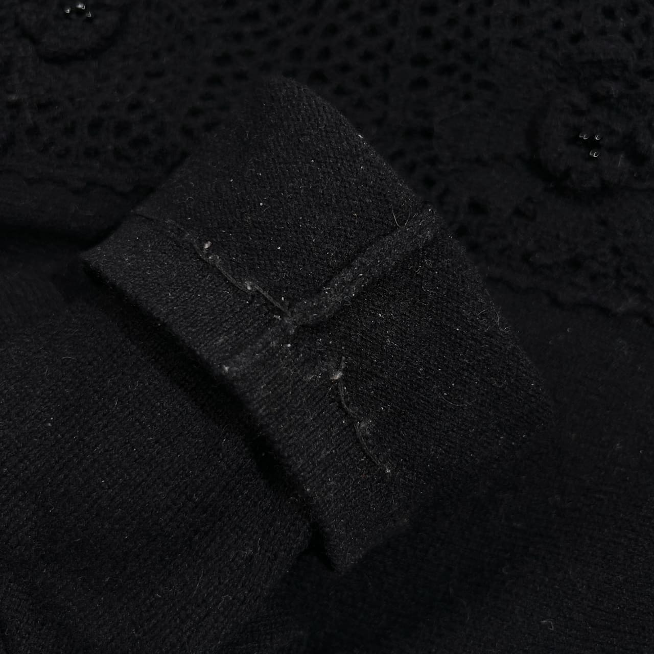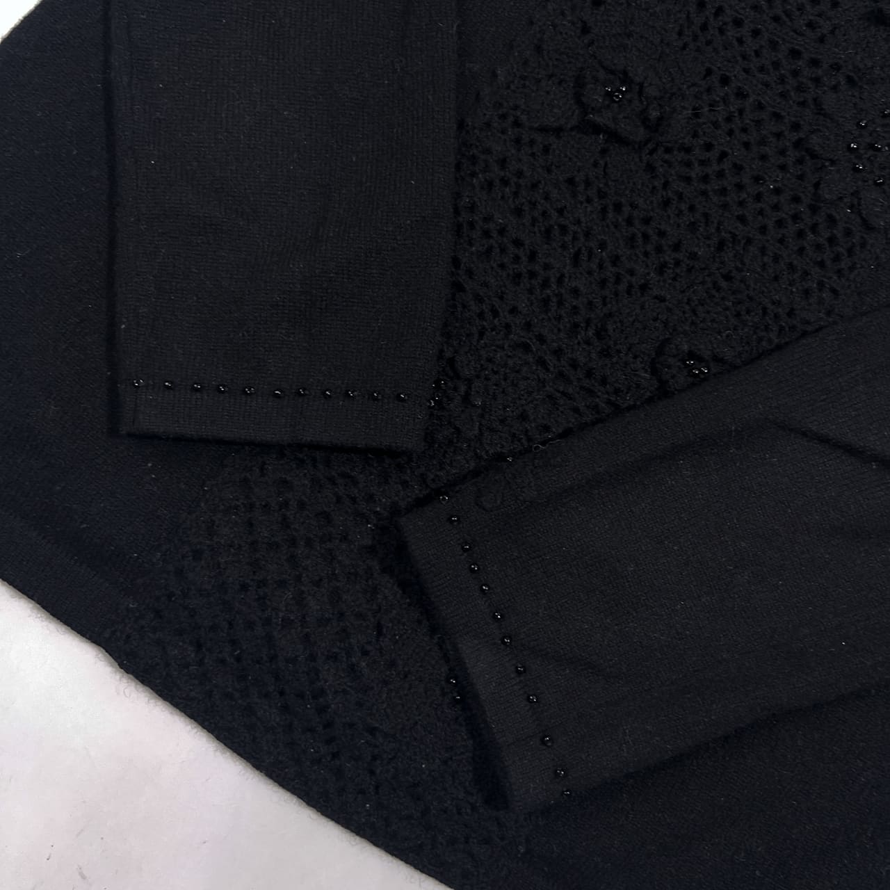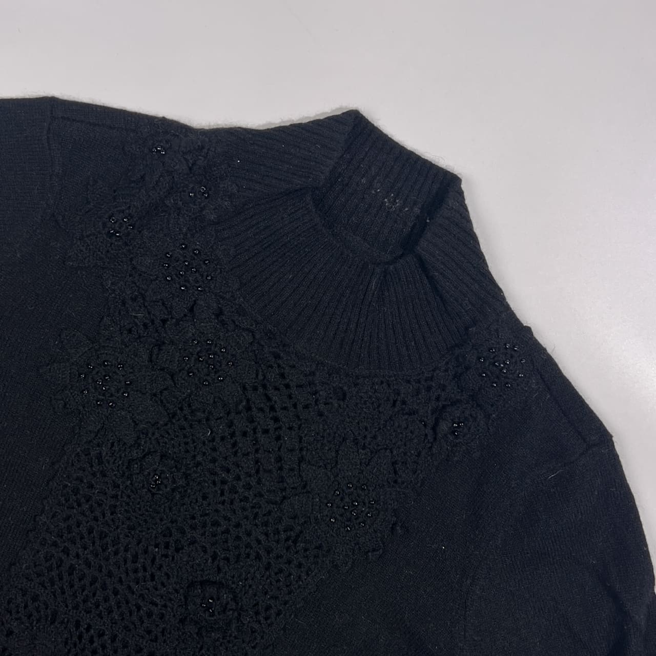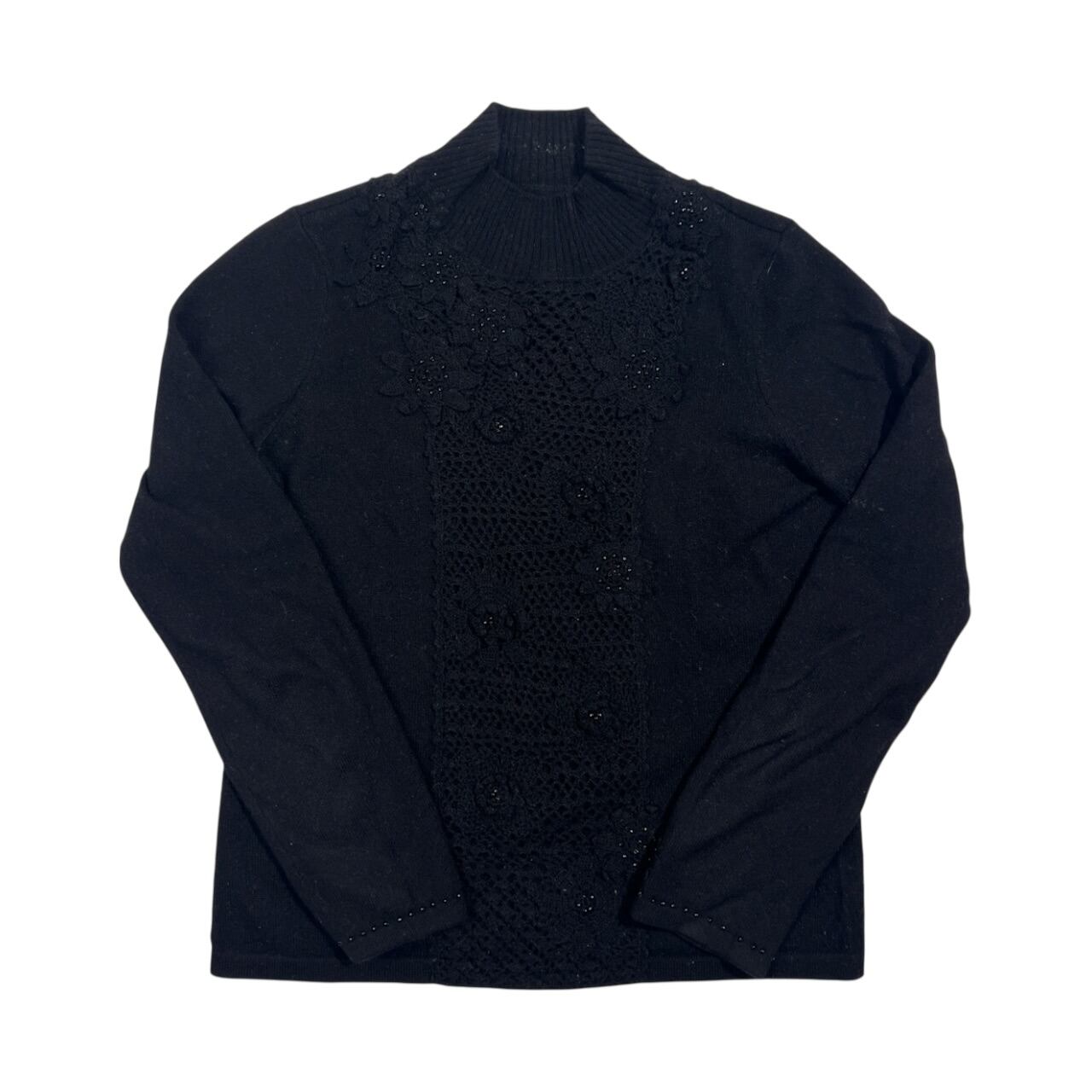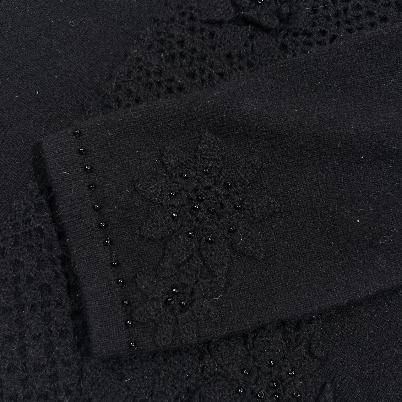カシミヤ100% Leilian レリアン フローラール ビーズ レース デザイン ニット セーター 9/ブラック 黒 レディース