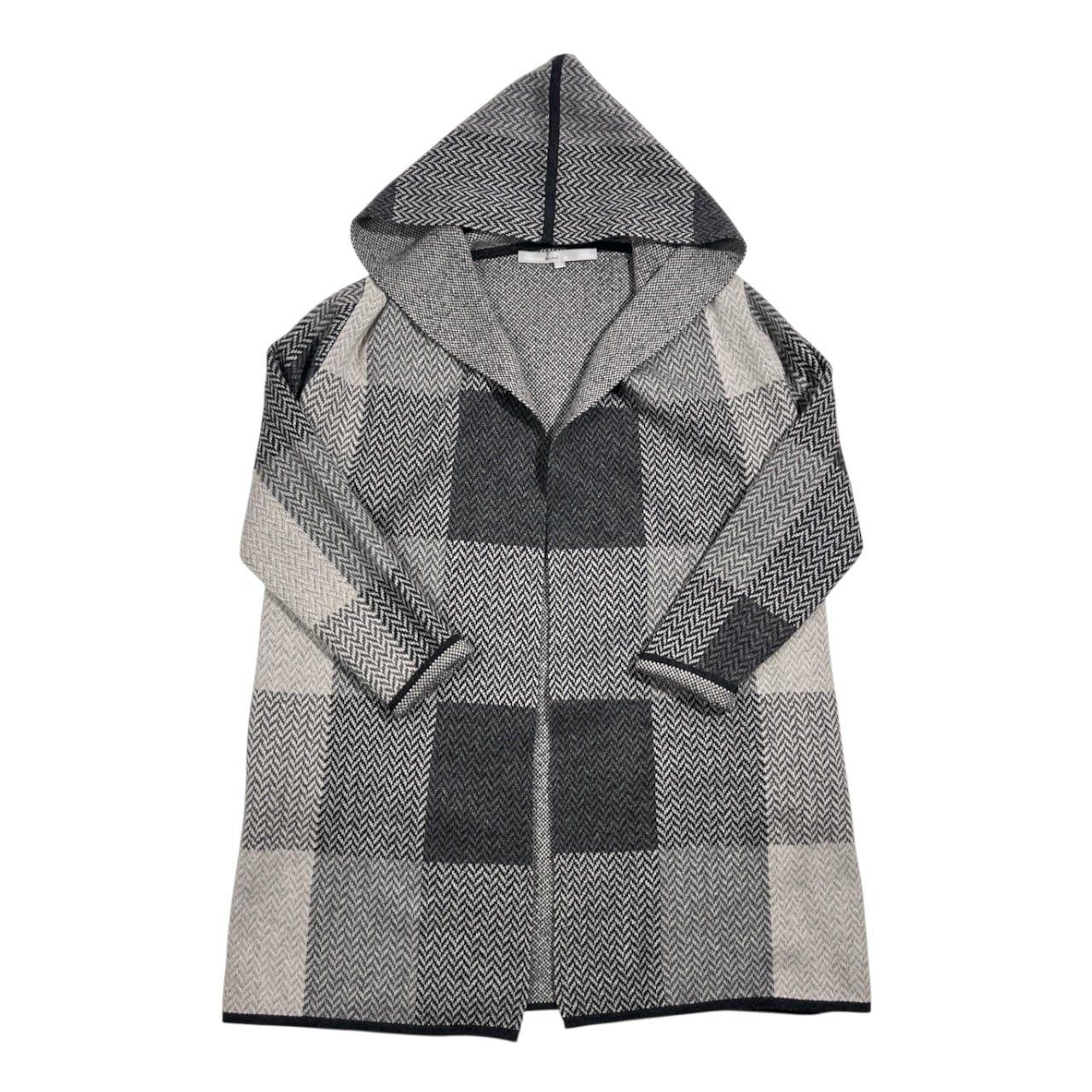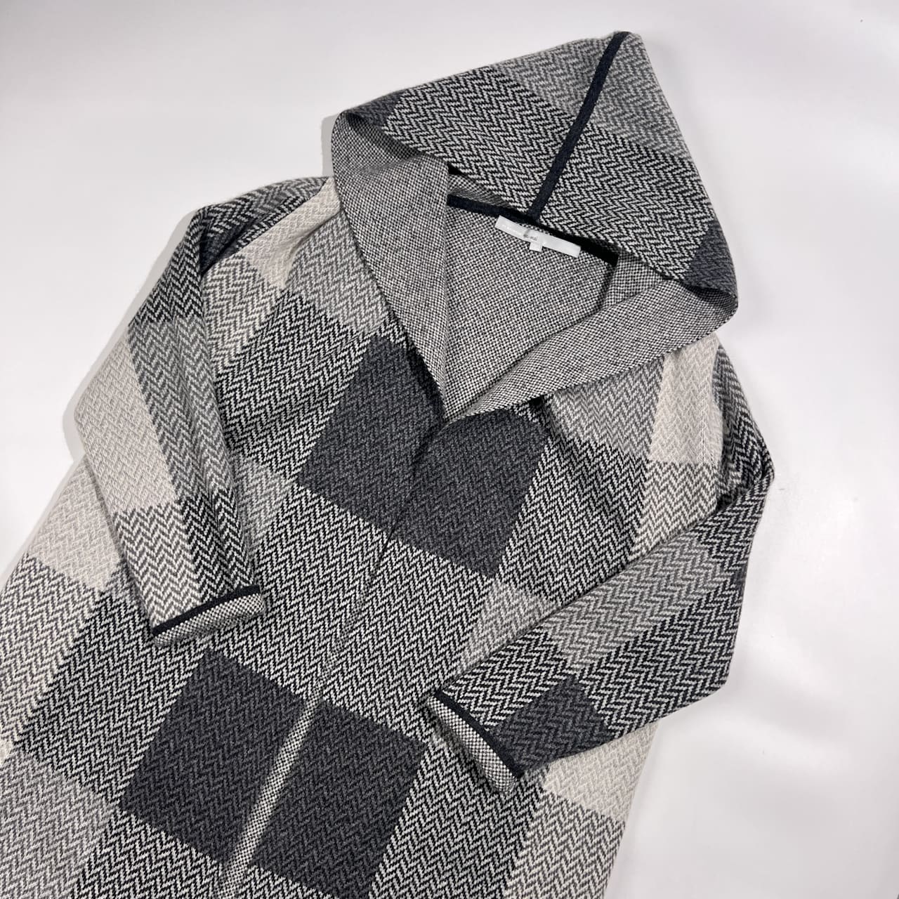 カシミヤ100% PLATINUM mei-mei プラチナムメイメイ ヘリンボーン柄 フーデッド コート 羽織 M/グレー系 レディース