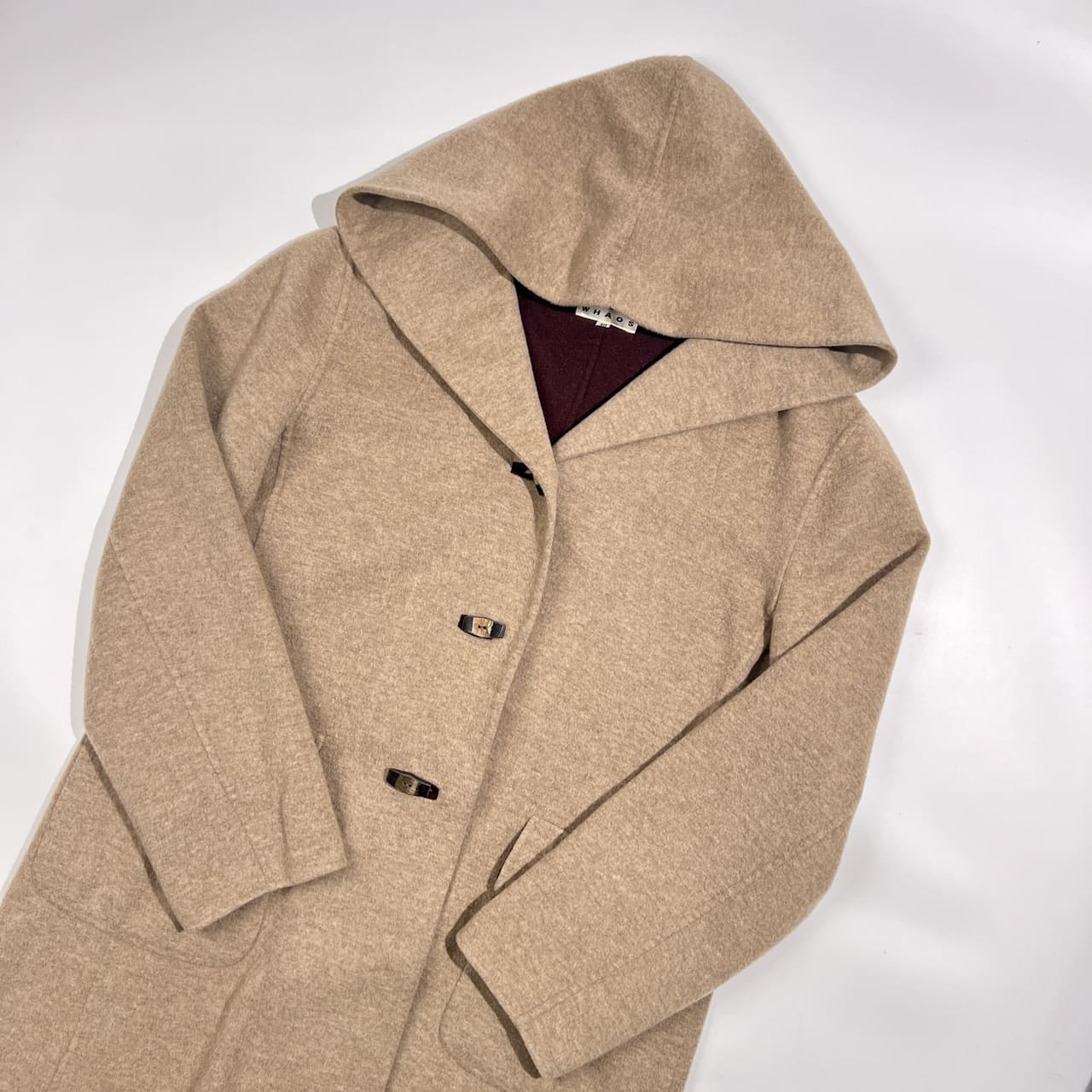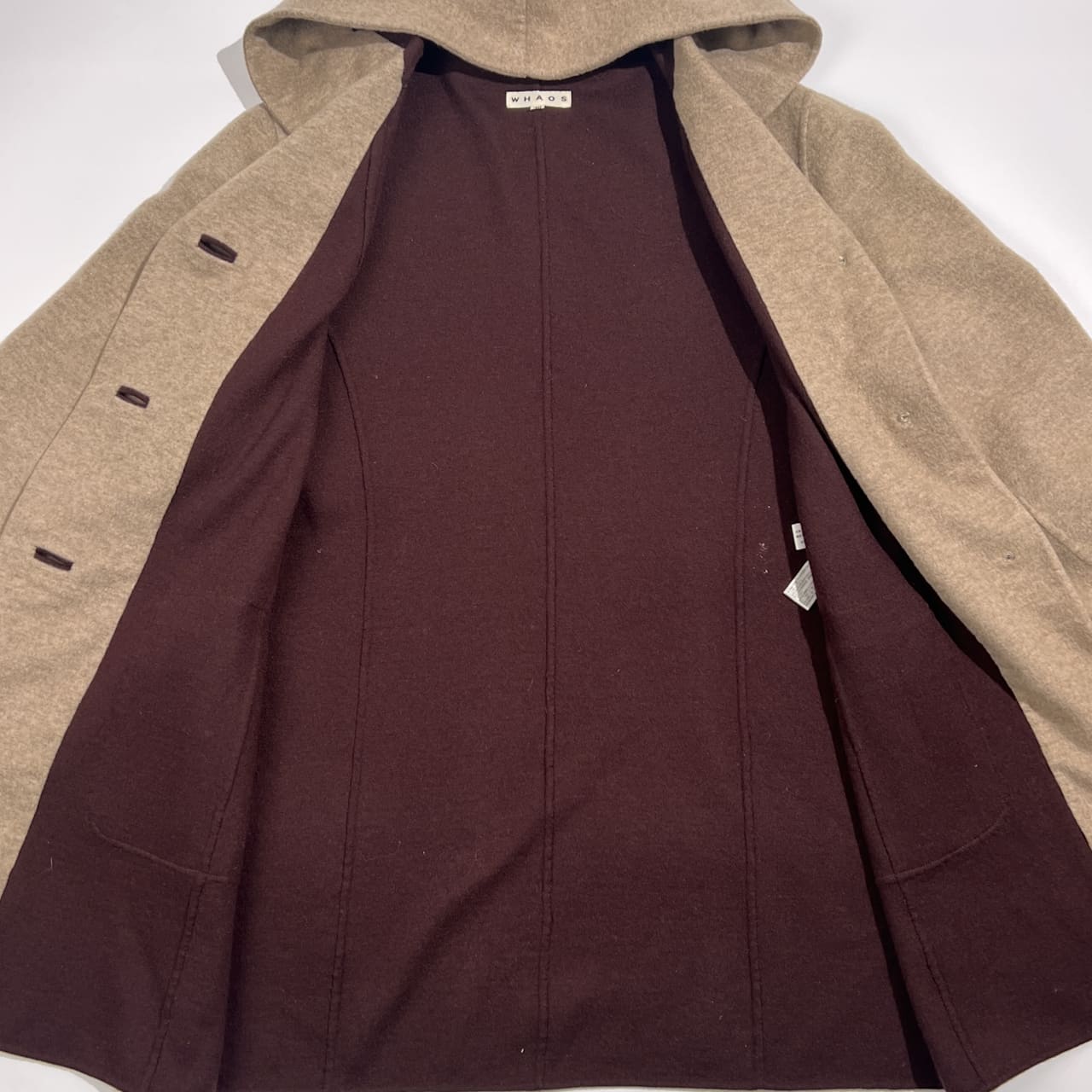 カシミヤ100% WHAOS ワオス フーデッド コート 40 /ベージュ系 レディース