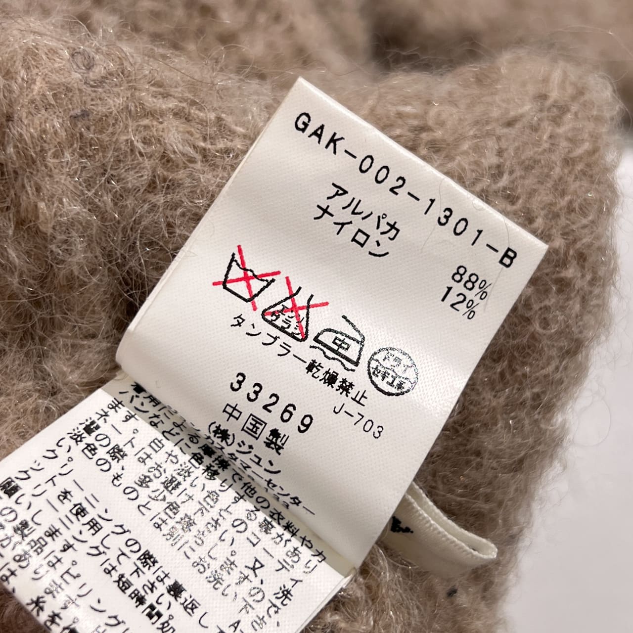 ・表地:アルパカ88% ナイロン12%