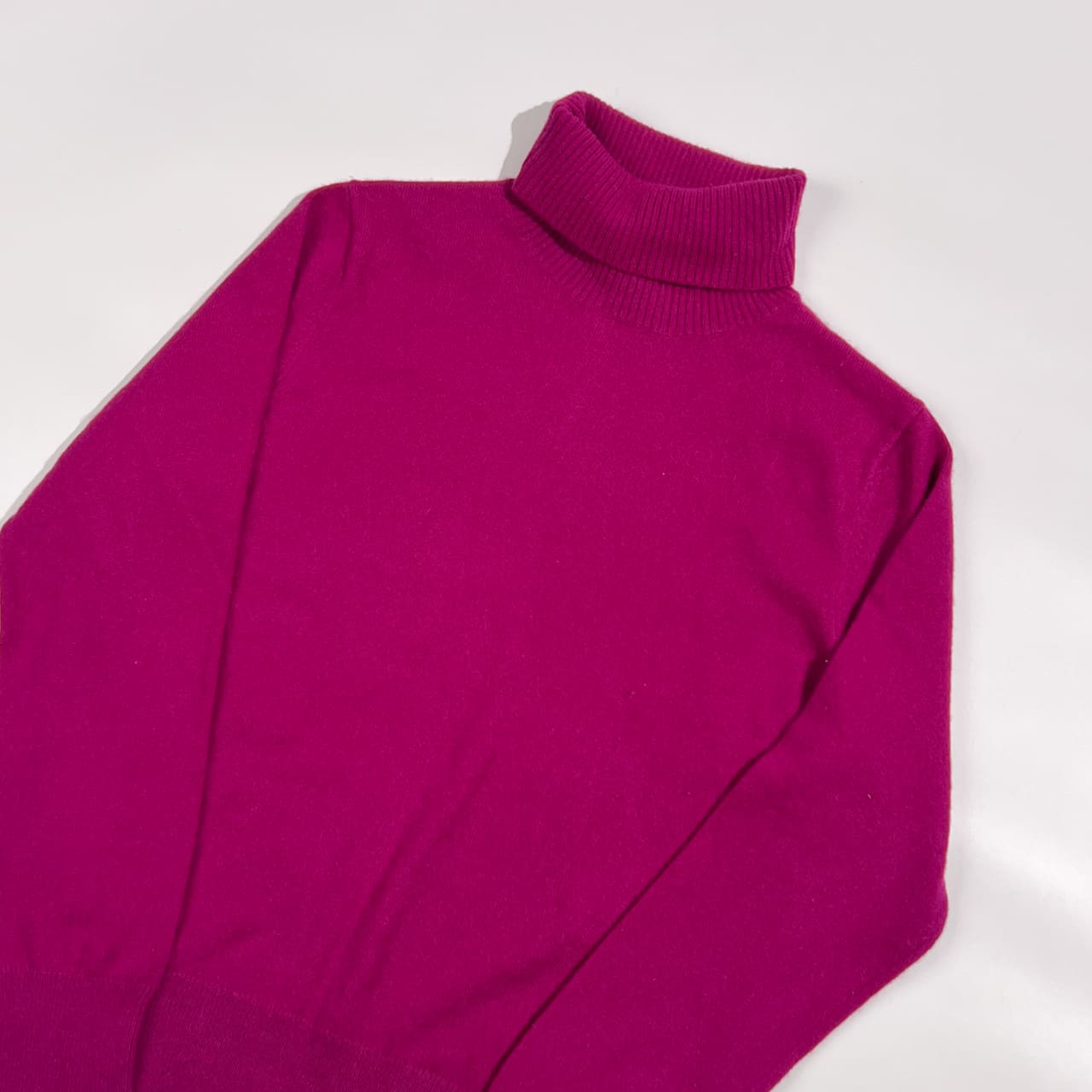 カシミヤ100% LANDS' END ランズエンド タートルネック ニット セーター L /マゼンタ系 レディース