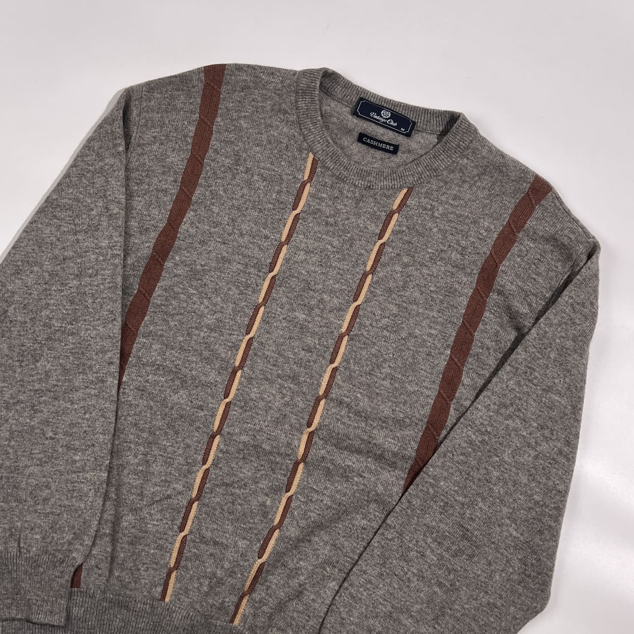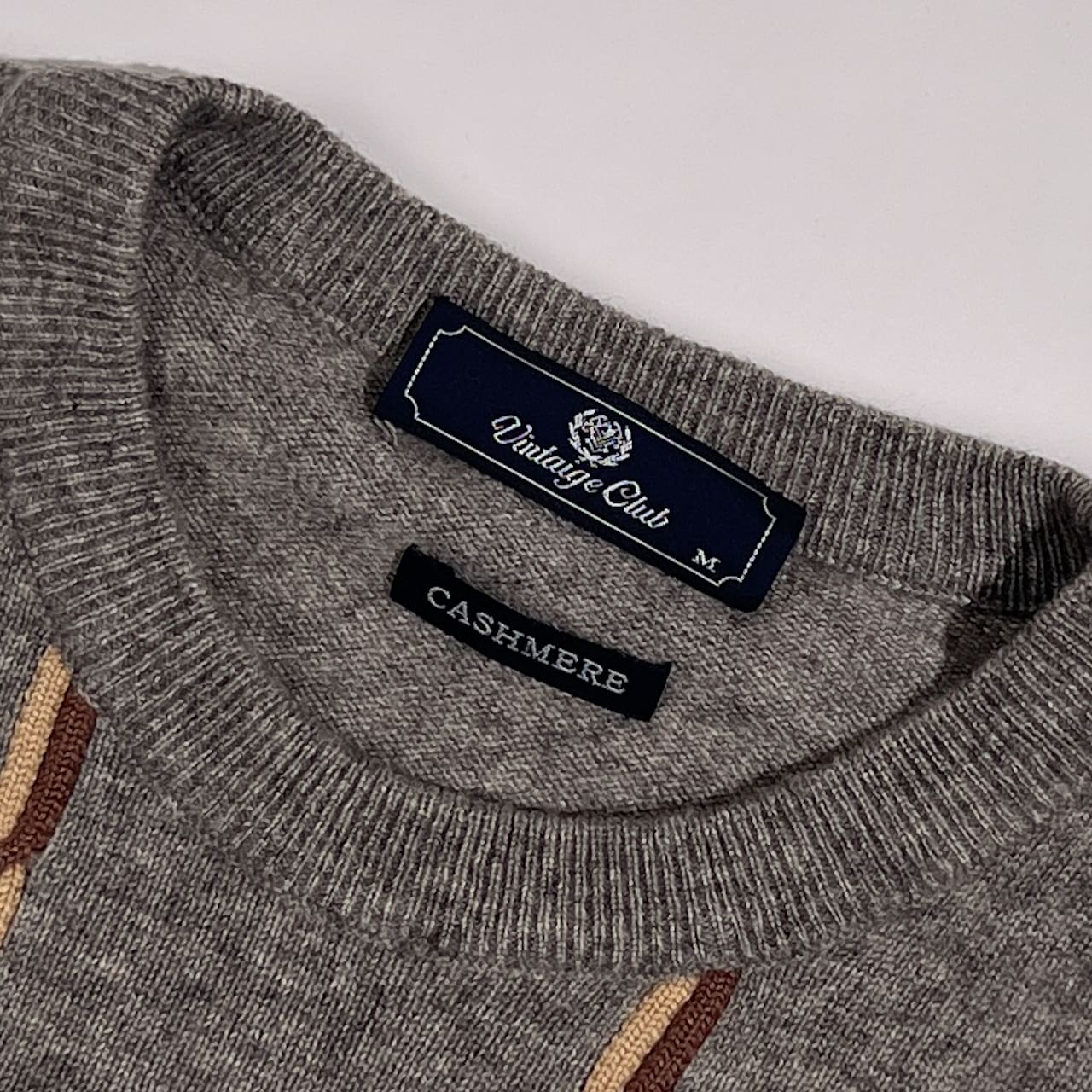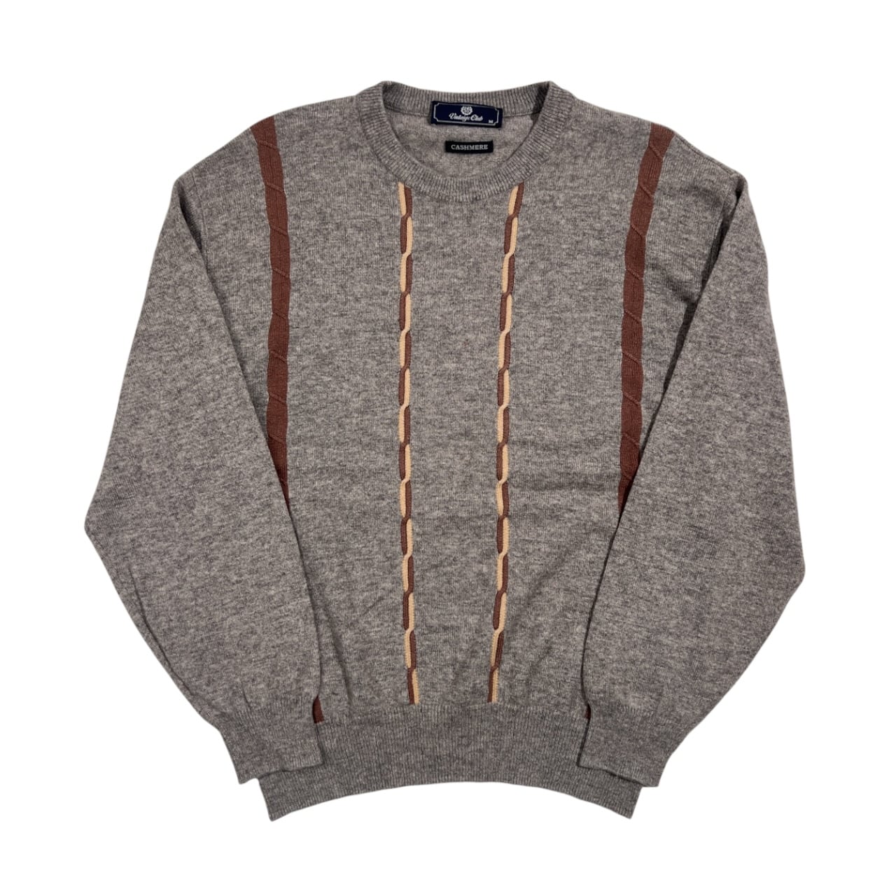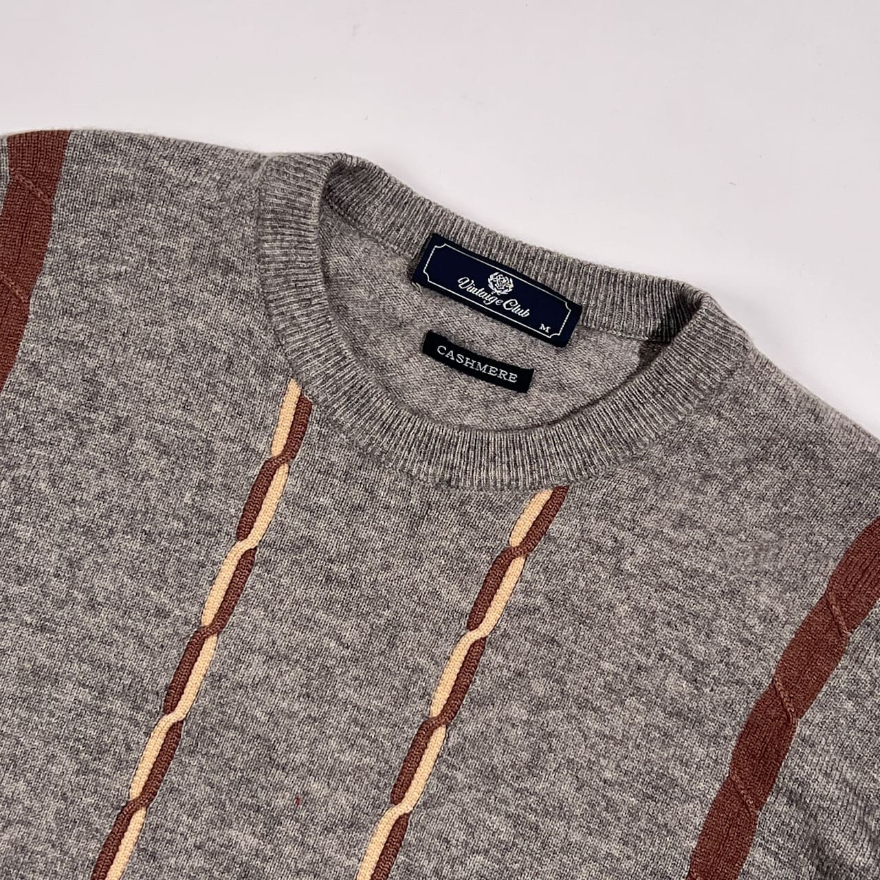 カシミヤ100% Vintage Club ヴィンテージクラブ ストライプ クルーネック ニット セーター M /グレー系 メンズ