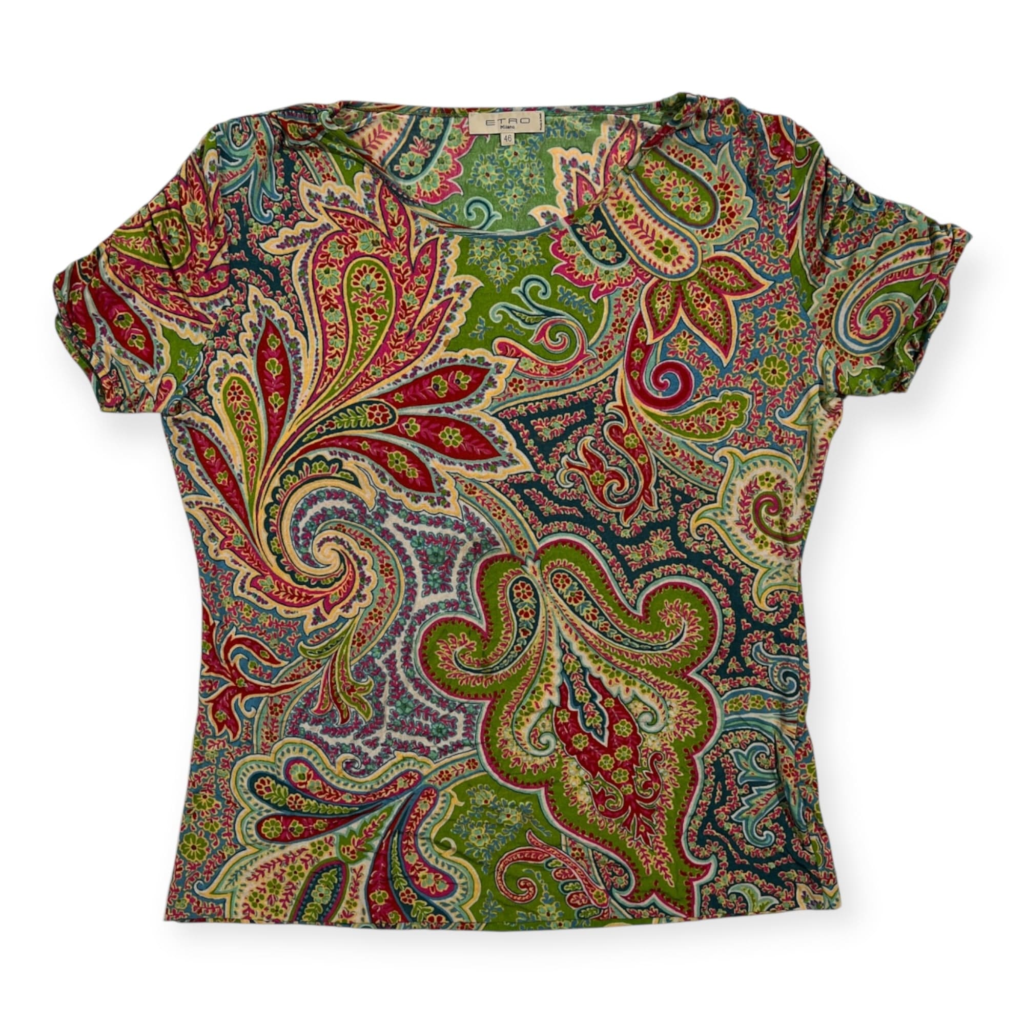 NON NO ノンノ パイナップル デザイン 半袖 Tシャツ カットソー M(38)サイズ/くすみブルー系/Mademoiselle NON NON