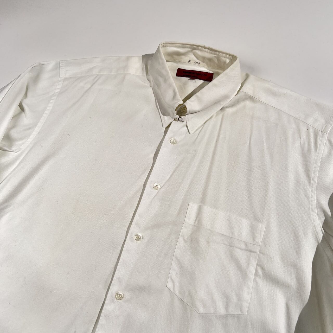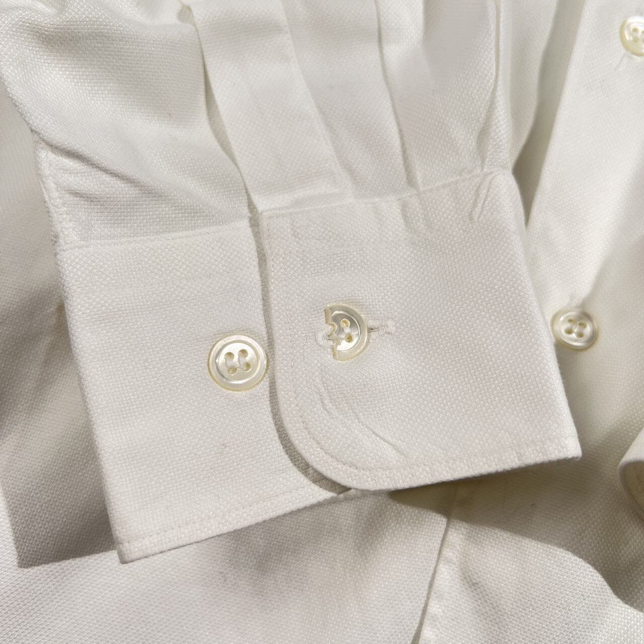 古い年代のお品物です。少し使用感、うすヨゴレはありますが、まだまだご愛用していただけます。袖ボタンが1つ割れています。スペアボタンが2つ付いていますが、そのうち1つが割れています。ビンテージ品にご理解いただける方に、ぜひご検討いただけますと幸いです。コンデションについての詳細は画像をご参照ください。