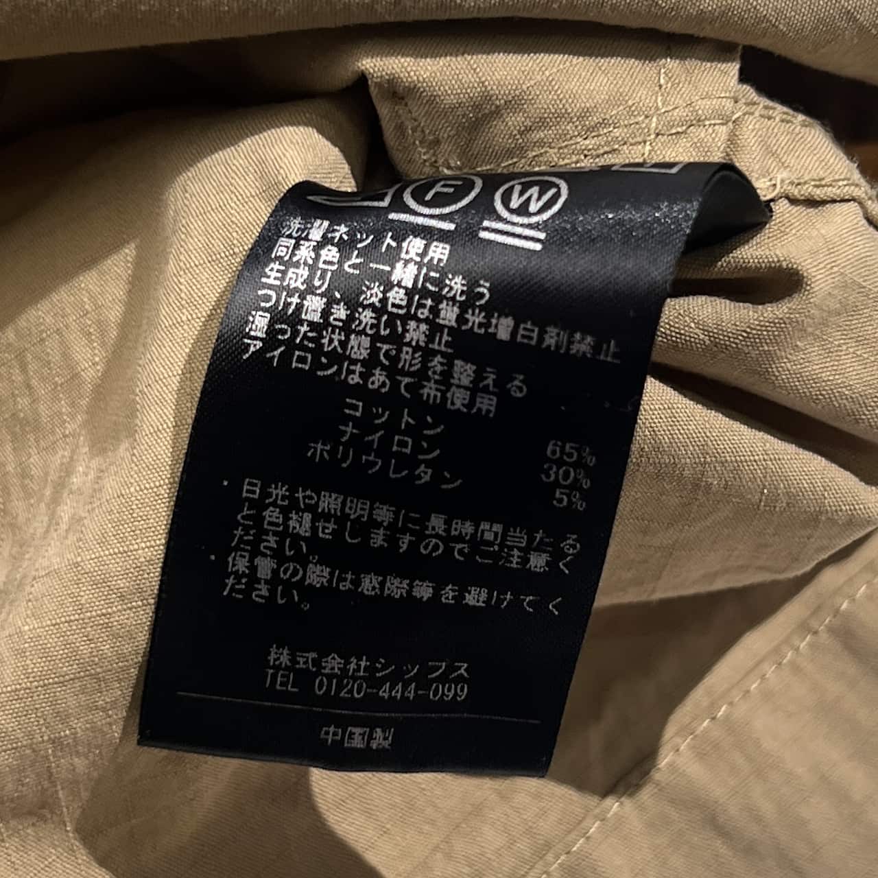 ・表地:コットン65%、ナイロン30%、ポリウレタン5%