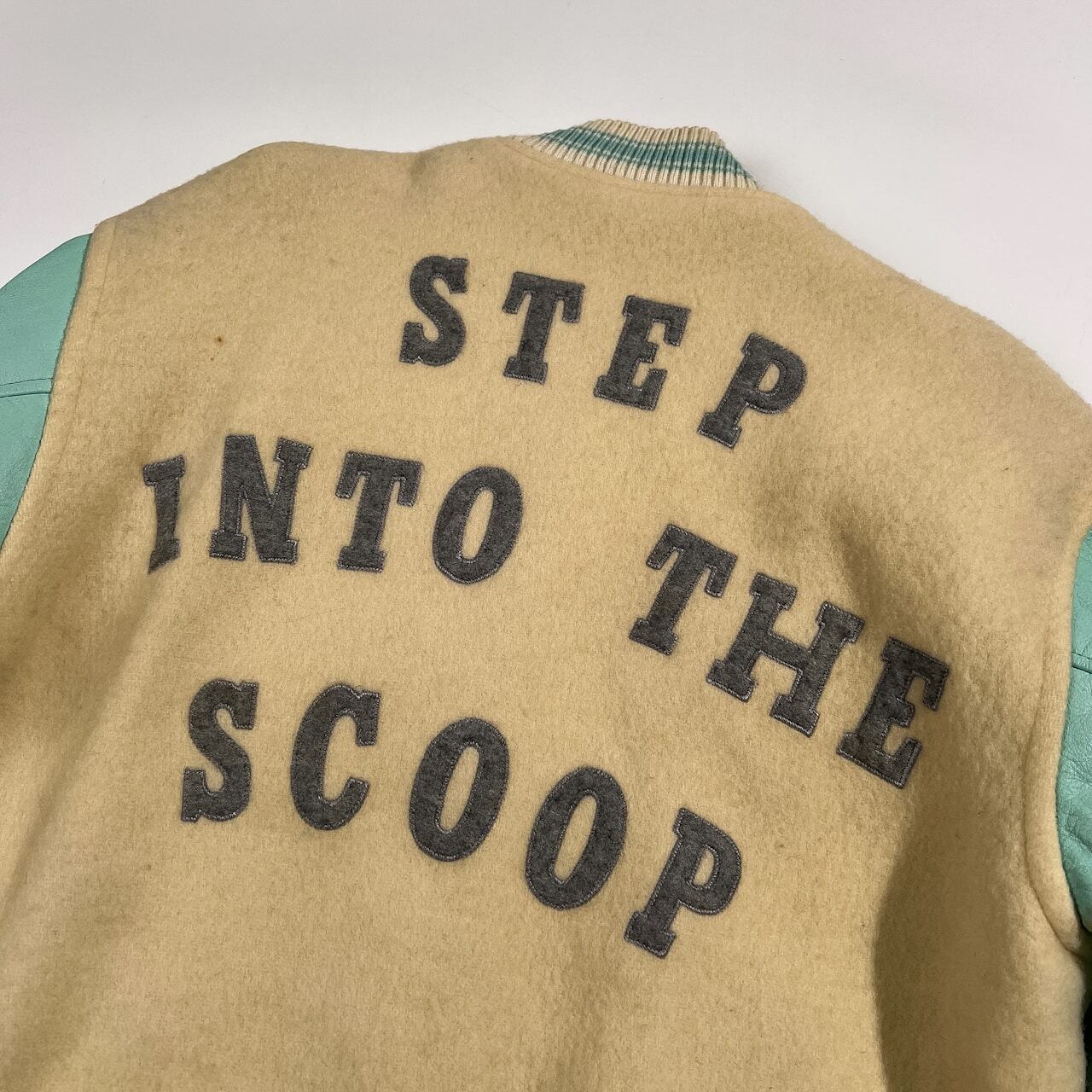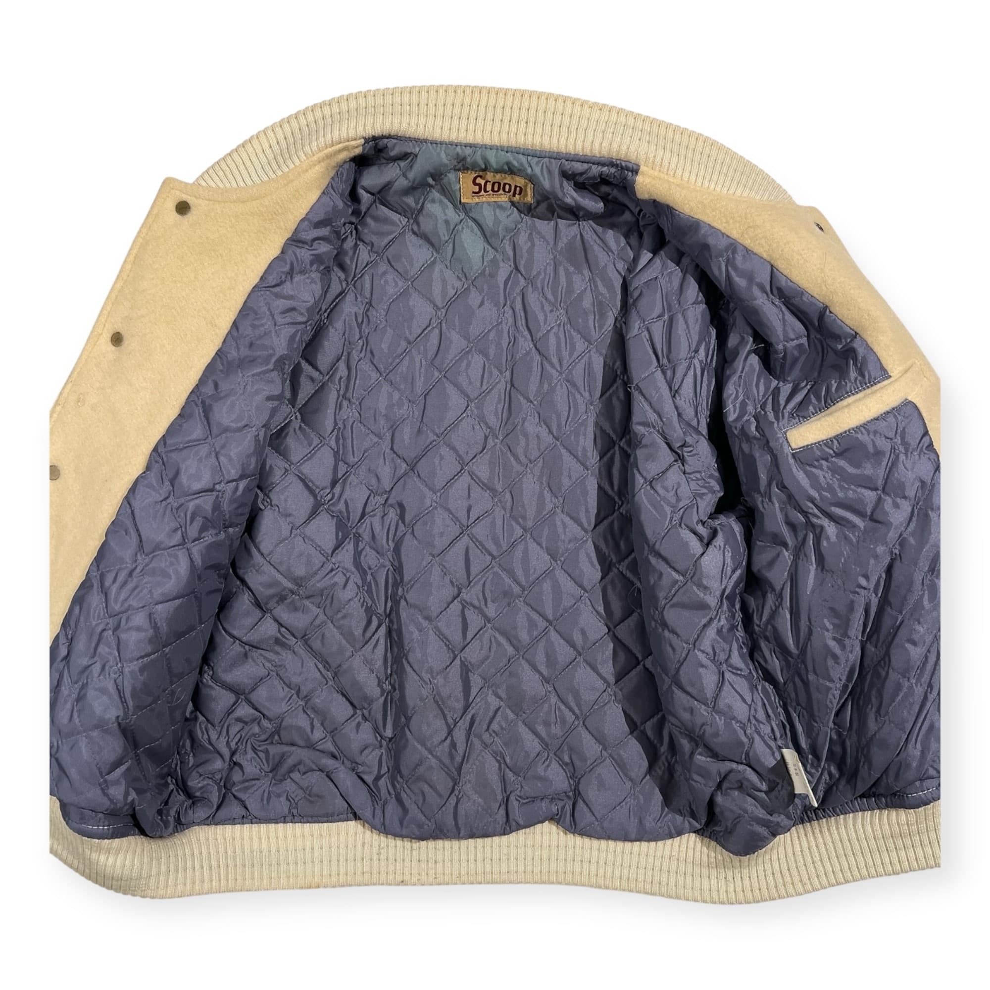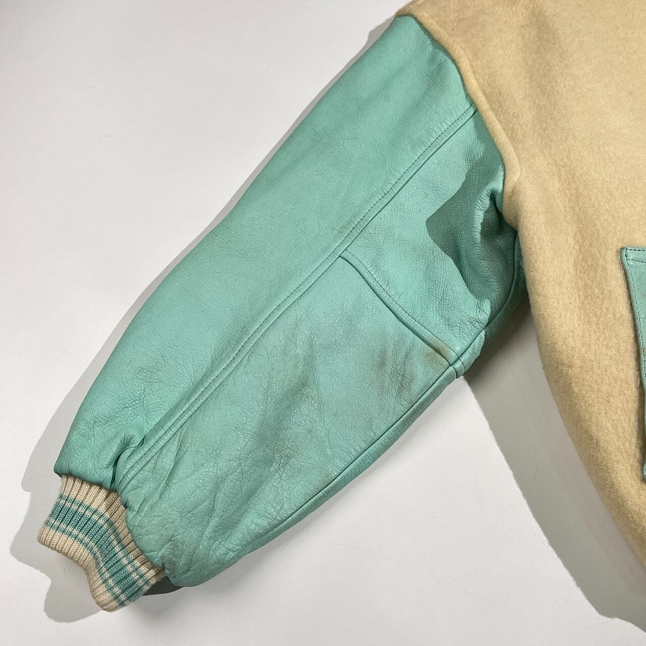 古い年代のお品物です。全体的に使用感、毛羽立ち、袖やレザー部分などにヨゴレはありますが、まだまだご愛用していただけます。ビンテージ品にご理解いただける方に、ぜひご検討いただけますと幸いです。コンデションについての詳細は画像をご参照ください。