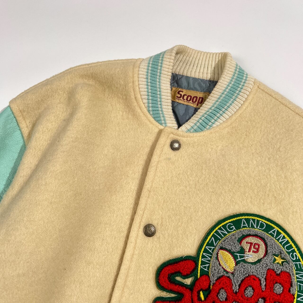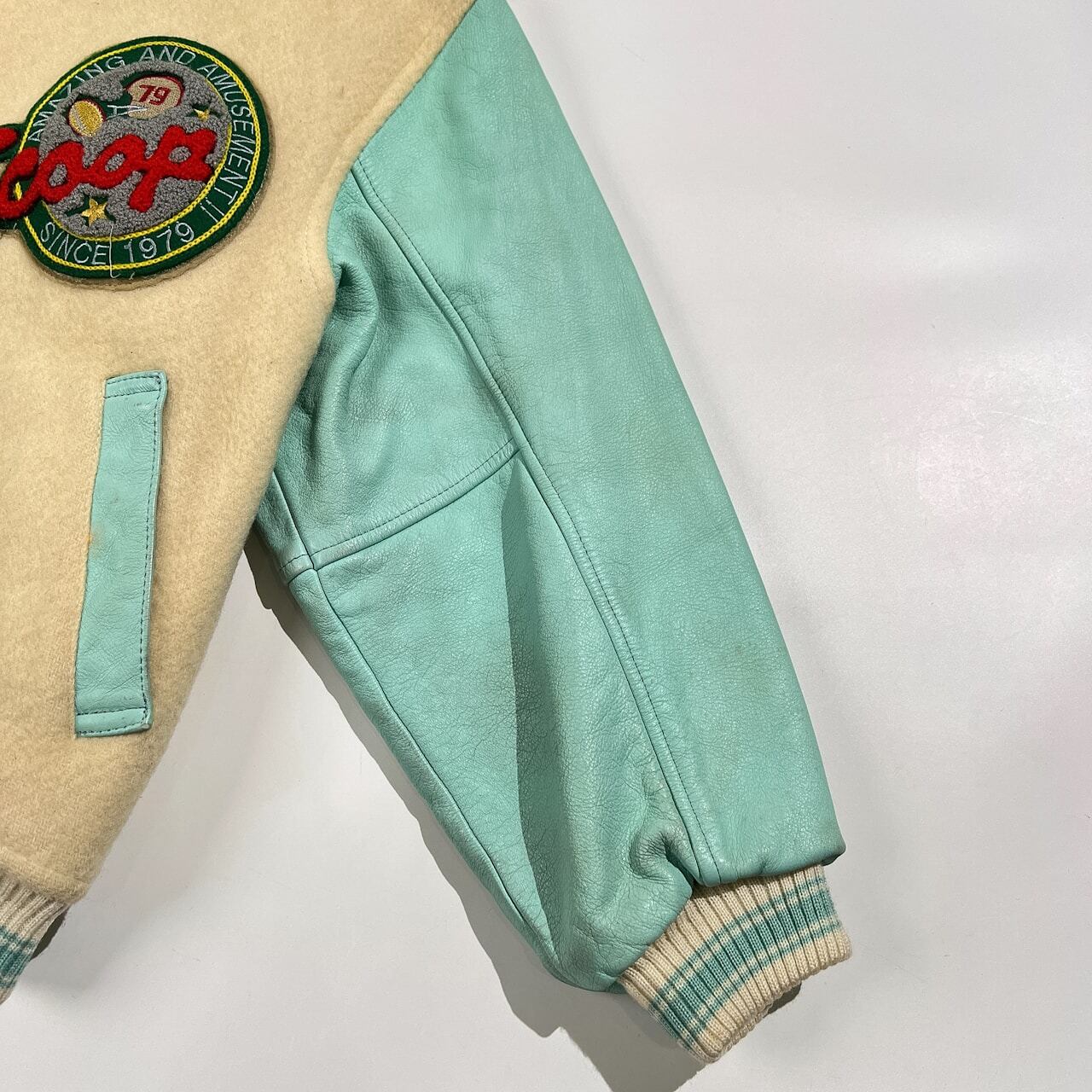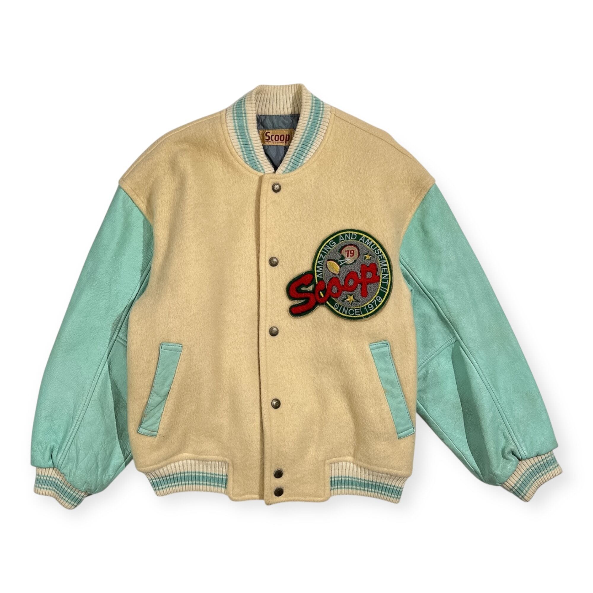古い年代のお品物です。全体的に使用感、毛羽立ち、袖やレザー部分などにヨゴレはありますが、まだまだご愛用していただけます。ビンテージ品にご理解いただける方に、ぜひご検討いただけますと幸いです。コンデションについての詳細は画像をご参照ください。