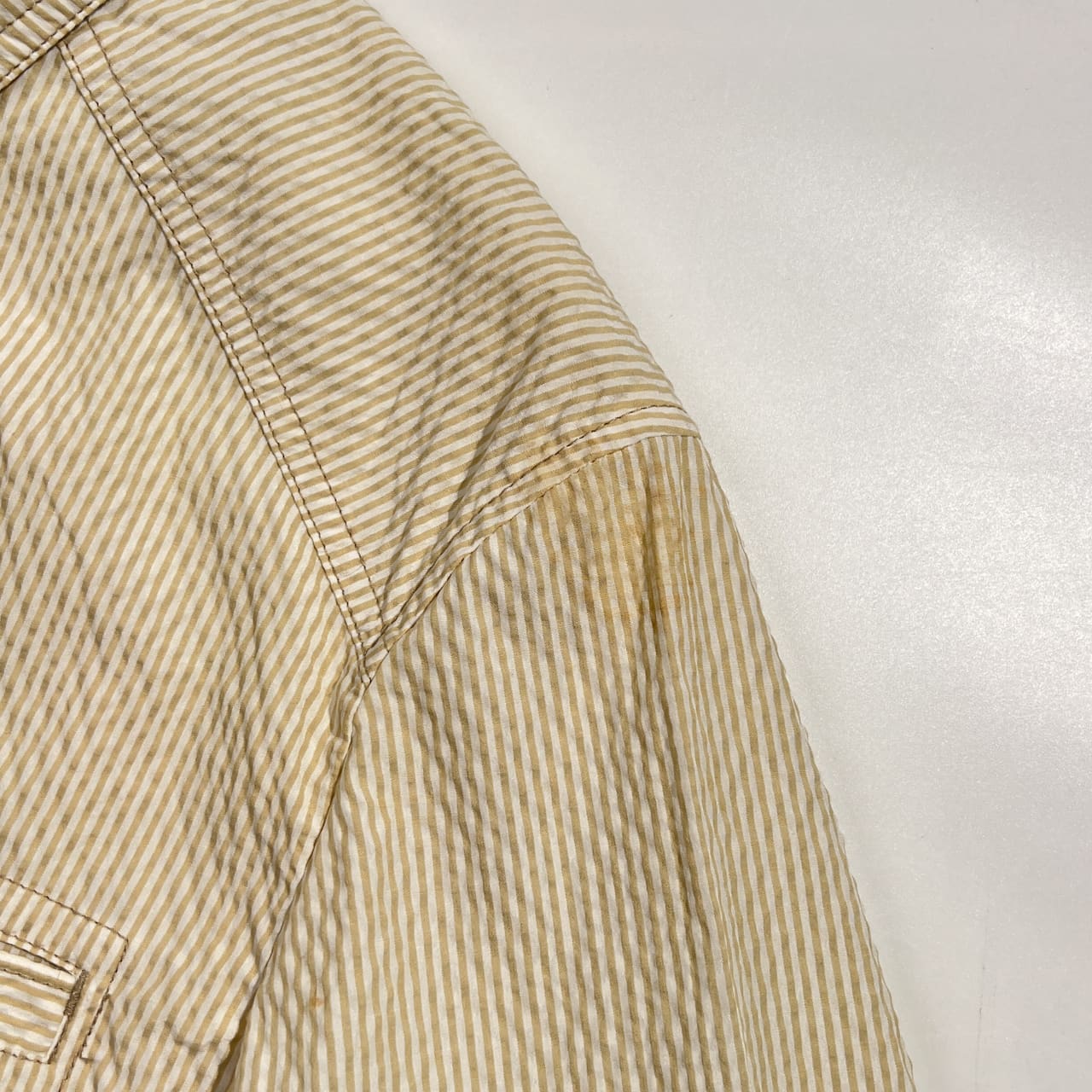 フロント、肩付近にいくつかのうすよごれがございますが、まだまだご着用していただけます。コンデションについての詳細は画像をご参照ください。