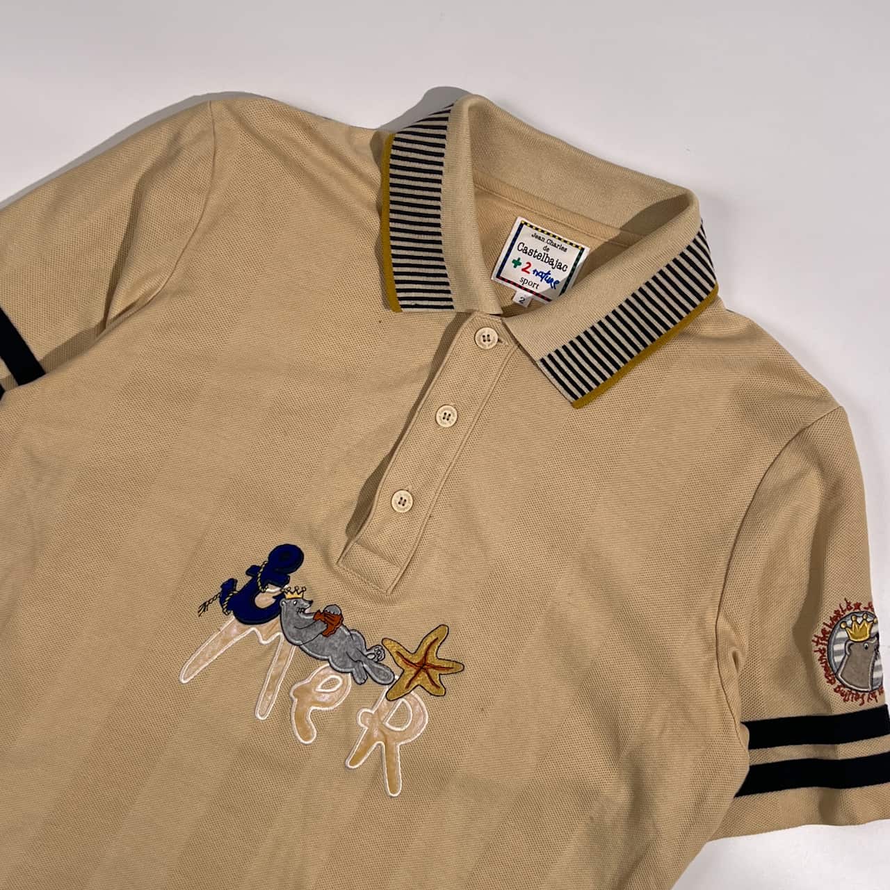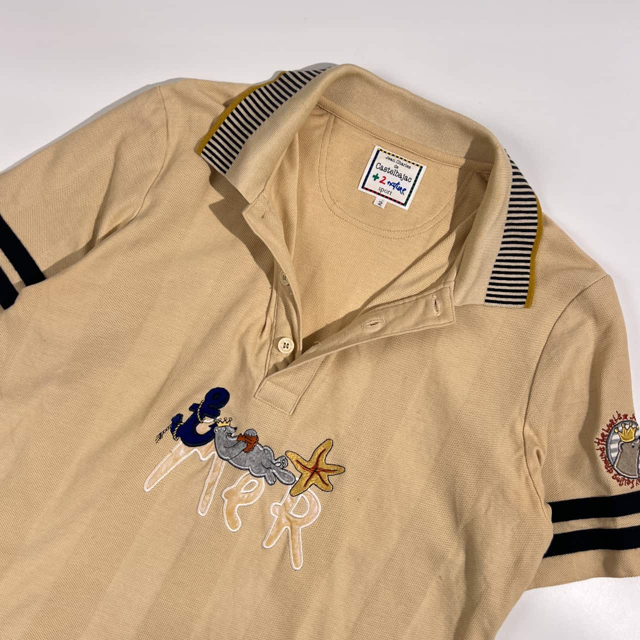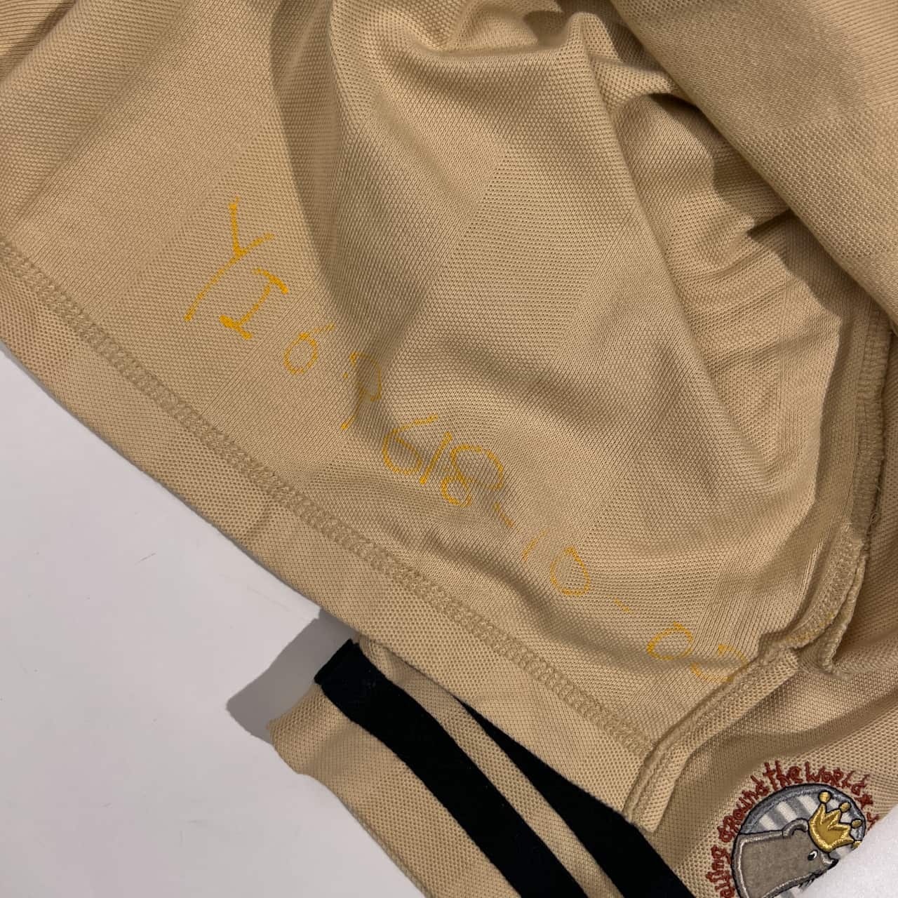 フロント裏側に文字の記入がございます。襟付近、背面にうすよごれがございますがまだまだご着用していただけます。コンデションについての詳細は画像をご参照ください。