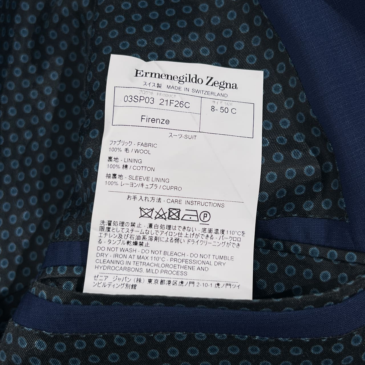 ・表地:表地:毛100% 裏地:綿100% 袖裏:レーヨン、キュプラ
