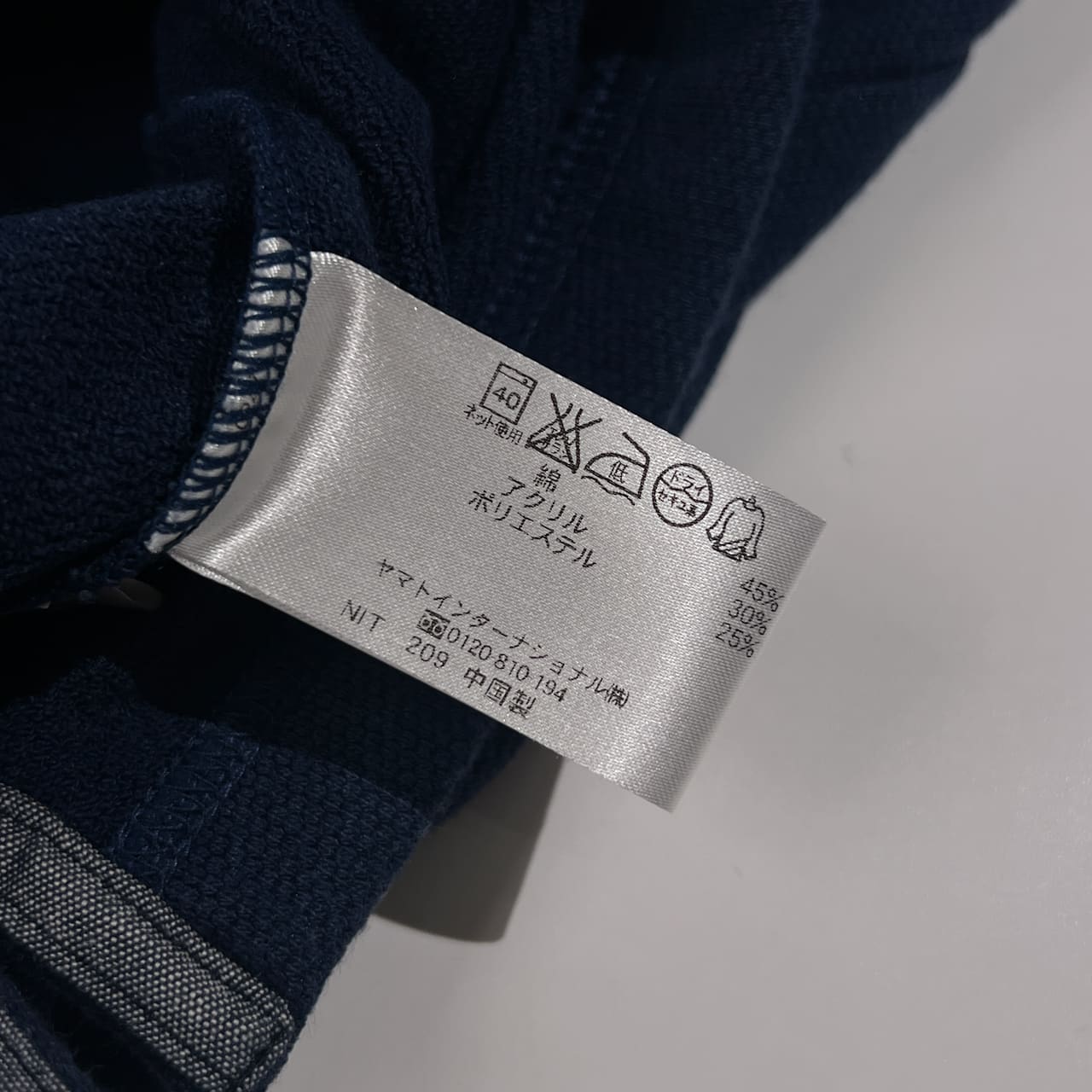 ・表地:コットン45%、アクリル30%、ポリエステル25%