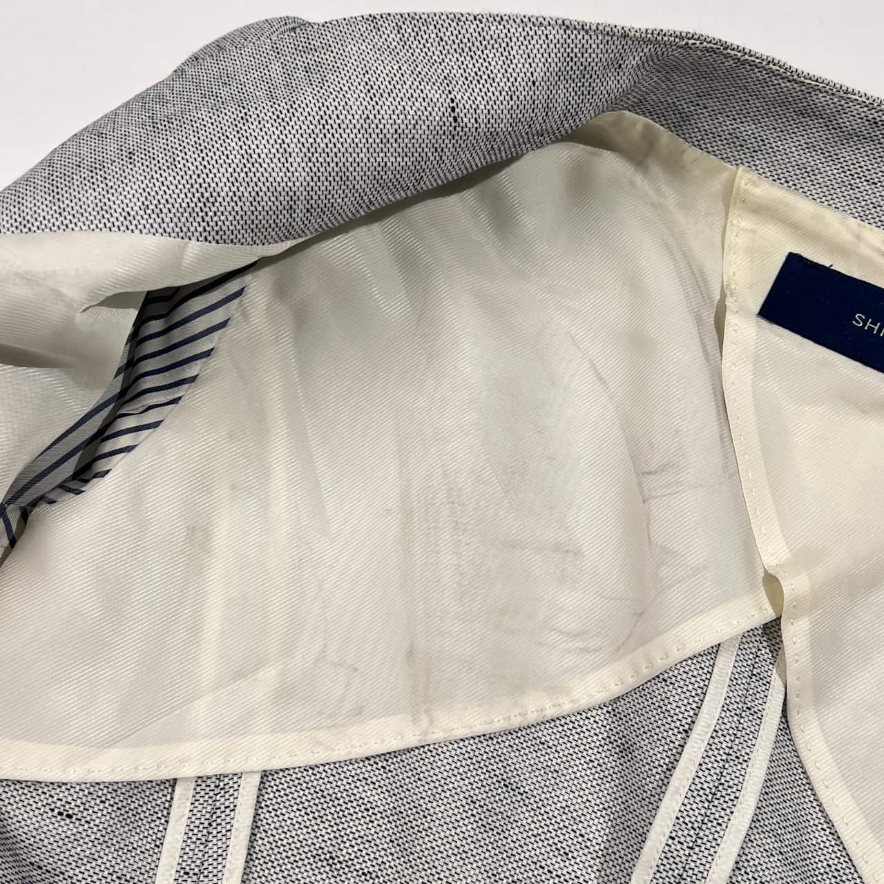裏地、袖先にうすよごれがございますが、まだまだご着用していただけます。コンデションについての詳細は画像をご参照ください。