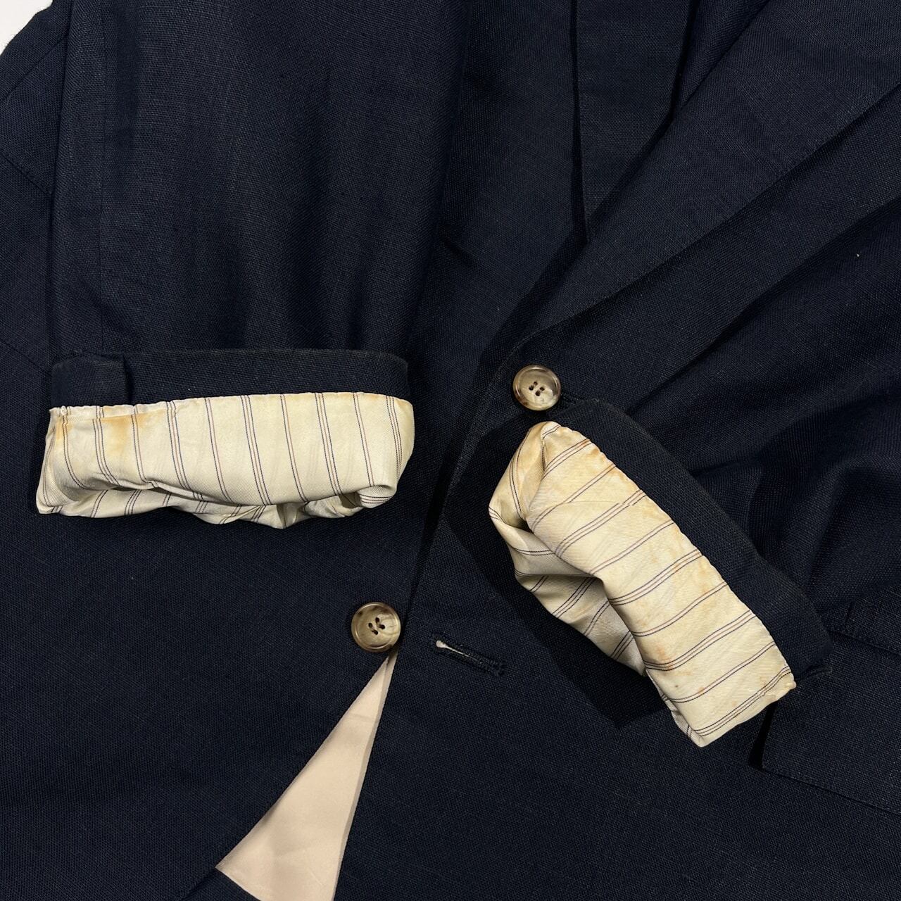裏地にネーム刺繍入りのお品物です。袖先、脇裏側によごれ、袖にいくつかのほつれのようなものがございます。コンデションについての詳細は画像をご参照ください。