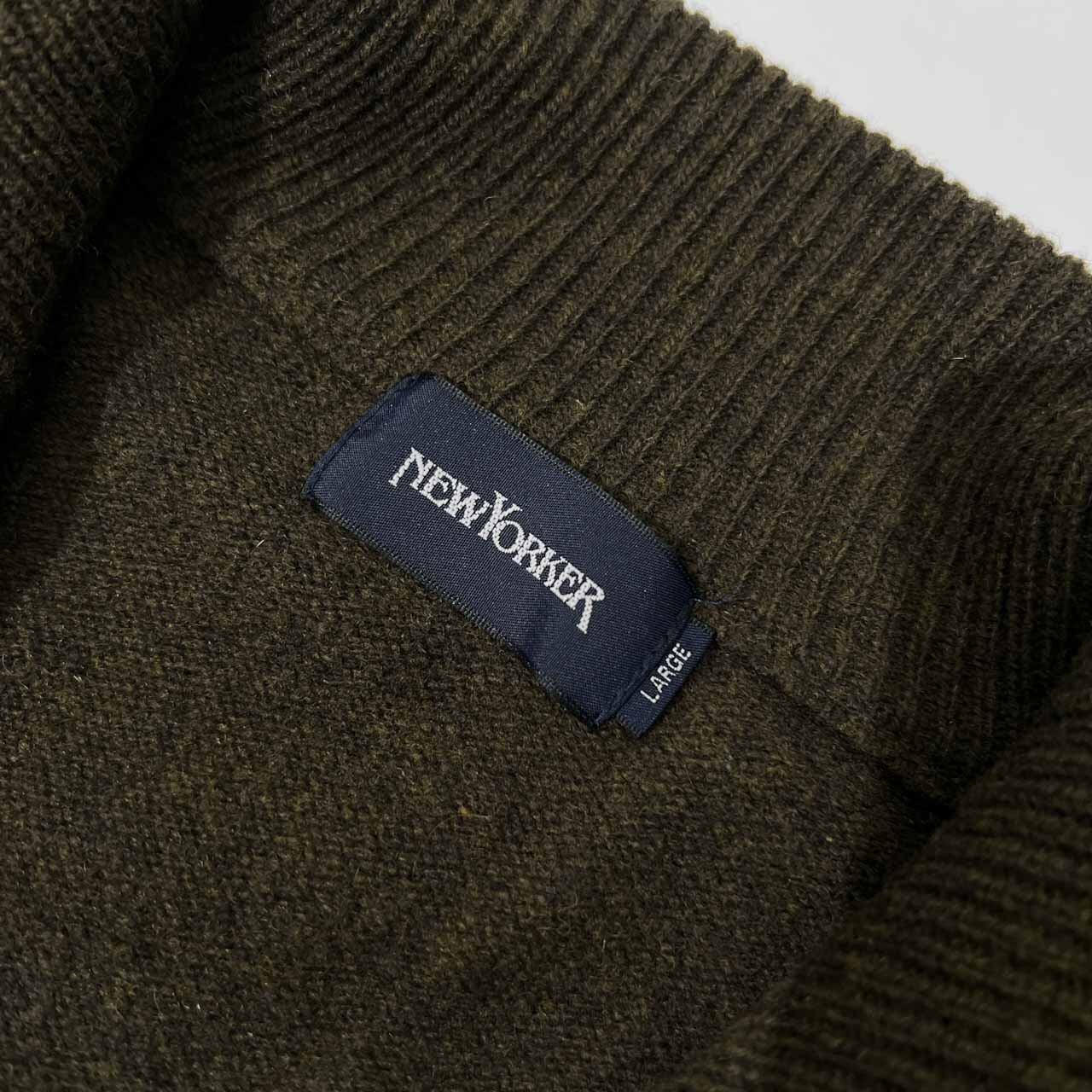 NEWYORKER ニューヨーカー レザー風ボタン ウールニット カーディガン ジャケット L /グリーン系
