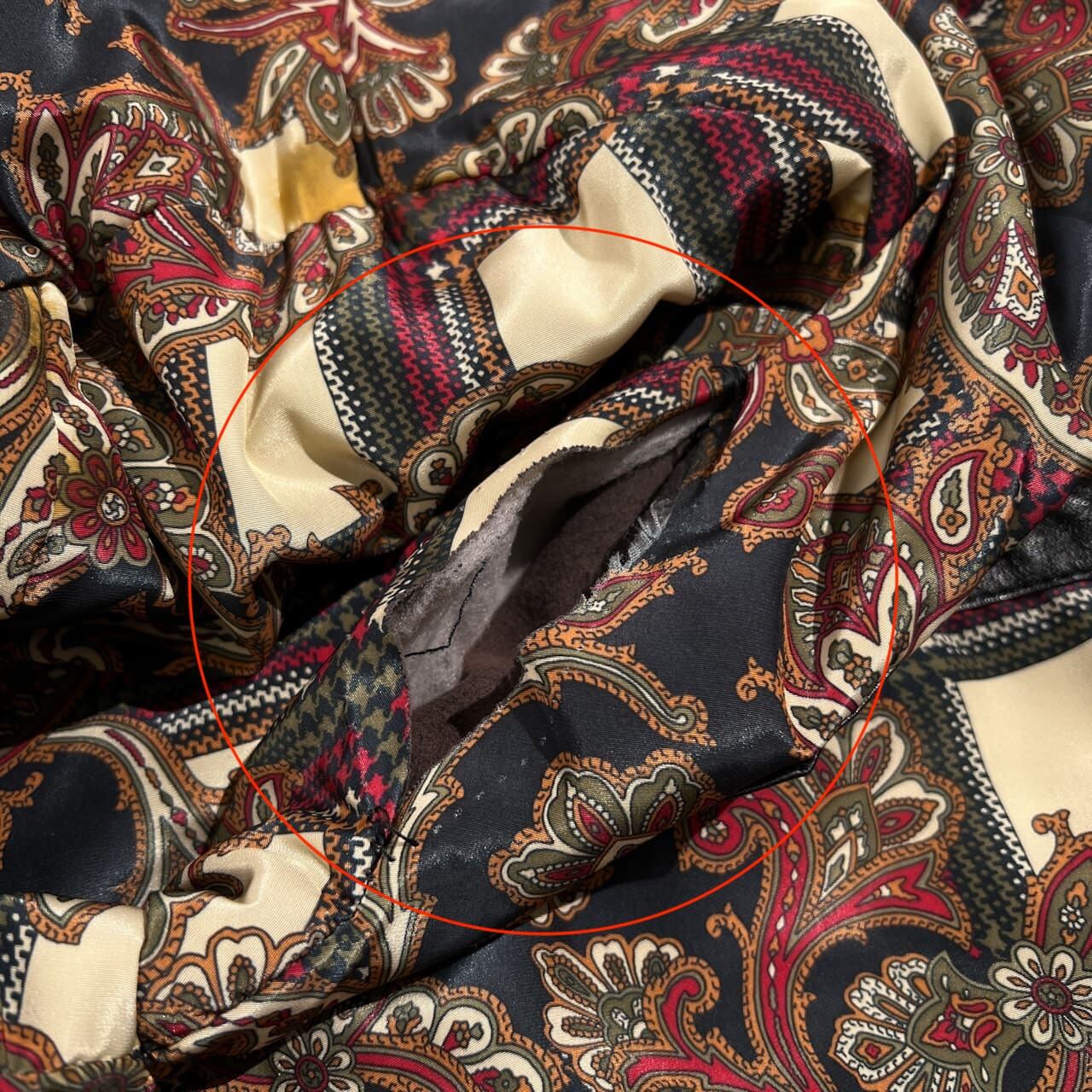 全体的に少し使用感、袖先などにすれがございます。3番目のボタンが欠損しています。内側裏地にヨゴレ、裏地の脇部分に破れがあります。コンデションについての詳細は画像をご参照ください。