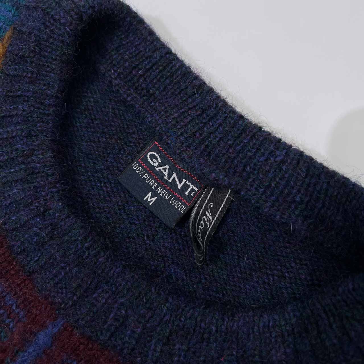 90's イタリア製 GANT ガント マルチ チェック柄 ウールニットセーター M /ネイビー/ビンテージ/MADE IN ITALY