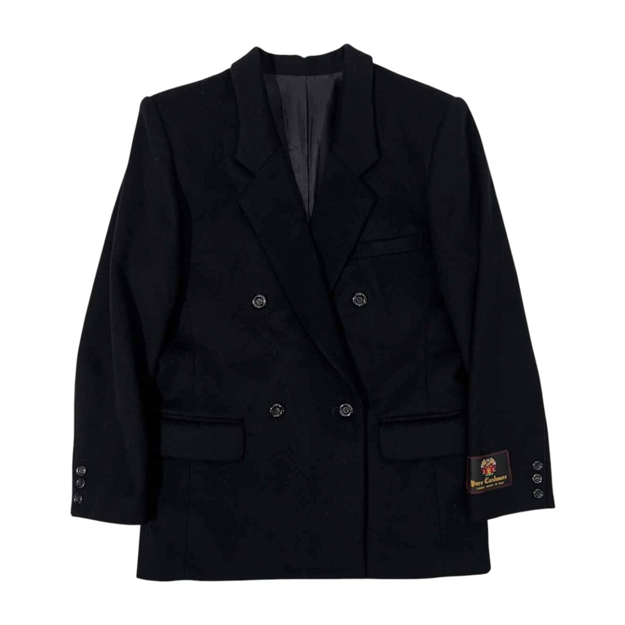 カシミヤ100% イタリア製生地 Pure Cashmere ダブル テーラードジャケット 11AR /ブラック/レディース